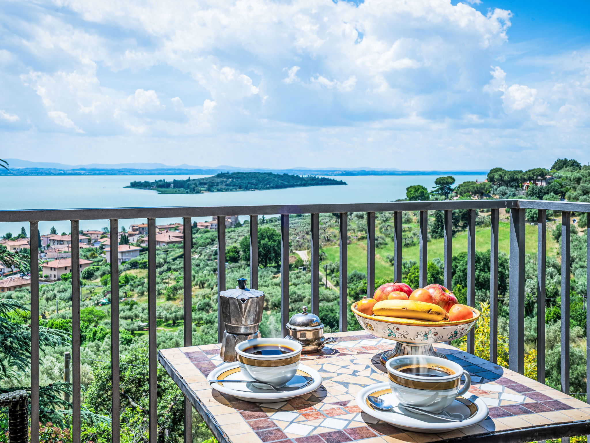 5-room house 180 m2 on 2 levels. Comfortable and modern furnishings: living/dining room with open-hearth fireplace (only for decoration), TV (flat screen). Exit to the terrace. 1 double bedroom with fan. Exit to the terrace. Kitchen (5 hot plates, oven, dishwasher). Exit to the terrace. Bathroom. Gas heating. Upper floor: 1 double bedroom with shower/bidet/WC and air conditioning. Exit to the terrace. 1 double bedroom with air conditioning. Exit to the terrace. 1 room with 2 beds and air conditioning. Shower/bidet/WC. Terrace furniture. Very beautiful view of the lake. Facilities: washing machine, mosquito net. Internet (WiFi). Maximum 1 pet/ dog allowed. IT054026C204019834