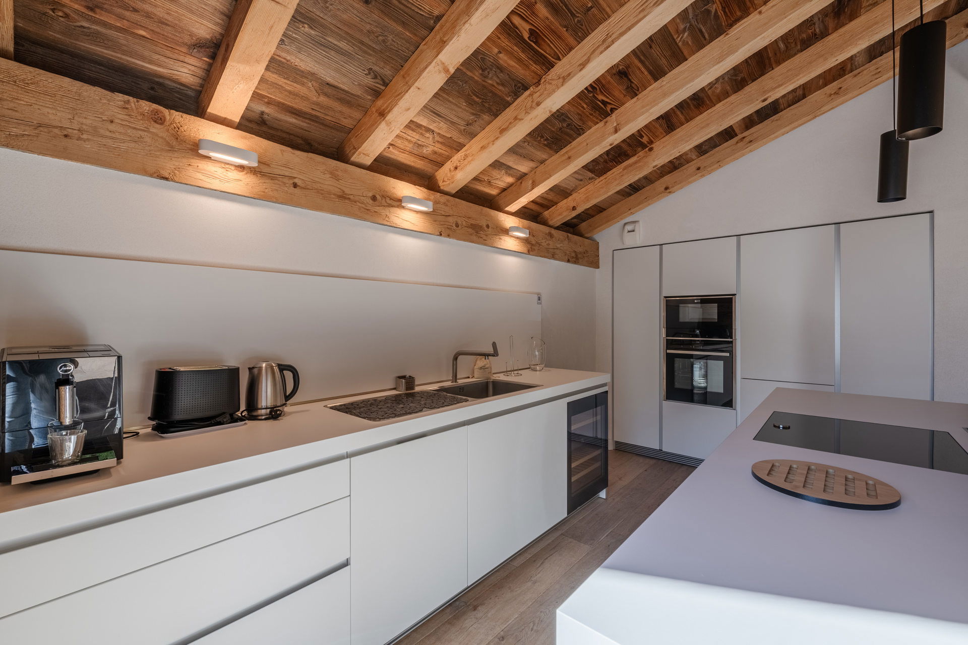 - Open fully-equipped kitchen (microwave, oven, dishwasher, fridge, induction hob, extractor hood, etc.)