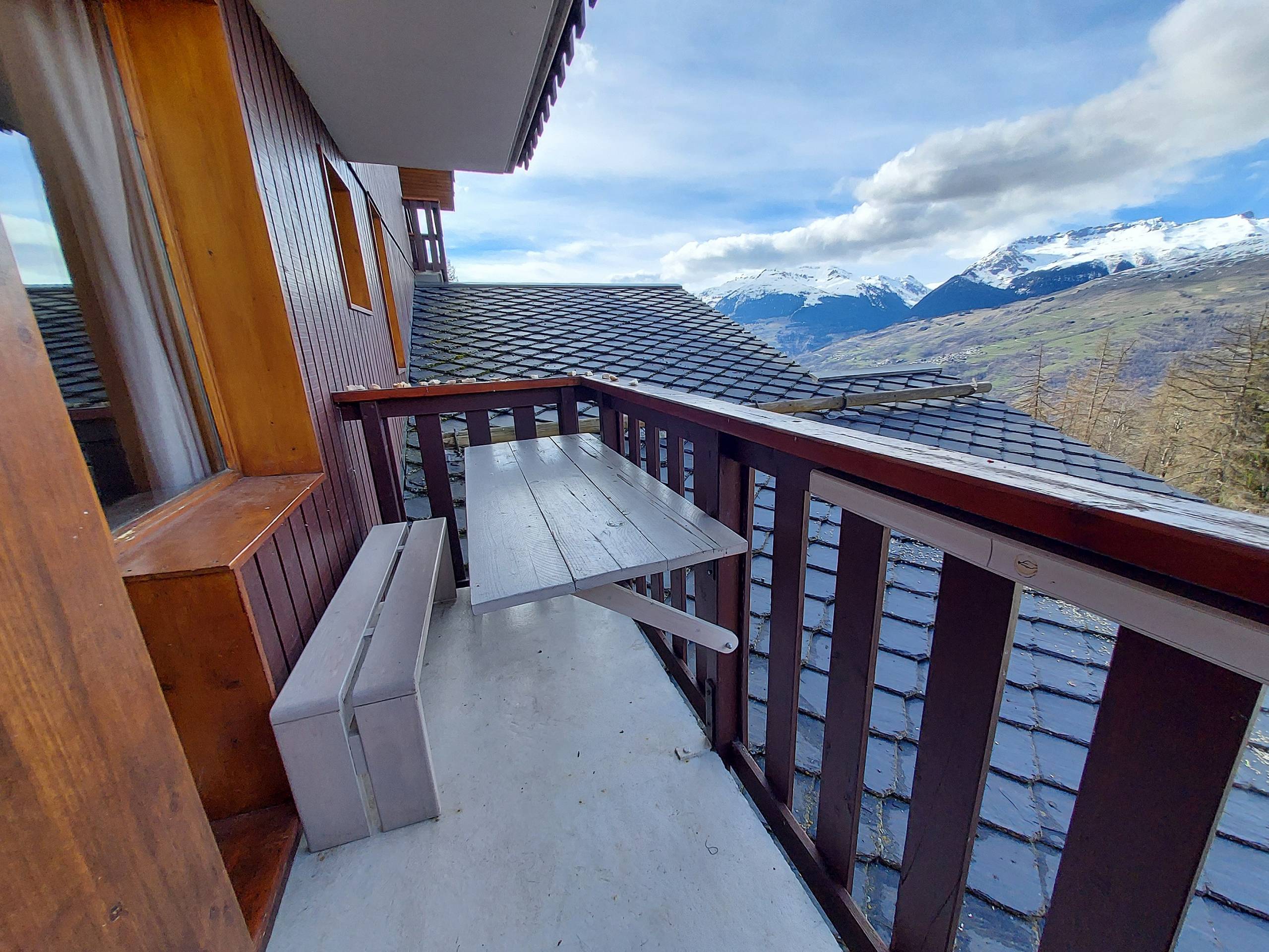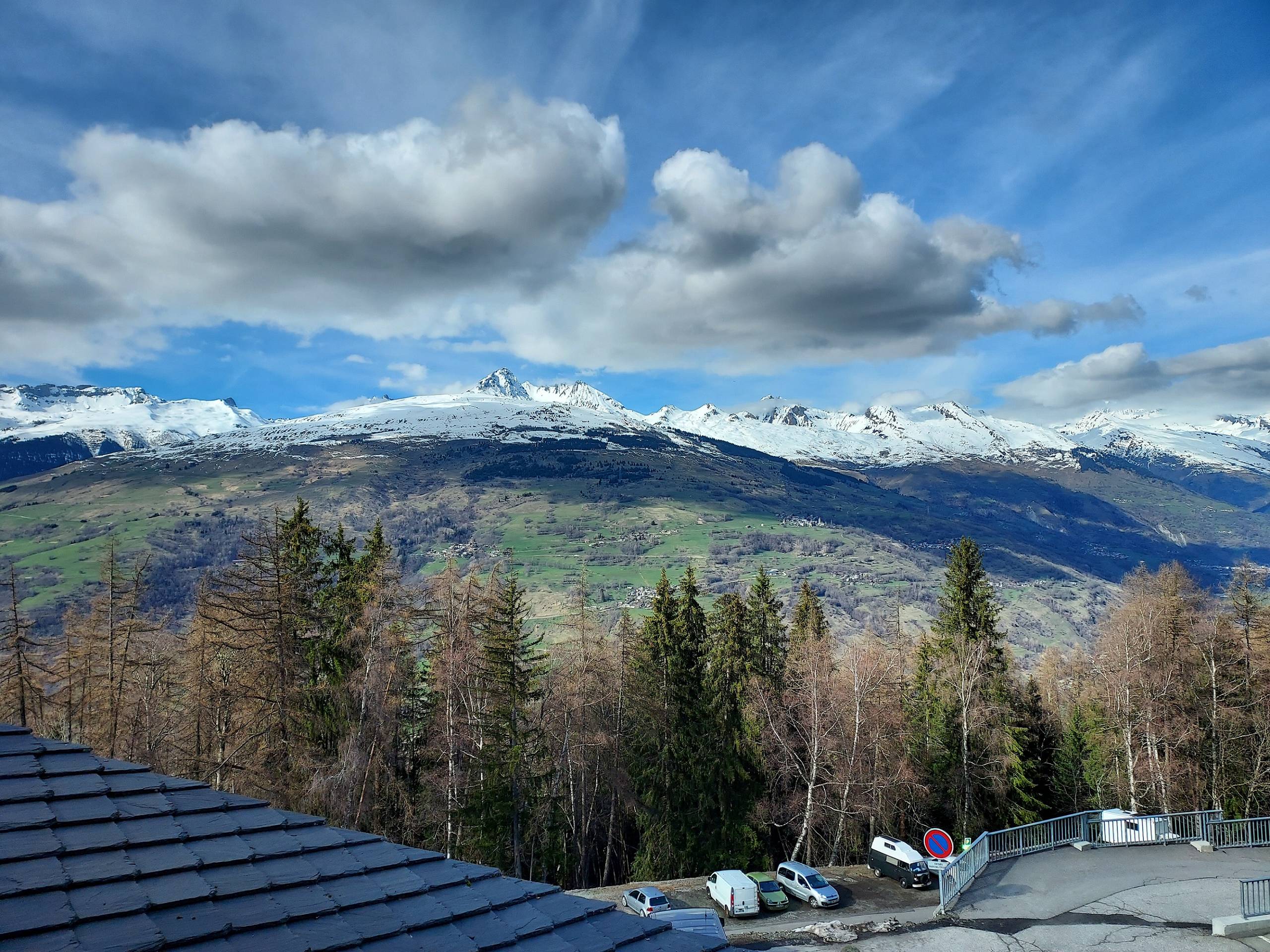 It has a view of Mont Blanc and faces northwest. The ski locker is in the residence.