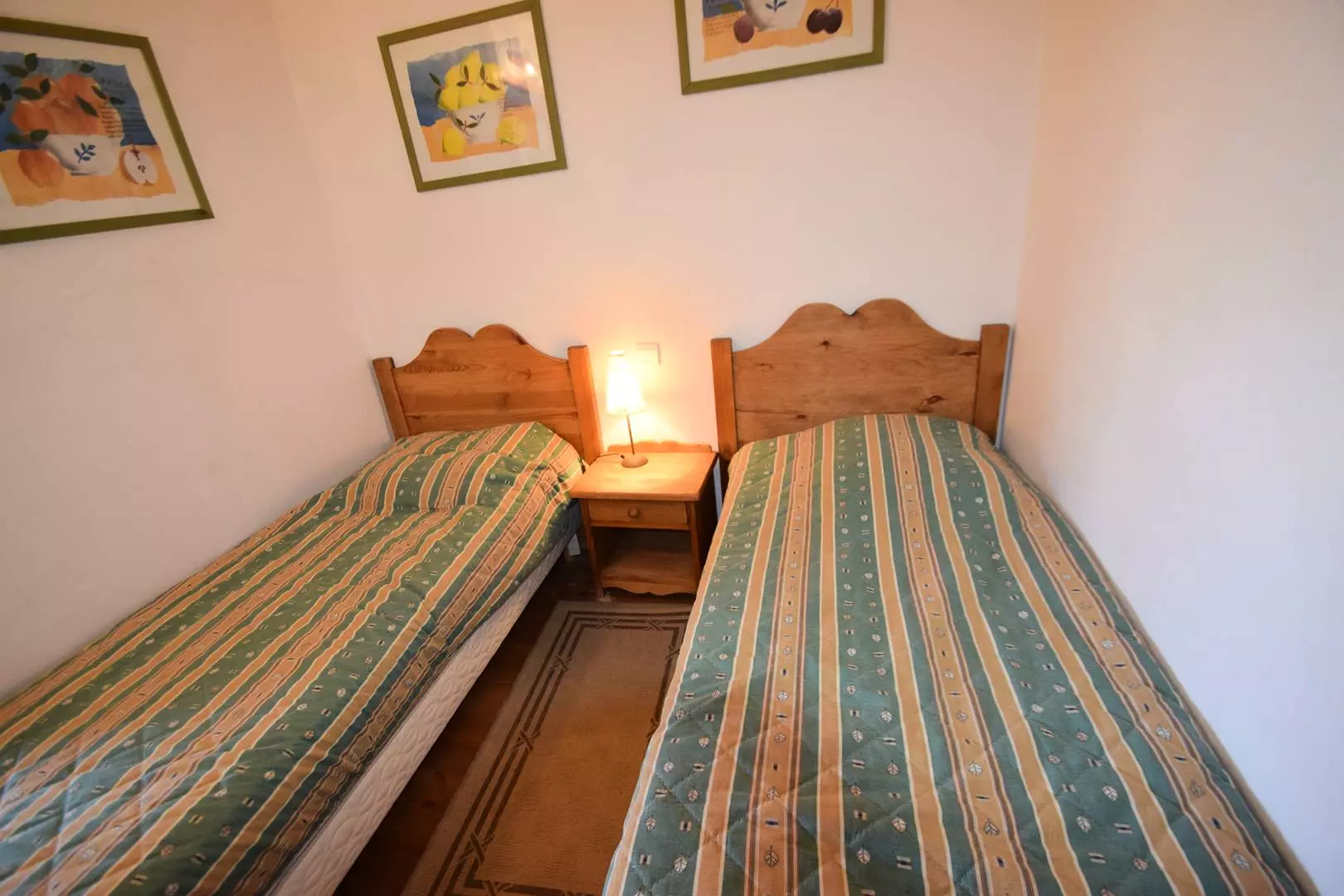 3 rooms 6 people, 39m2, South exposure, Terrace, very clear view of the resort and mountains, 4th floor with elevator. American kitchen: 4 ceramic hobs, refrigerator, multi-function oven, LV - Living room: dining area, 2 single pull-out beds, TV - Bedroom 1: 2 single beds (window overlooking the corridor) - Bedroom 2: 2 single beds. 1 bathroom with bathtub - 1 separate toilet - 1 bathroom with shower - Bedding: duvets, (sheets, towels and end-of-stay cleaning not included). Floors: tiles except bedrooms: parquet - Comfortable apartment located at the foot of the slopes - Ski locker n° 47 on level -2 - Les Hauts Bois: luxury residence, free access to the swimming pool (except last week of the season) Covered parking included n°38, entrance with BIP (if beep lost cost 45€) max height 1.90m,
