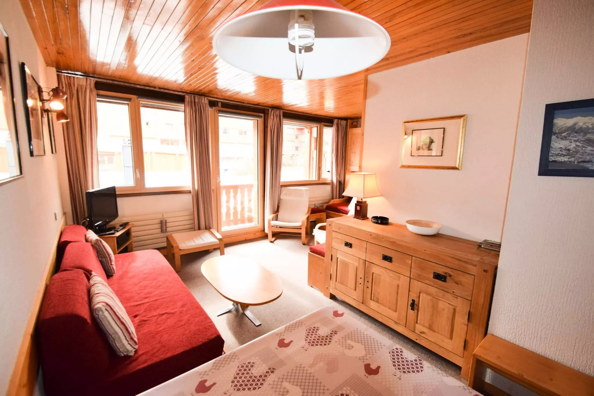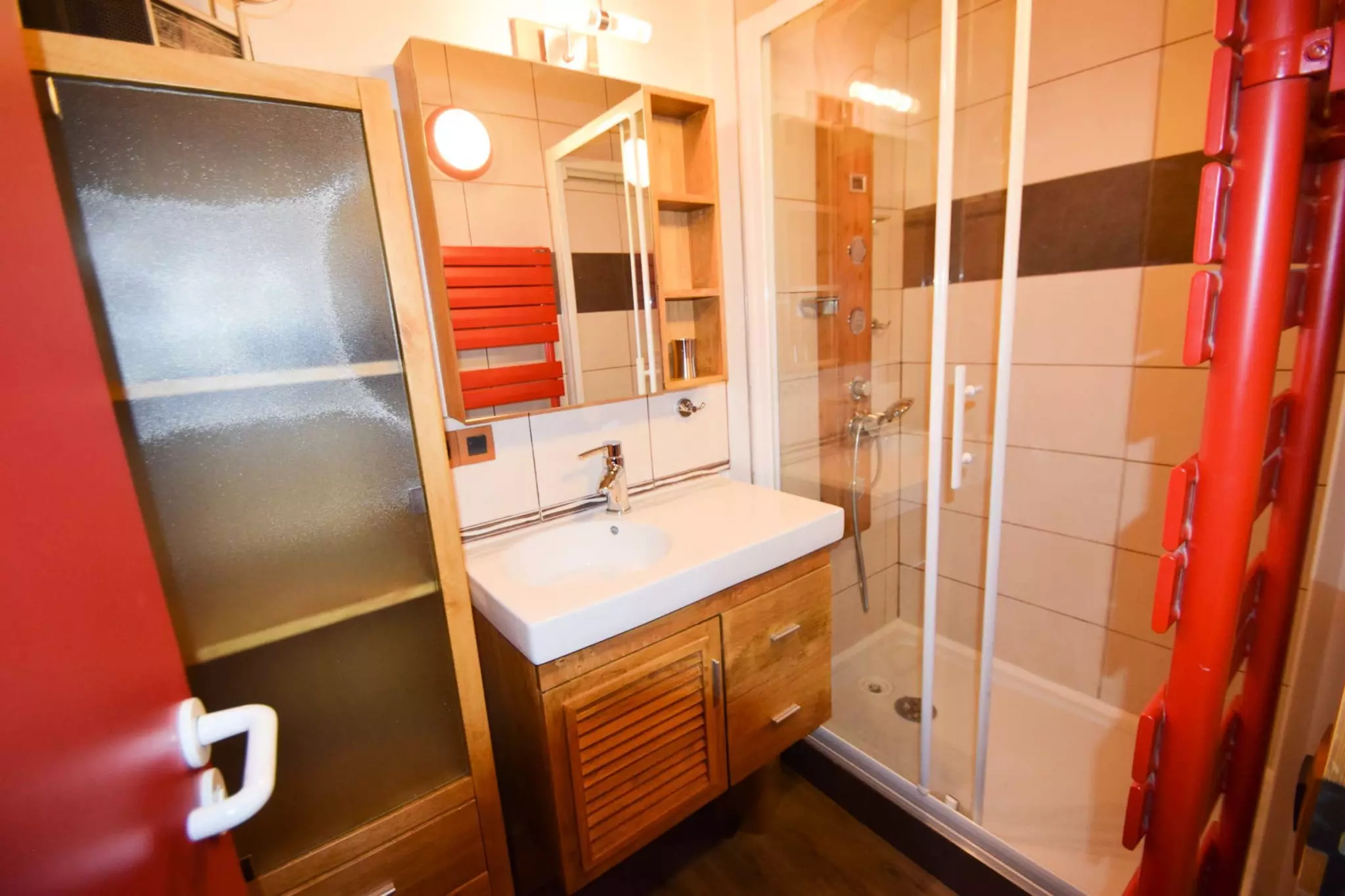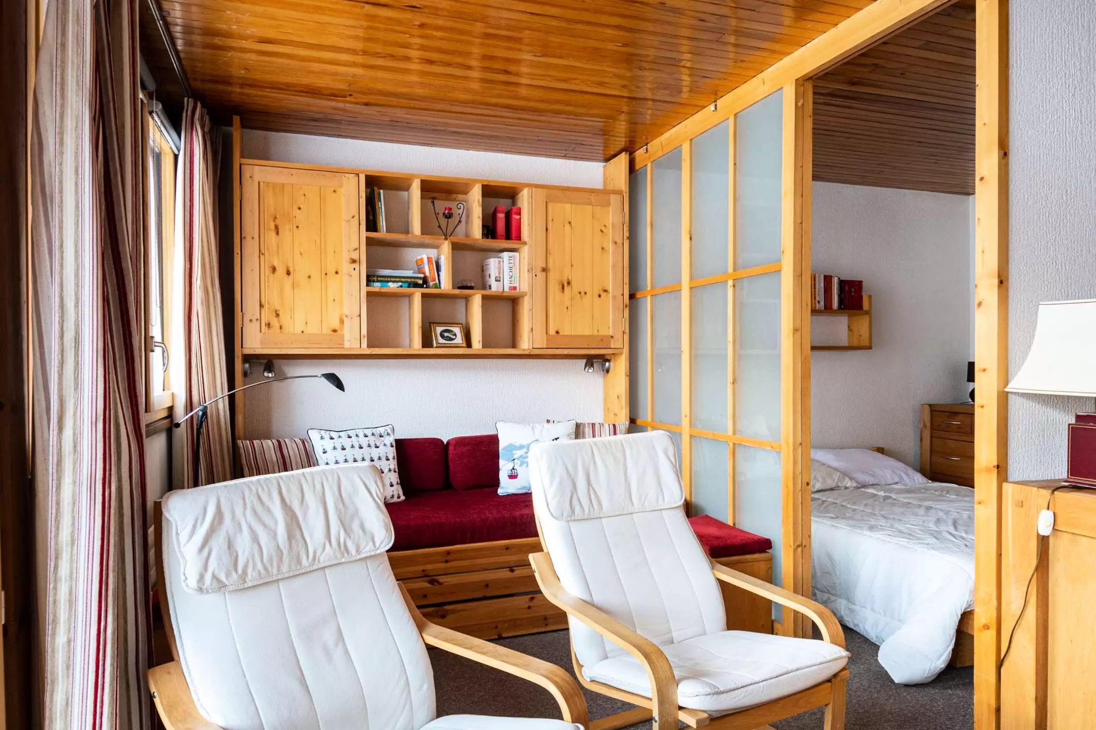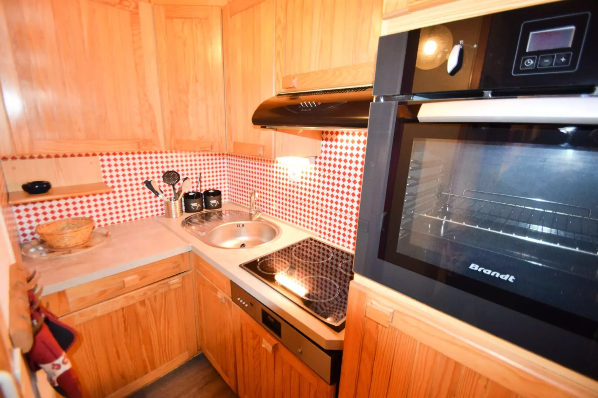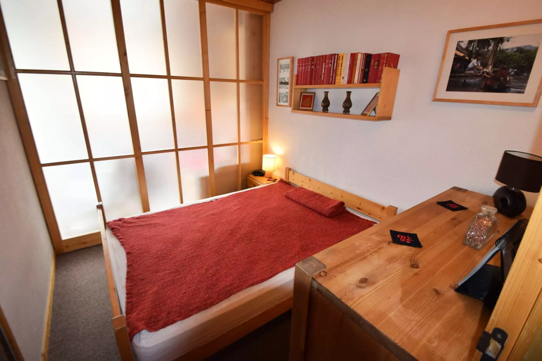2-room apartment, 40m2, 5 people, facing south, with balcony, view of the slopes, on the 2nd floor with elevator - Separate kitchen: (serving hatch): 4 ceramic hobs, refrigerator, oven, microwave, dishwasher, electric coffee maker - Living room: dining area, 2 single pull-out beds, 1 single sofa bed, television, 2 armchairs, Bedroom separated from the living room by a sliding partition: 1 double bed - Bathroom: shower, separate WC Bedding: duvets - Floor: carpet in the living room and bedroom and plastic in the kitchen and bathroom - Very well-located apartment in the heart of the resort and well-oriented, large south-facing balcony. Ski locker No. 209 on the ground floor - LE JANNU: 7-storey residence located in the heart of the resort, connected to the shops by the indoor gallery, and at the foot of the slopes. -