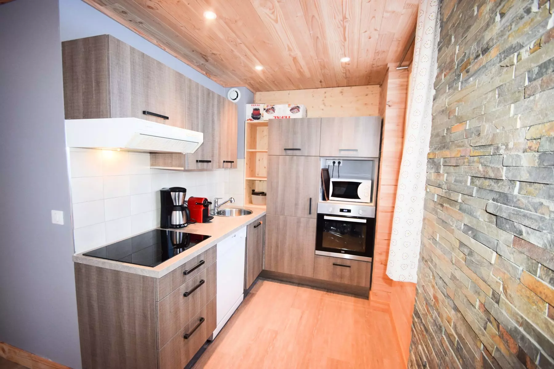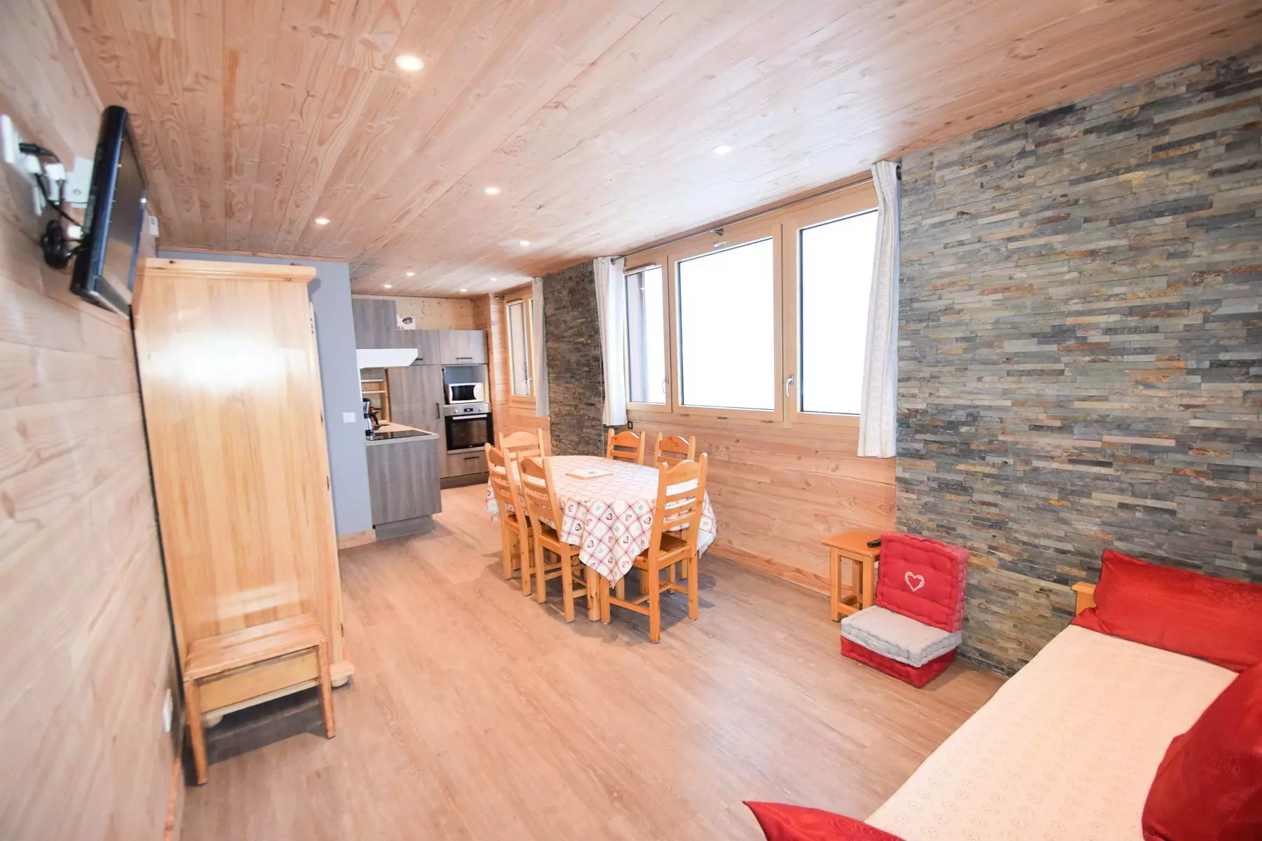 2-room apartment + cabin for 6 people, 40m2, facing SOUTH with balcony, view of the slopes, 6th floor with elevator. American kitchen: 3 induction hobs, refrigerator, traditional oven, dishwasher, electric coffee maker. Living room: 2 single pull-out beds, television. Cabin area with window: 2 bunk beds - Bedroom: 1 double bed. Bathroom: shower, heated towel rail, separate WC. Washing machine Very bright apartment, facing south and bay windows on 2 sides: SOUTH for the large balcony, and EAST with a beautiful view of Mont Blanc. Ski locker No. 605 on the ground floor. Residence located in the heart of the resort, connected to the shops by the gallery. Bedding: duvets - Non-smoking apartment