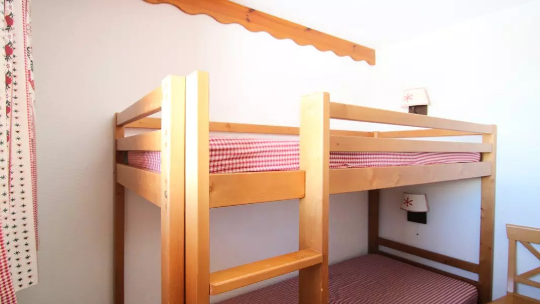 - Beds: one bedroom with 2 single beds and one bedroom with bunk bed (cupboard and wardrobe). Large bathroom with WC