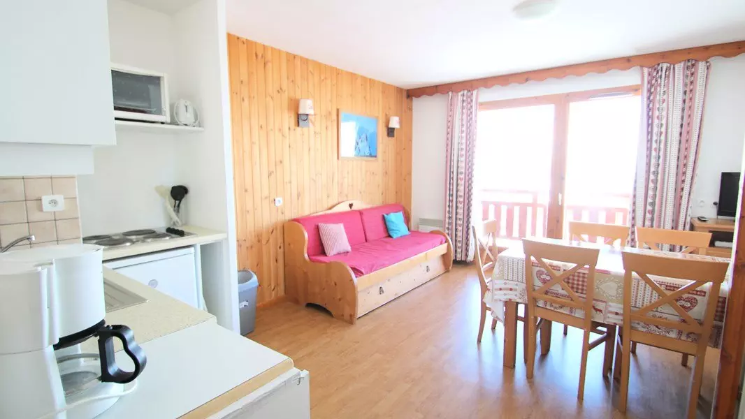 In the heart of the slopes, pretty apartment of good standing, balcony, furnished and equipped for 4/6 people. RESIDENCE LE PARC AUX ÉTOILES SWIMMING POOL AND SAUNA