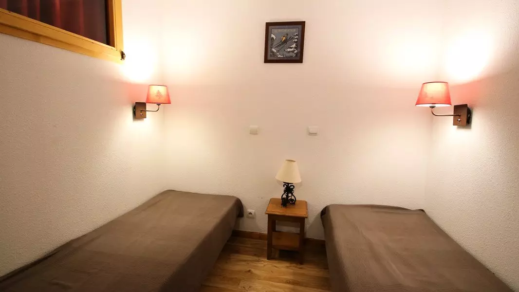 - Beds: one bedroom with double bed (140) and one cabin bedroom with two single beds (2x80) and storage shelves. Beds equipped with duvets