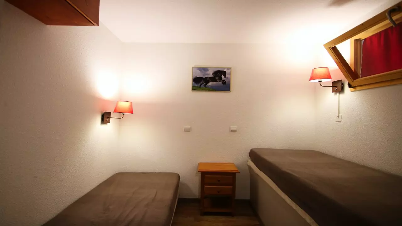 - Beds: one bedroom with double bed (140x190) and one cabin bedroom with two single beds (80x190) and storage shelves. Beds equipped with duvets.