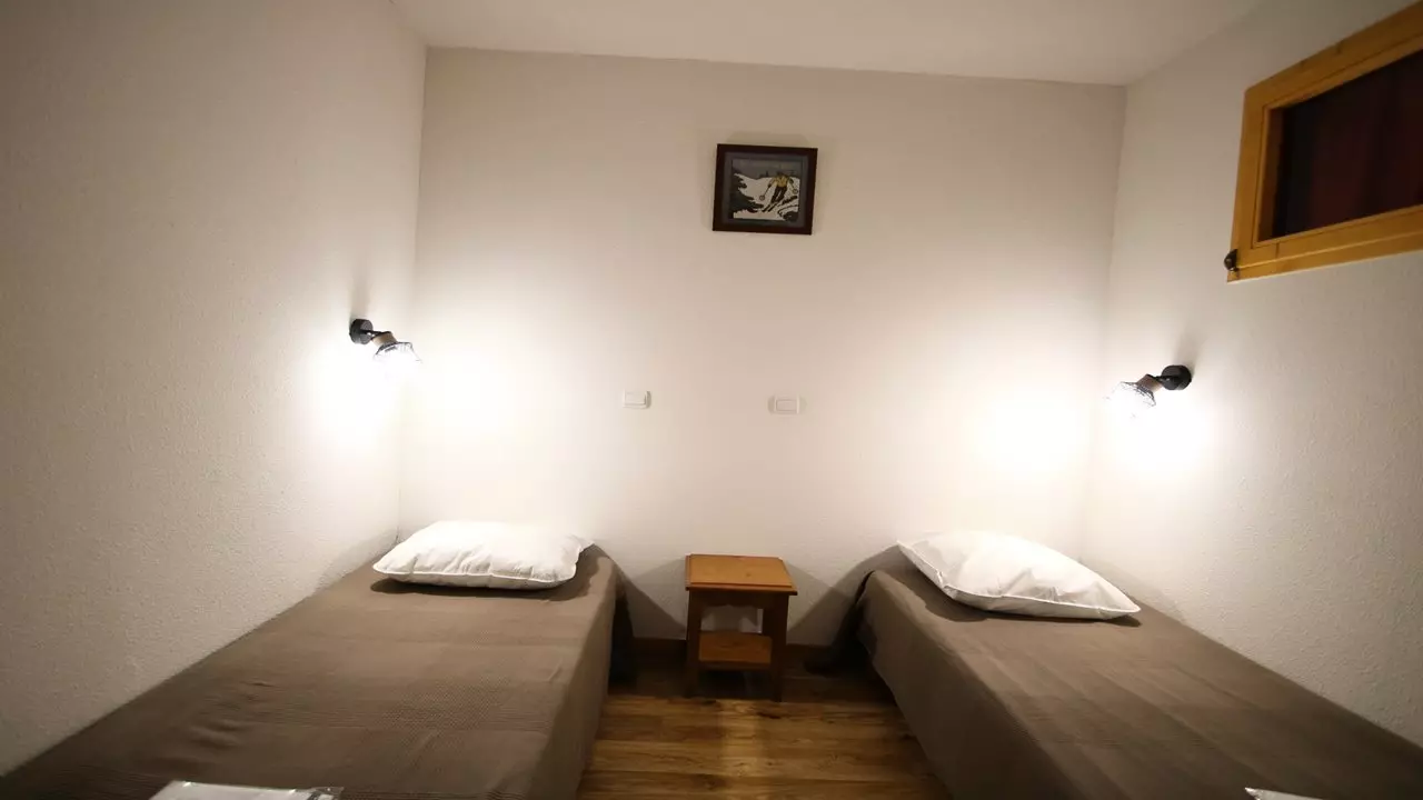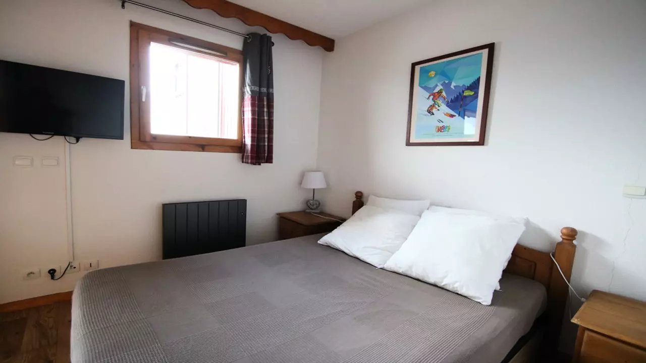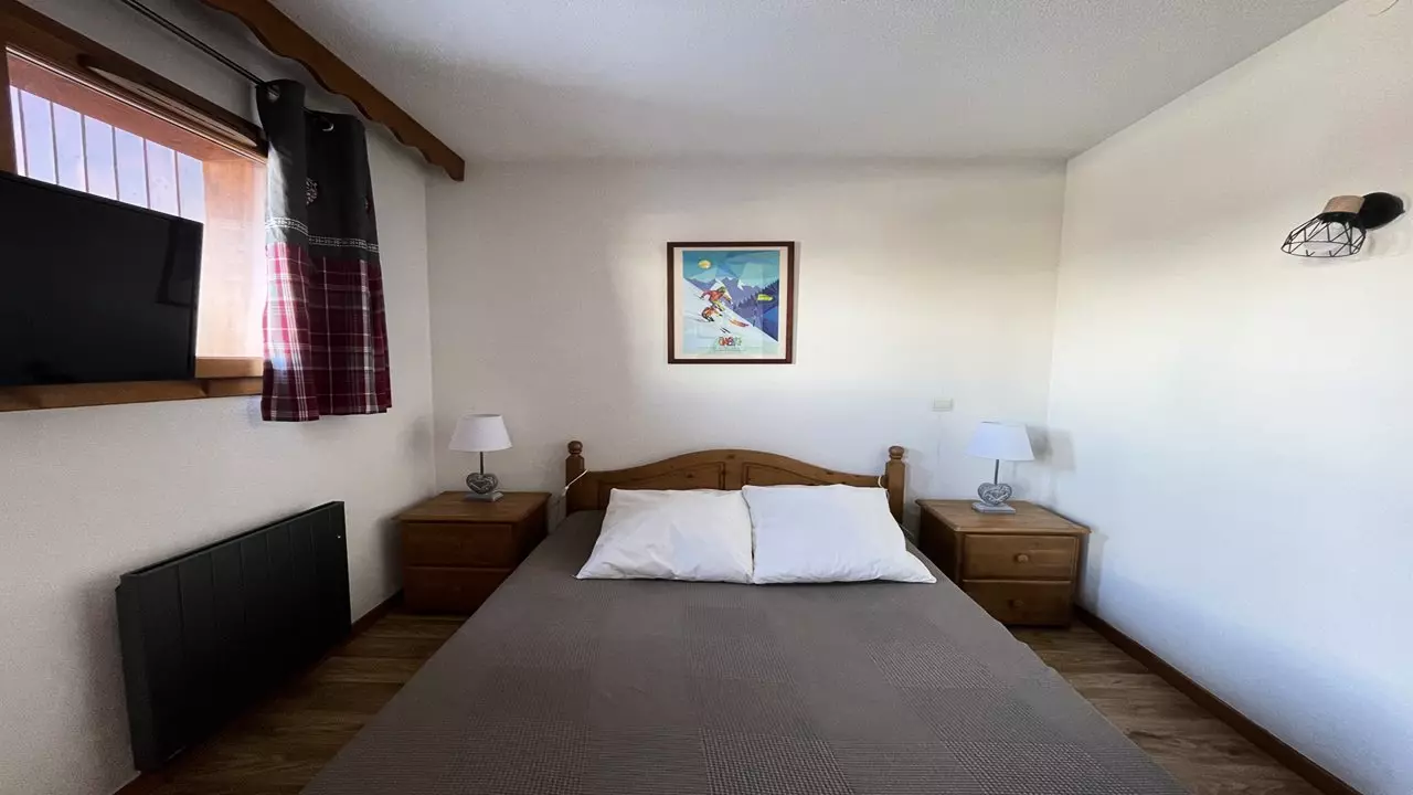 - Beds: one bedroom with double bed and one cabin bedroom with two single beds and storage shelves. Beds equipped with duvets