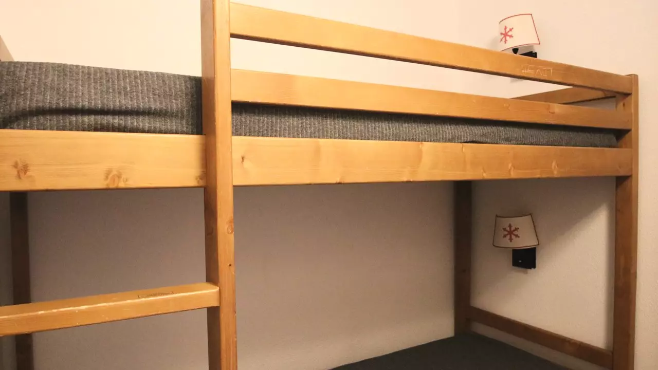 - Beds: one bedroom with double bed and one bedroom with bunk beds (cupboard and wardrobe)