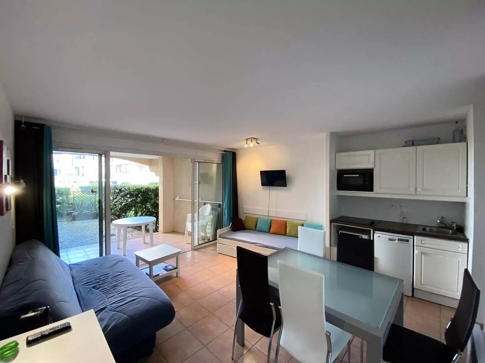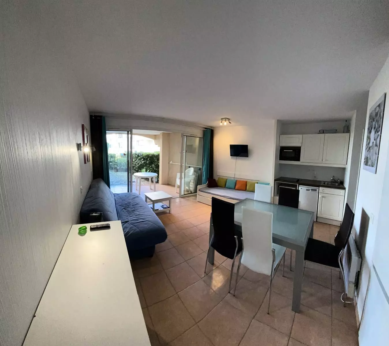 - living room dining room with a double sofa bed and a single one