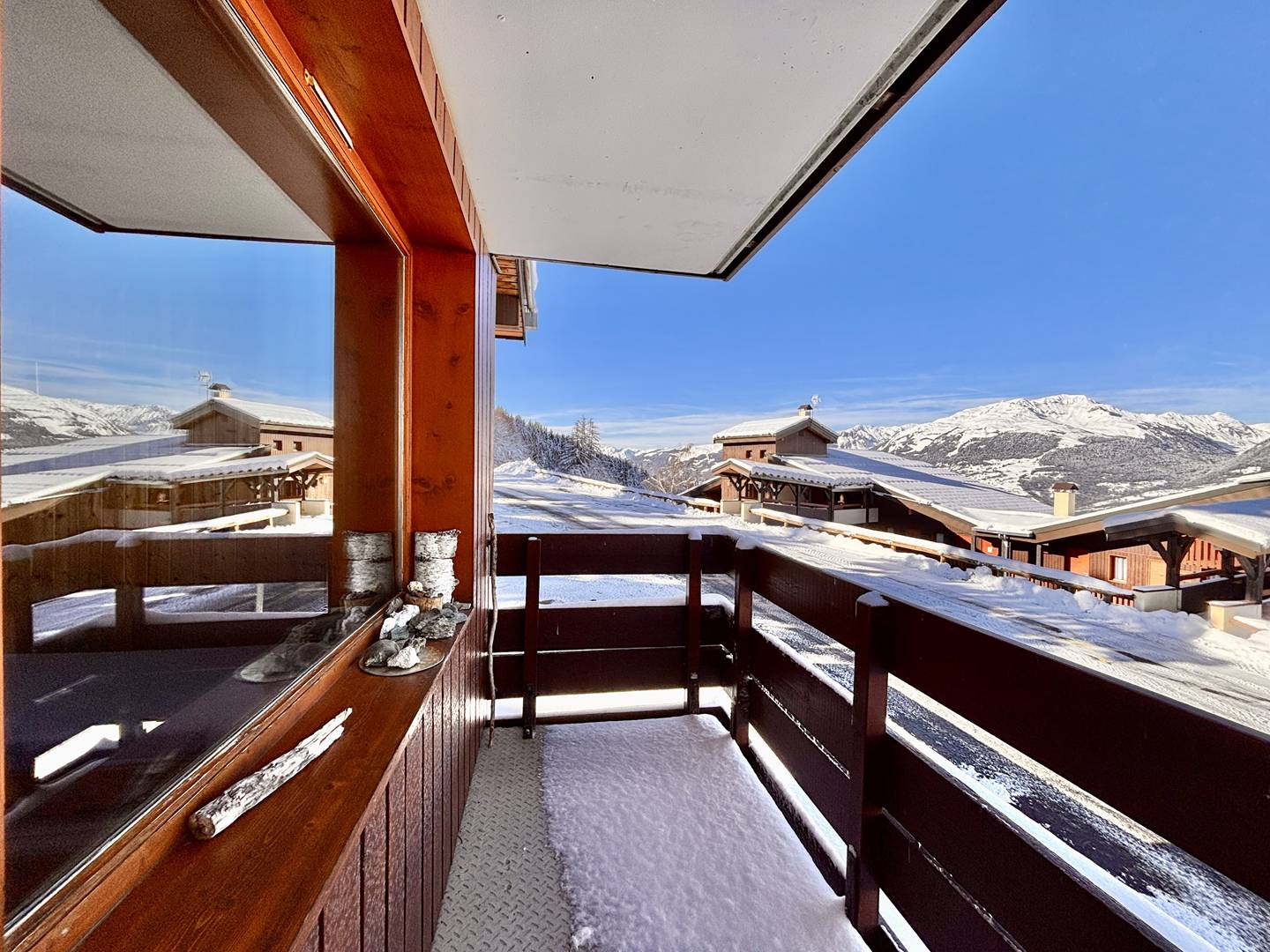 - A north-facing balcony with a view of Mont Blanc. The ski locker is in the residence.