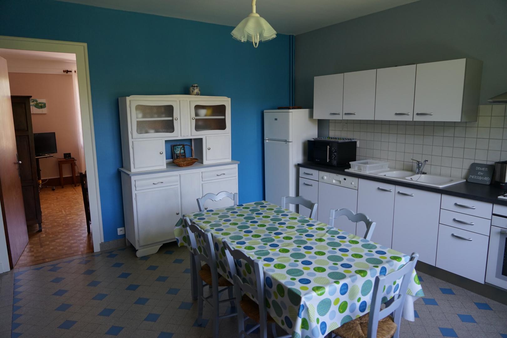300 m from the town centre of Le Buisson de Cadouin (all shops, markets, train station) and 10 km from Le Bugue, independent house of 54 m2 near other homes. Raised ground floor (10 steps). Kitchen-dining room. Living room with Wi-Fi internet connection. 2 bedrooms: 2 single beds and 1 double bed. Bathroom. Separate toilet. All rooms are on the same level. The upper level is not fitted out and is not part of the rental. Oil central heating. Garage. Enclosed land of 500 m2 with terrace, garden furniture, sun loungers and barbecue. Bathroom linen €10/person/change. Sheets €10/bed/change. End of stay cleaning €50. Heating €10/day. In the Dordogne Valley (castles, villages and world-famous sites), cottage located in a quiet area 1 km from the river (swimming in the river with pebble beach and fishing). Nearby 120 km of marked hiking trails. Close to the Bessède Forest, the Cistercian Abbey of Cadouin (12th-15th century), the English Bastide of Molières (13th century), the fortified church (12th century) and the Urval communal oven (15th century), the Maxange Cave and the Proumeyssac Chasm. And, approximately 40 km away: Lascaux 4 International Center for Parietal Art in Montignac, Sarlat (Medieval city with exceptional heritage) and Bergerac (Vineyards and Bastides).