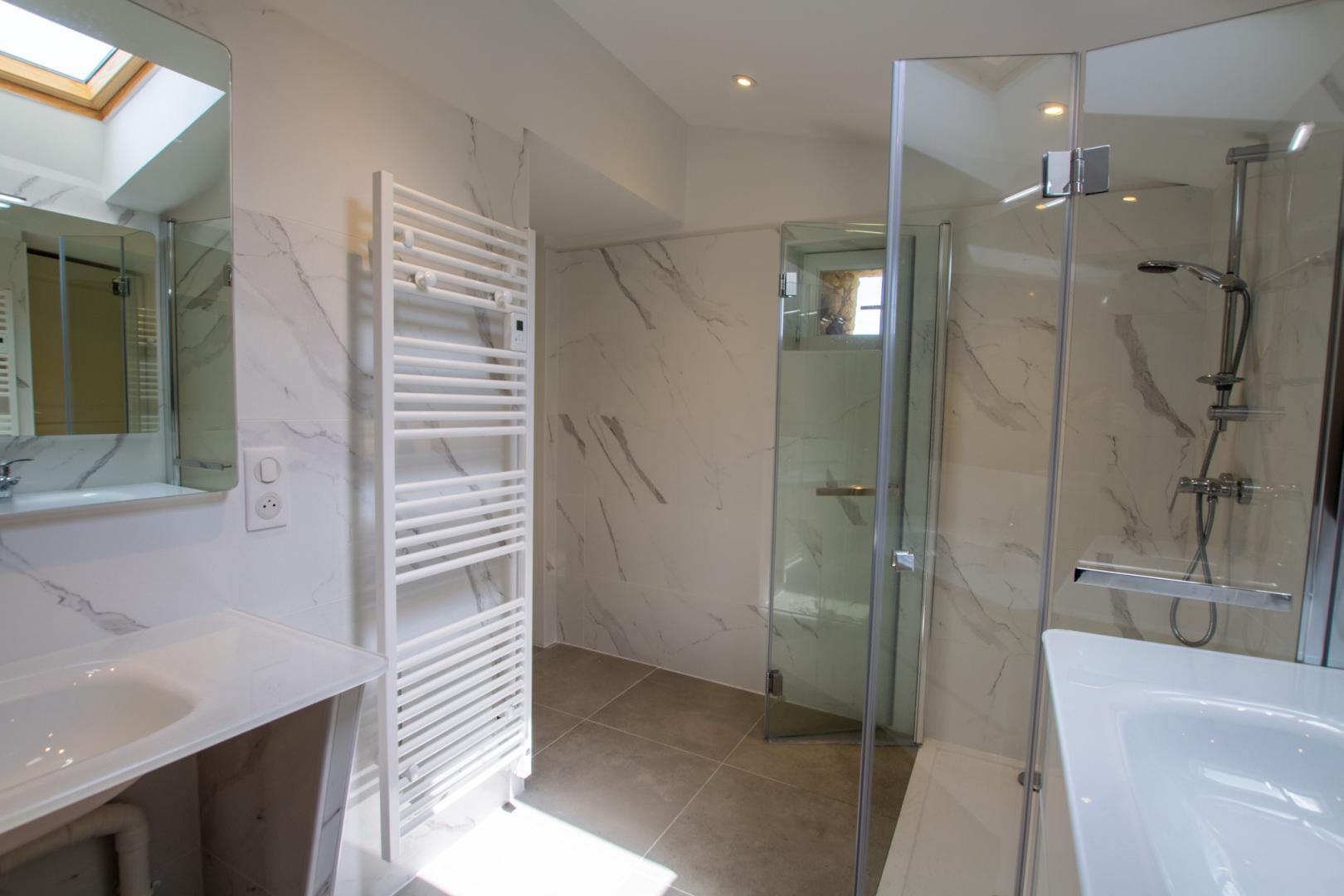 On the ground floor, you will enter through the large main room with a fully equipped kitchen (dishwasher, oven, microwave, etc.) open to the living room, TV, 2 sofas. A corridor leads to a bedroom with 1 bed 140x190 and TV. Separate toilet. Upstairs, you will enjoy a bedroom with 1 bed 140x190. Separate toilet with washbasin. Laundry room with washing machine and dryer accessible from the outside only. Terrace and private land of 1500 m2 on a 12 ha estate, garden furniture, sun loungers and barbecue. 3 parking spaces on the property.