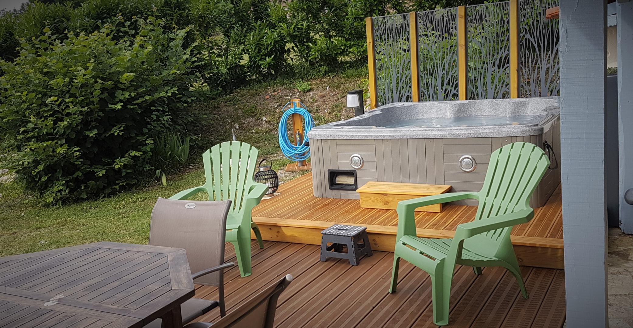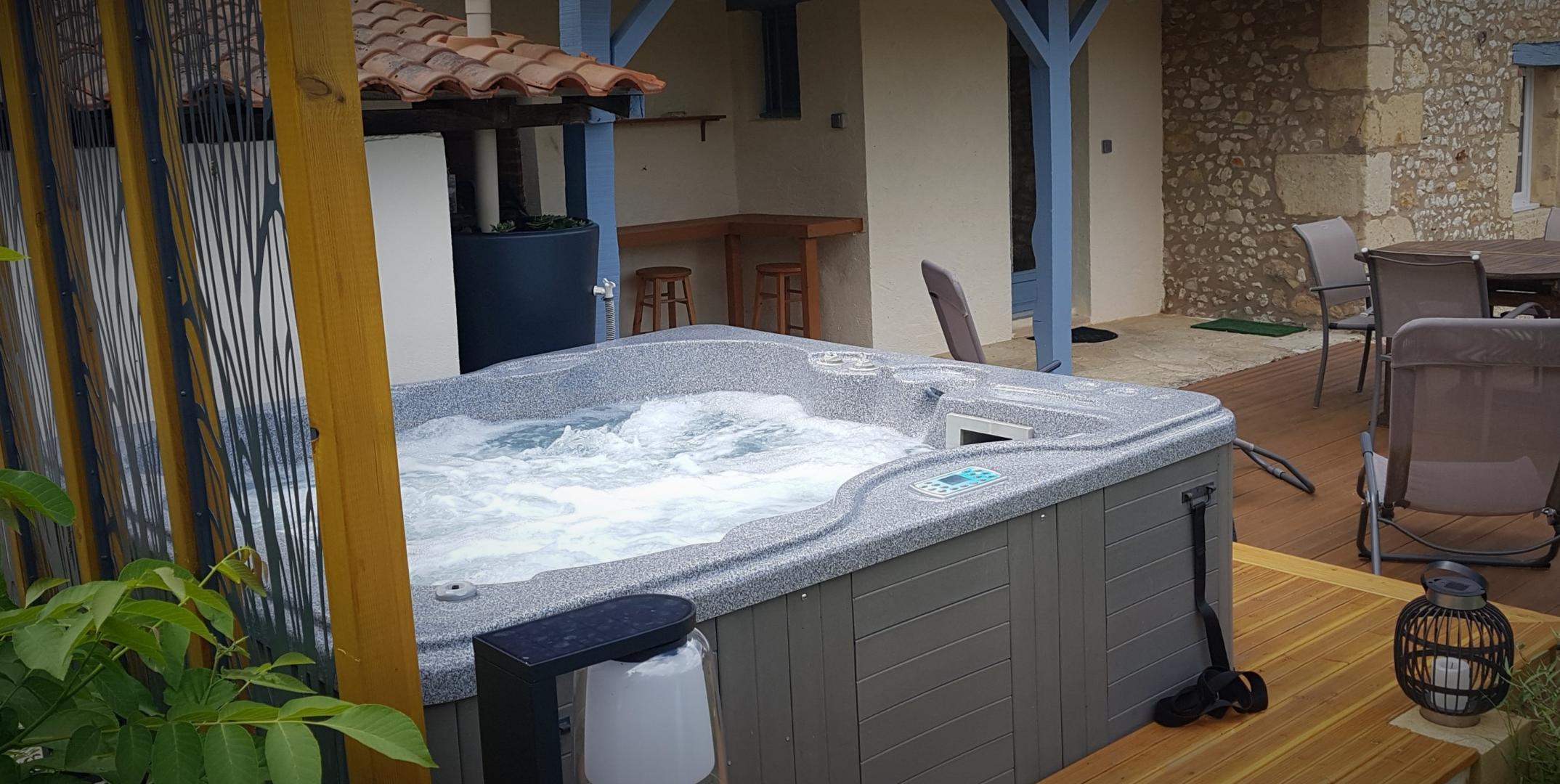 Independent Perigord house gîte de France of approximately 42 m² below the owners' house. On the ground floor, you will enjoy a bathroom (walk-in shower, washing machine, towels provided, hair dryer). Separate toilet. Go down 2 steps to access the living room with a kitchen area (dishwasher, oven/induction hob, refrigerator and microwave), a dining room, a lounge area with 2 armchairs and a TV. Wifi. On the 1st floor, you will occupy a bedroom with 2 beds of 80x200 to be pushed together to create a bed of 160x200 or to be separated according to your needs (bed linen provided). In fine weather, an outdoor jacuzzi is available for guaranteed relaxation (out of season: on request depending on the weather).