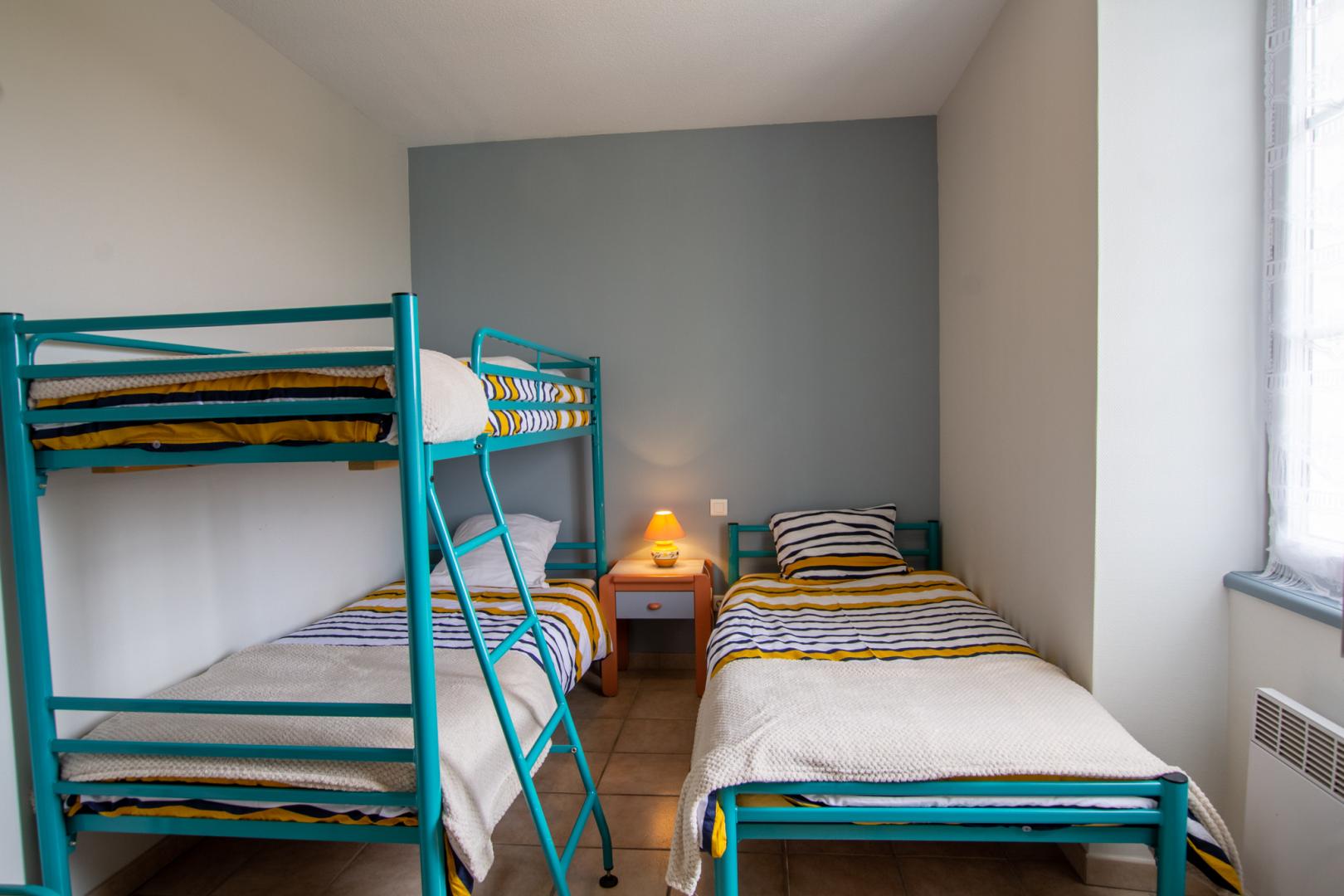 Communal cottage located on the village square on the floor of a building with access via a secure external staircase at the top. Large apartment of 57 m² with a private covered terrace of 16 m² with garden furniture and electric barbecue. Living room with a fully equipped kitchen area (oven, microwave, fridge-freezer, dishwasher, 3-burner induction hob), a dining table and a lounge area with corner sofa, armchair and television. 1 shower room. 1 toilet. A bedroom with 1 140 cm bed. A bedroom with 3 90 cm beds including 1 bunk bed. Also available is a washing machine (in the cellar of the building). Private parking space available in front of the cottage.