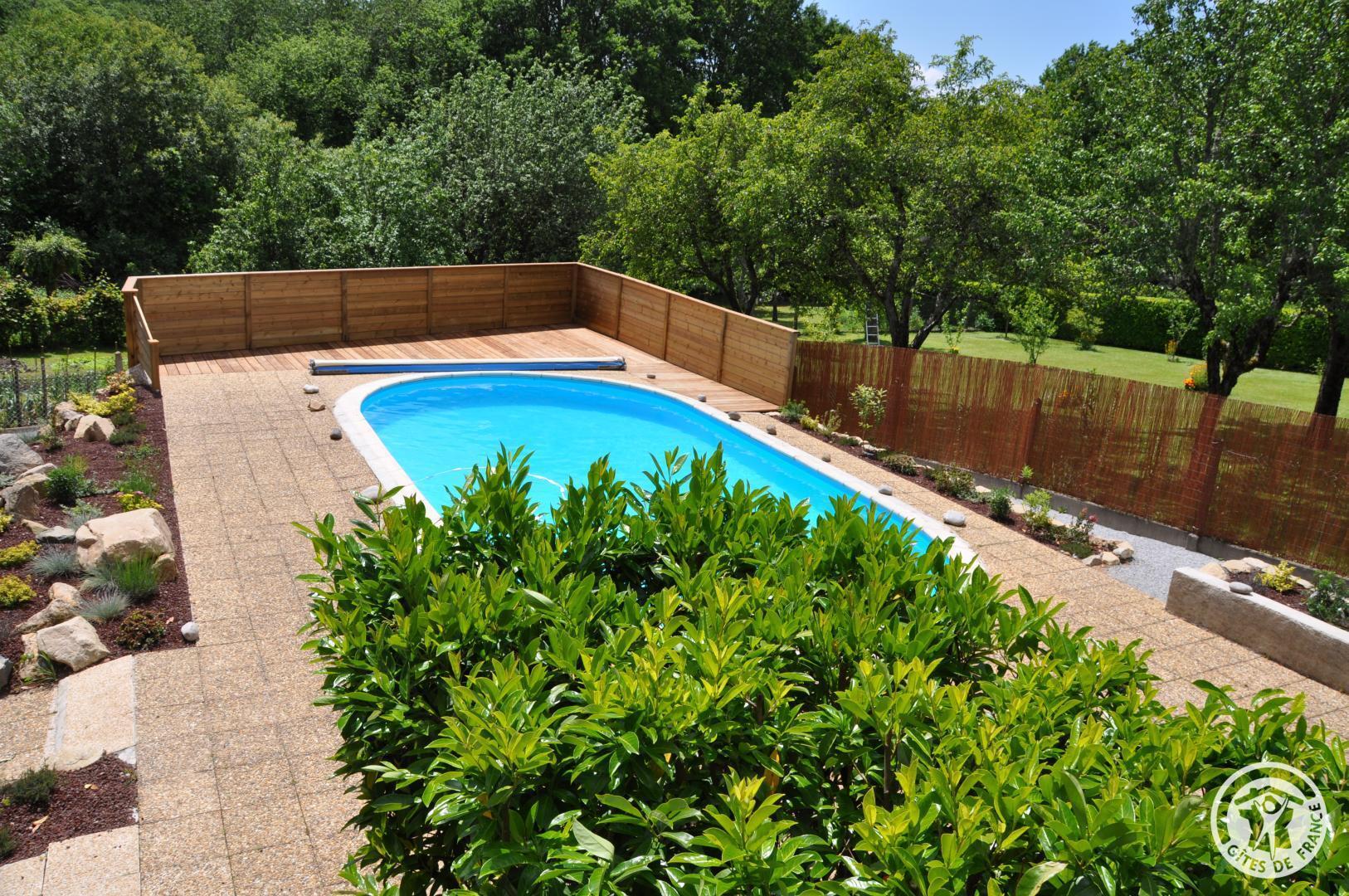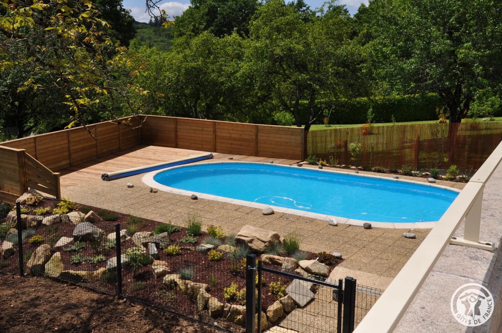 Swimming pool for the High and Very High season 8 X 4.50 depth 130 to 170 cm available from June to September Family home of character in stone built in 1905 and recently carefully restored; surrounded by a private park of 3700 m2, wooded and enclosed. Ideal for holidays with family or friends, the house is designed to accommodate 10 people in comfort. A beautiful terrace of 40 m2 overlooks a landscaped relaxation area with a secure swimming pool. For the coolness, there is a second terrace in the shade of lime trees and a garden furniture under a thatched hut. On the 1st floor there are three beautiful bedrooms, including 2 with shower room, a bathroom and WC. On the 2nd floor, two attic bedrooms, WC and bathroom and laundry room. Internet/WiFi is accessible throughout the house. 50 TV channels everywhere on your tablets with a simple App..