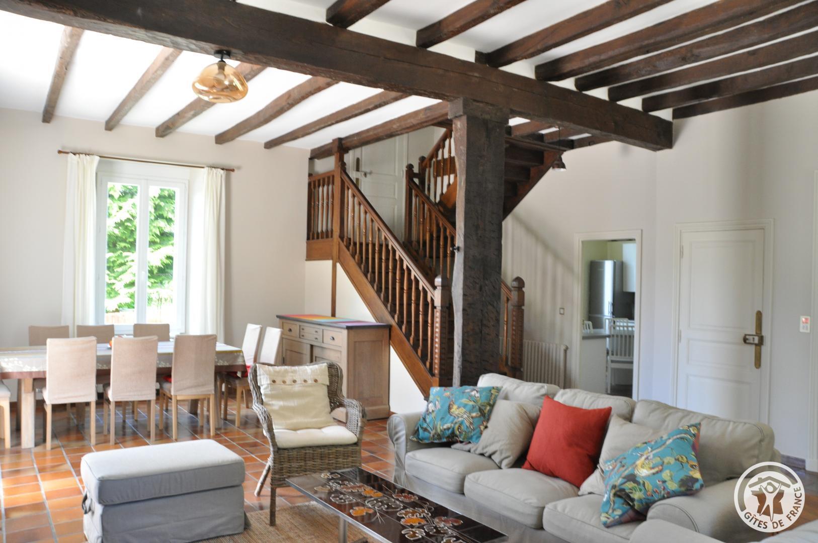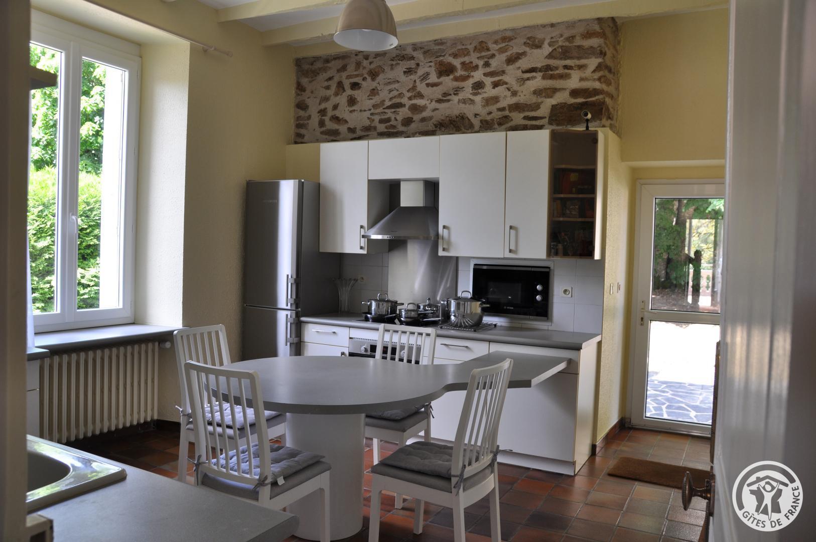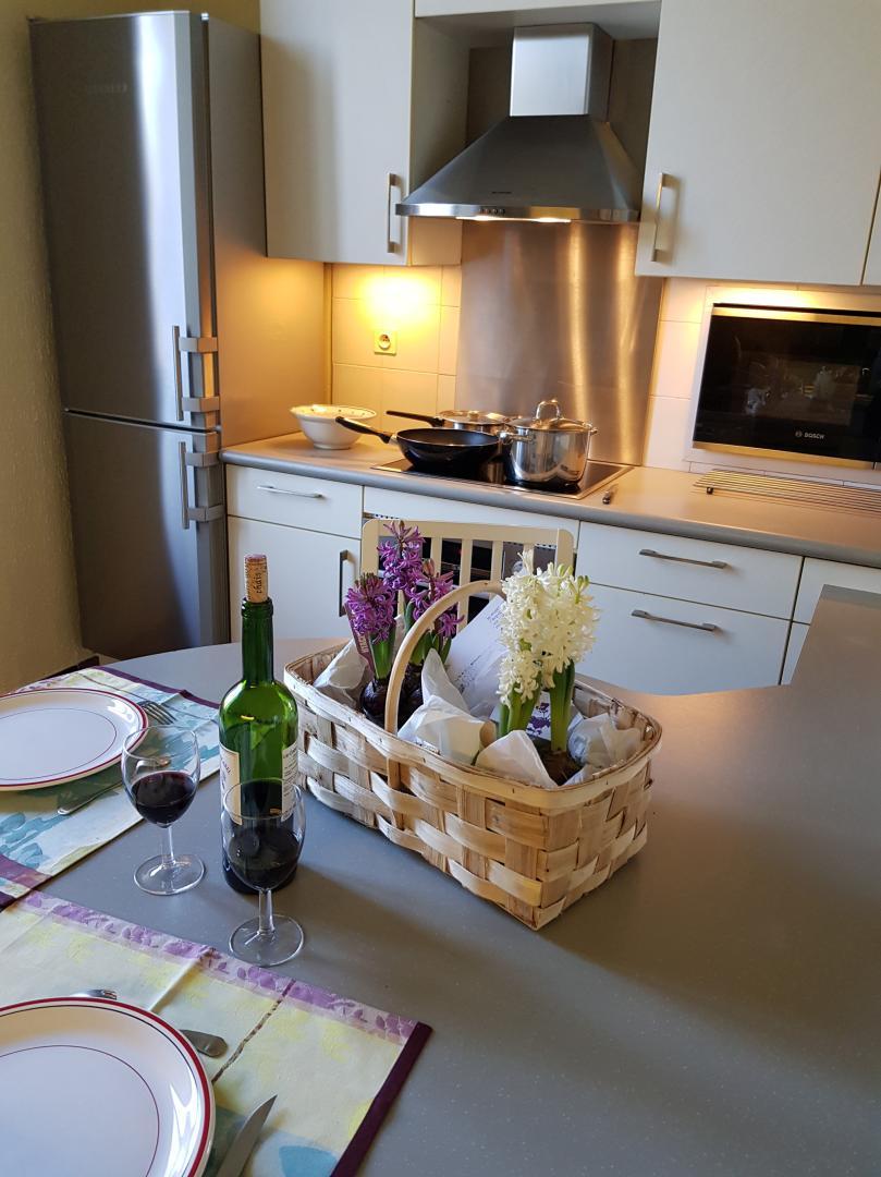 On the ground floor: A large kitchen of 16 m2 fully equipped (oven, microwave, induction hob, extractor hood, dishwasher, fridge/freezer). Dining room/living room (50 m2) with flat screen TV, stereo, DVD player, wifi internet, insert in winter. Mid-floor: WC
