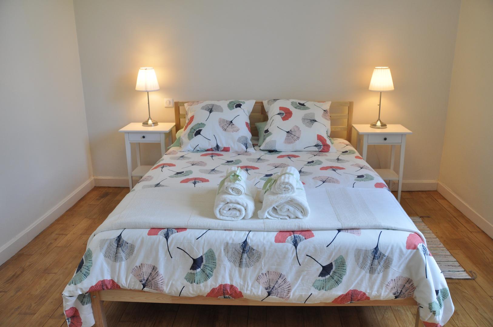 On the 2nd floor: 1 bedroom with 1 bed 140*190. 1 bedroom with a convertible sofa with quality bedding 140*190. 1 bathroom and 1 separate toilet.
