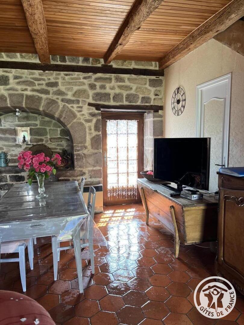 Detached house. A carport is available in the enclosed garden. The living room/lounge is equipped with a kitchen area with a gas cooker, a fridge, a dishwasher, a microwave, a filter coffee maker and a kettle. 2 bedrooms (mosquito nets on the windows) are available: the bedroom, accessible by a small step, is equipped with a 140 bed and two 90 beds; the second bedroom, accessible by 3 steps, has a 140 bed, is adjoining the Italian shower. A separate toilet accessible from the shower room. Possibility of renting sheets on request. In a small village near Tulle in Corrèze, nestles an ideal cottage for a family in search of rest and discovery. Nestled in the heart of a hilly setting bathed by rivers and ponds, this haven of peace offers the opportunity to explore a region rich in historical and natural heritage. This independent cottage, housed in an old farmhouse, seduces with its authenticity and old-world charm, with its granite walls and slate roof. A vast enclosure of 1200 m², green and fenced, welcomes pets, thus offering everyone the opportunity to recharge their batteries in this green cocoon.