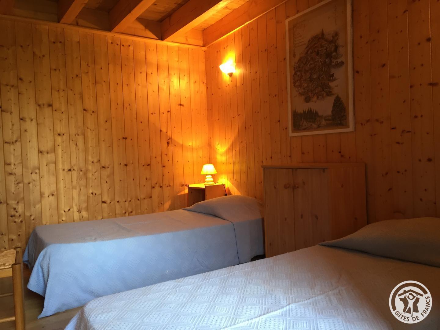 Tourist tax: €0.90/day/adult Charming little cottage located in the heart of nature on a plot of 1000 m². 2 bedrooms (2 single beds, 1 double bed), living room with kitchenette, lounge area, electric heating, grounds. Altitude 410 m.