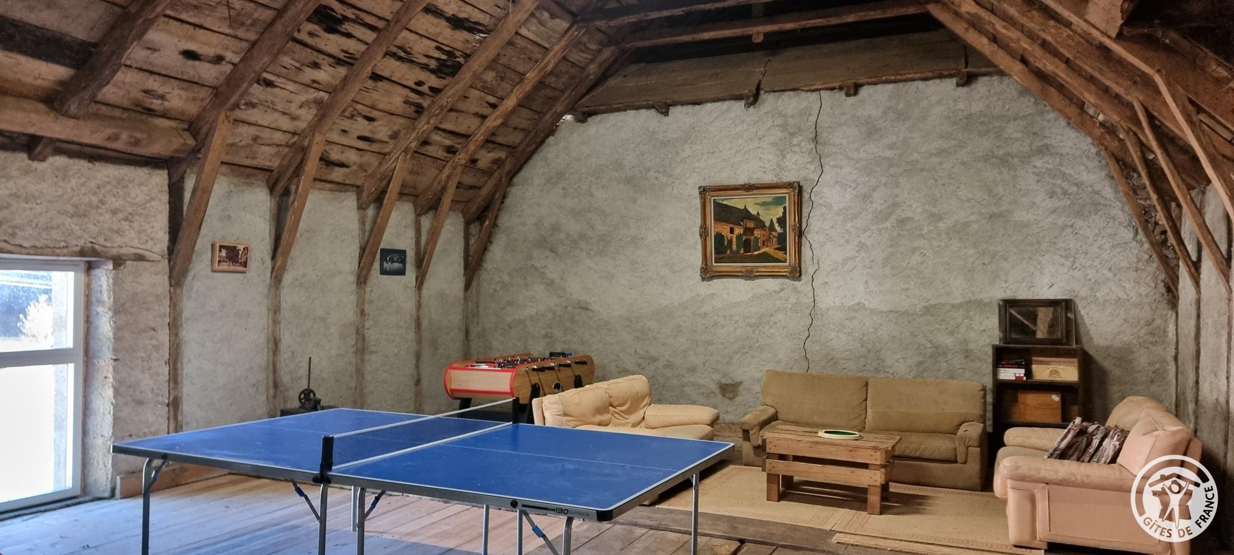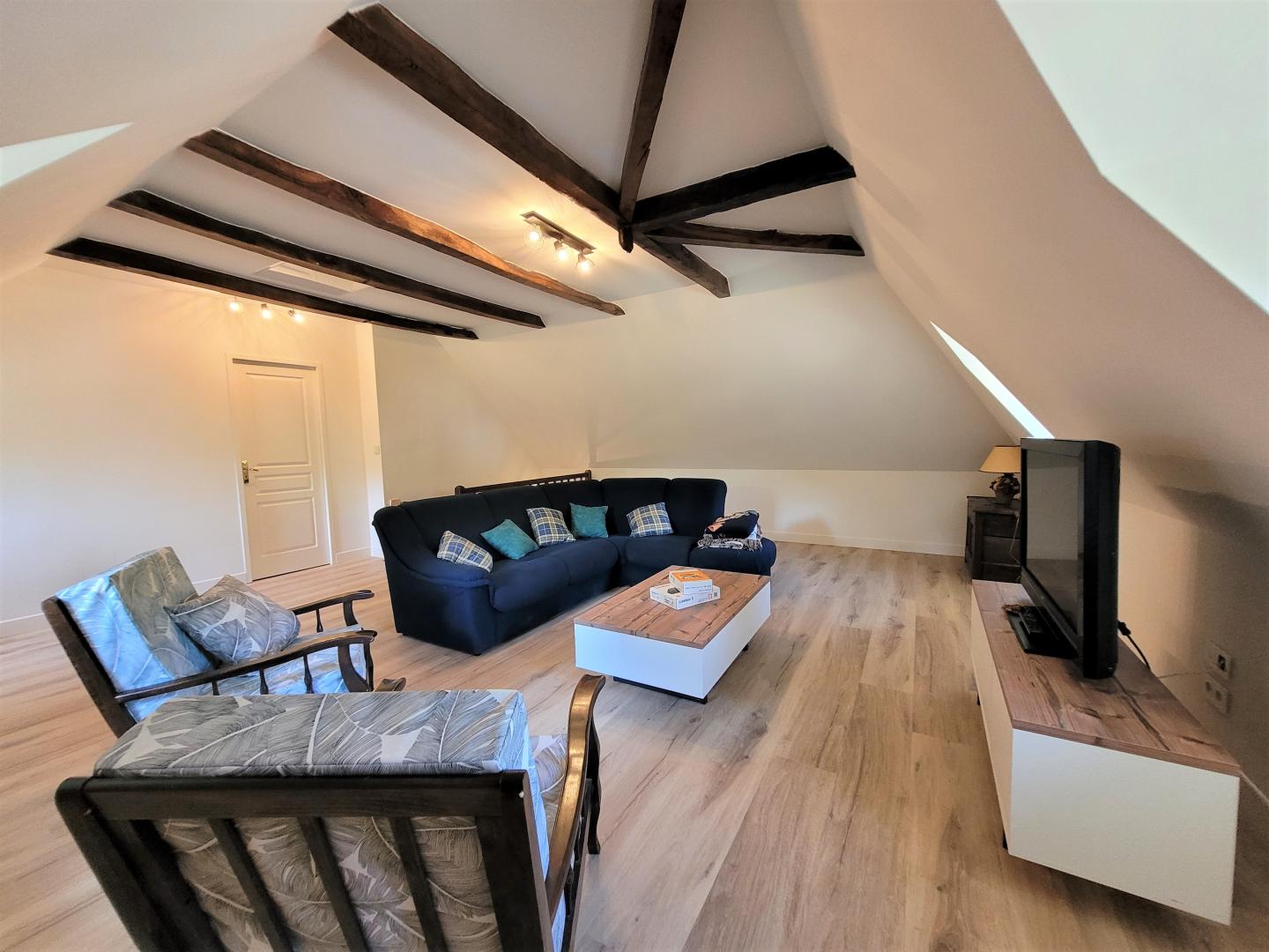 On the ground floor: A kitchen/dining room, 2 bedrooms (1 140 cm bed and 2 90 cm beds), a shower room and separate toilet with washbasin. Upstairs: A large comfortable living room, 1 master bedroom with 160 cm bed and bathroom, toilet. A 90 cm bed available on the mezzanine for 1 additional child. You will also find a large cellar-laundry room, a barn, a bicycle storage room, 1 games room, a bowling alley...