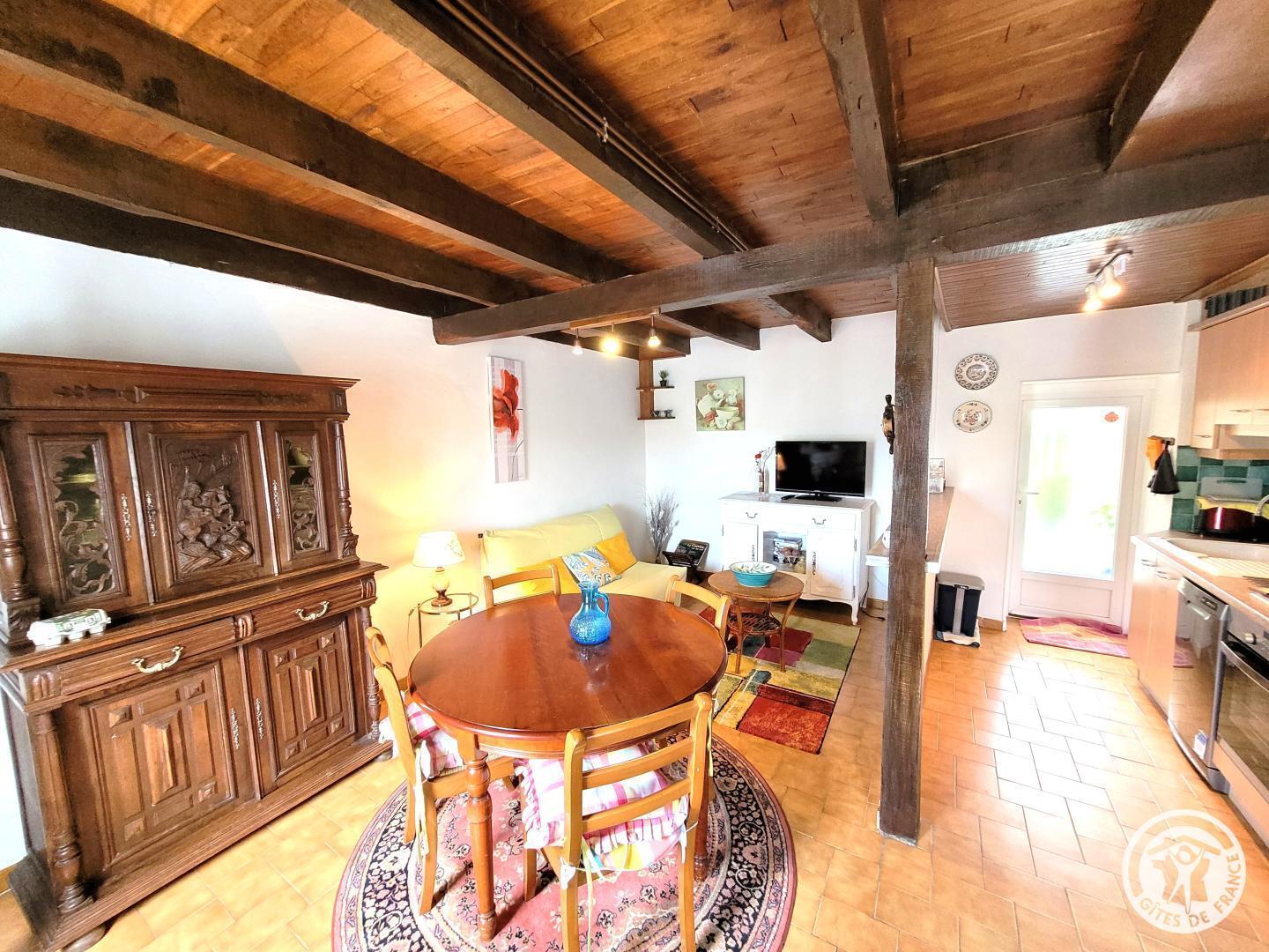The house is composed on the ground floor of a fully equipped kitchen (filter coffee maker and Senséo) open to the living room - dining room and giving access to a terrace and a large private garden, not overlooked.