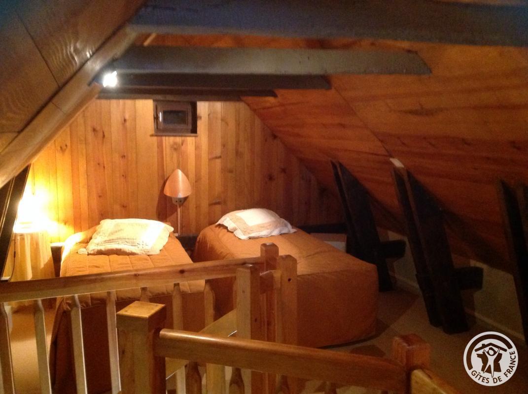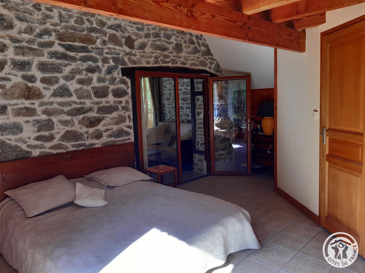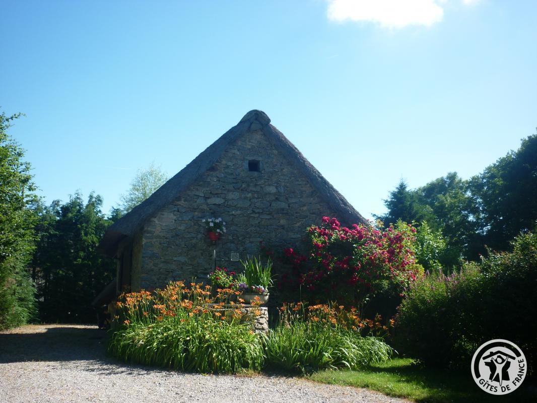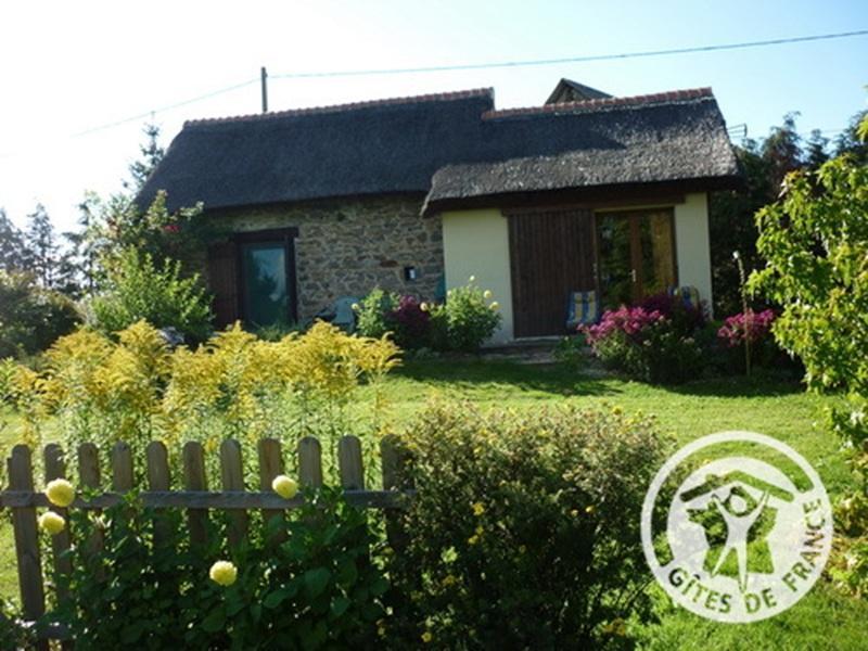 2 km from the village, altitude 730 m. In a hamlet (3 houses) in a quiet area, independent thatched cottage. 1 attic bedroom (3 single beds) 1 ground floor bedroom with 1 double bed and bathroom with bathtub and toilet,