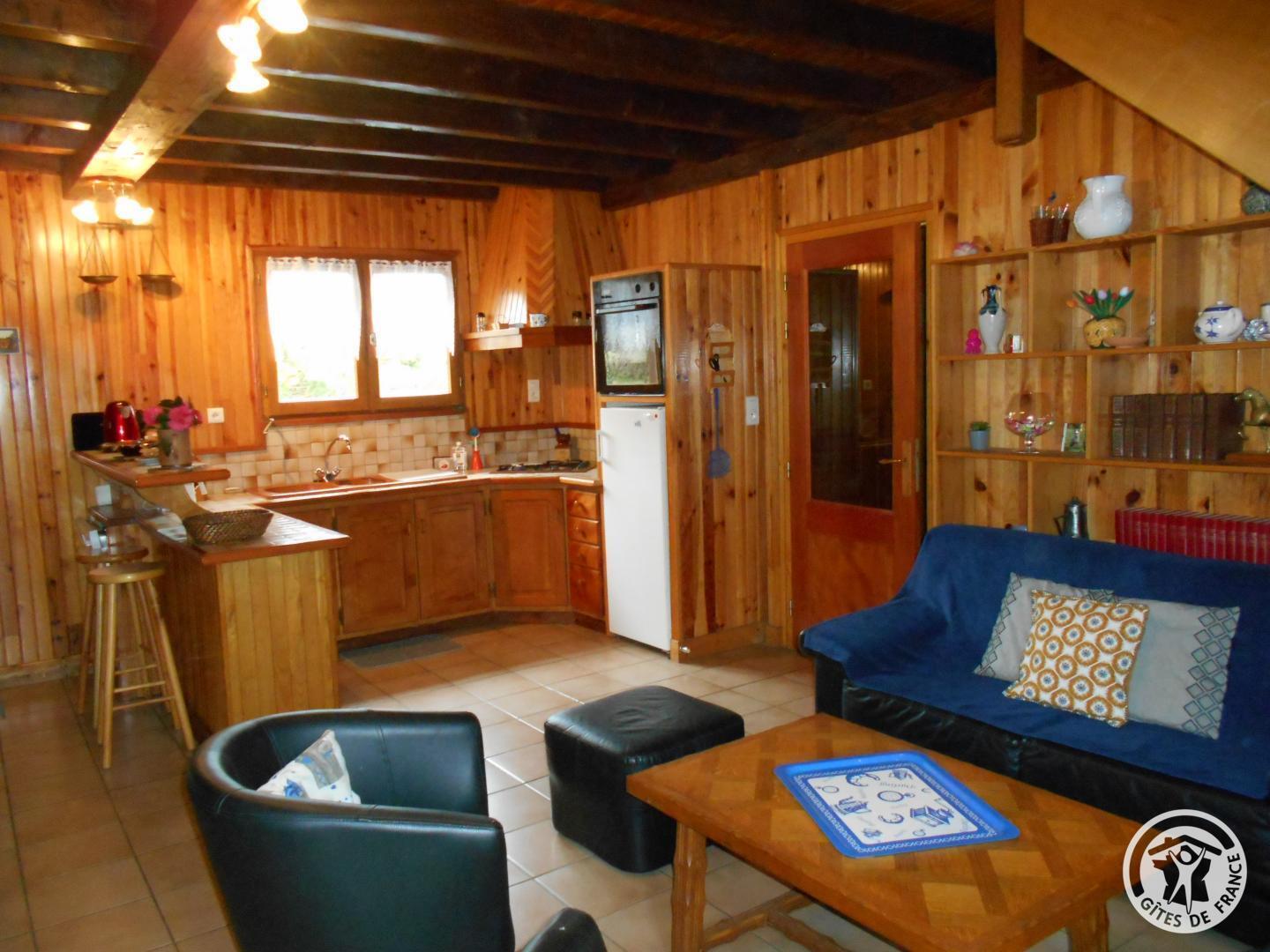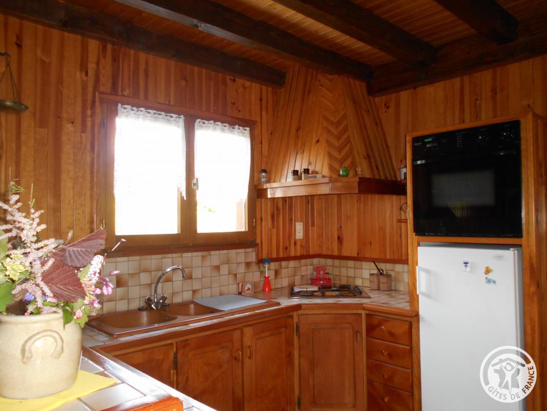 On site: Communal pond (fishing/map), marked trails. Nearby: other bodies of water for swimming (Ruffaud, Prévot), swimming pool, leisure center in Marcillac la Croisille, Aquarecreational center in Tulle and Egletons, Equestrian center in Egletons, mountain bike base at the Château de Sédières, Gimel waterfalls, Museums of Tulle and Sarran, Château de Ventadour, Millevaches Natural Park, local markets... Independent chalet, in wood and granite, on large wooded grounds, in a small quiet hamlet, in the heart of the Pays vert, between the Massif des Monédières and the Dordogne Valley. Ideally located to discover the Corrèze heritage and recharge your batteries. Living room with kitchenette and fireplace (wood stove, wood on request to be paid on site). Ground floor: 1 bedroom (1 double bed), shower room & separate toilet. Floor: 1 bedroom (1 bed 140 + 1 bed 90), mezzanine (baby bed - desk - ironing). Electric heating. Freezer... Open for stays of 4 days minimum all year round. Shops 7 km away. Altitude 580 m