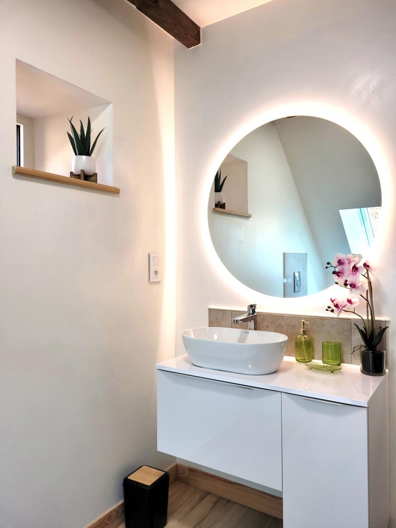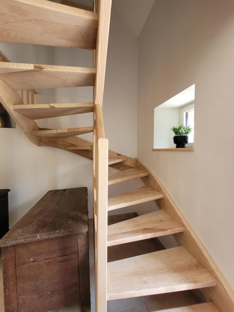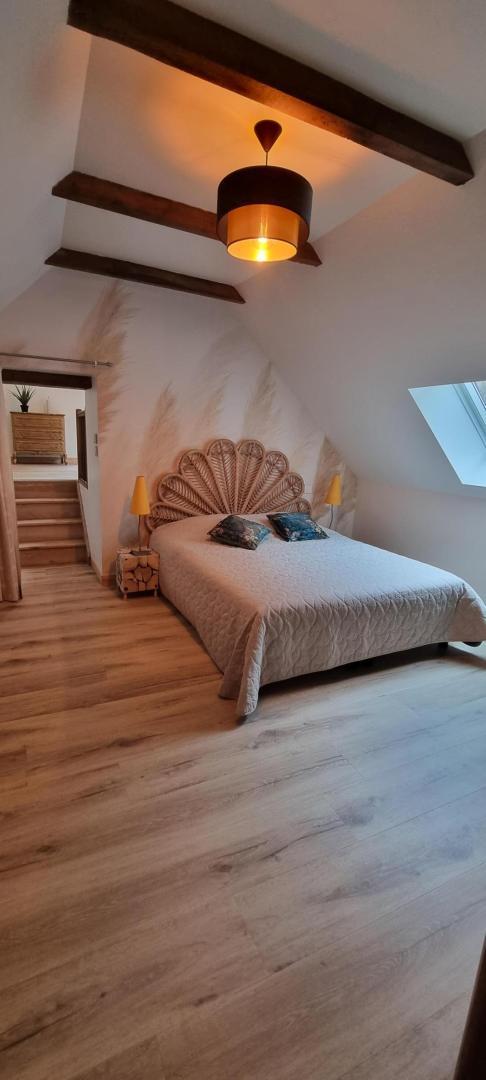 Upstairs: 1 bedroom with a 160 cm bed opening onto a shower room with toilet and a second bedroom with a 90 cm bed.