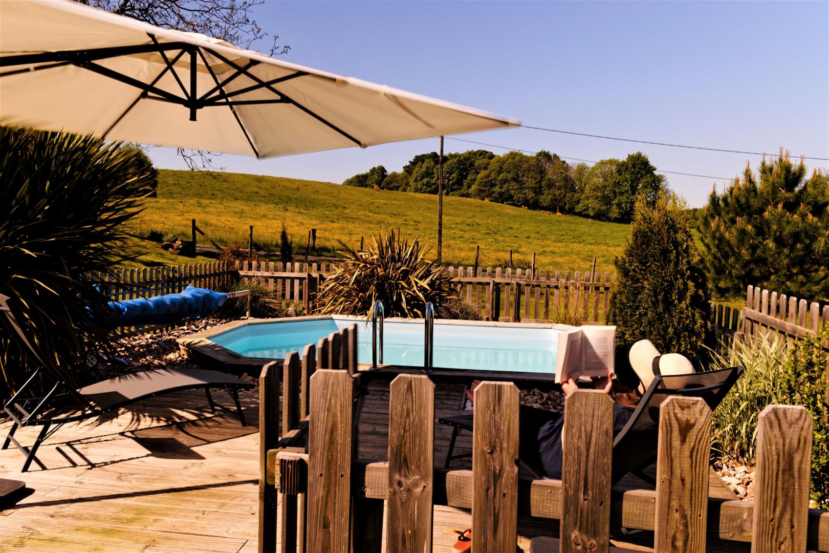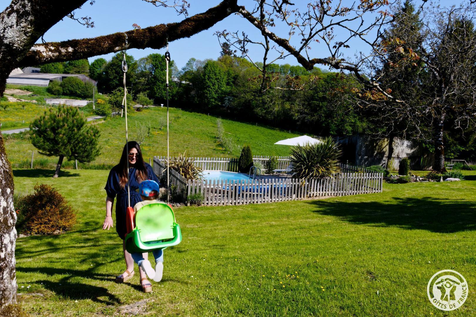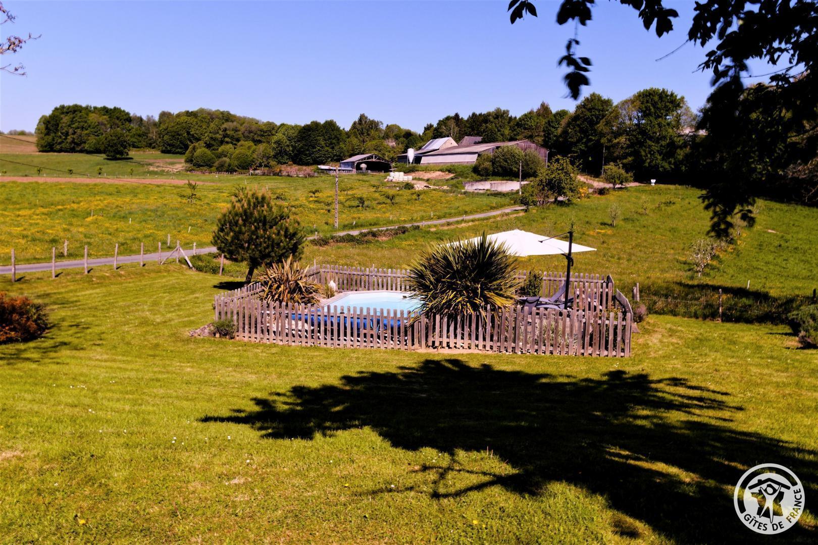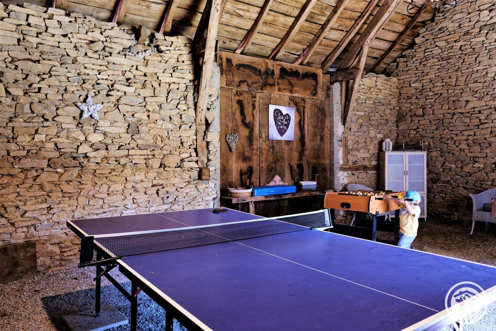 Living room with lounge area (sofa bed for 2 people) and kitchen area, 2 bedrooms upstairs (2 beds 140 X 190) with air conditioning, shower room. Come and relax in a charming house typical of Corrèze at Hameau des Noyers in Sainte Fortunade. This old restored farmhouse, combining old and contemporary, is located in the heart of the Corrèze countryside, a stone's throw from tourist sites. Able to accommodate 4 to 6 people, the cottage has private wooded grounds with an ornamental pond and a secure swimming pool (open from May to the end of September depending on the weather) with a wooden terrace. In the shade of the Walnut trees, let yourself be tempted by a game of pétanque with our bowling alley and a swing. In a dry stone barn, discover a 45 m² recreation room which offers a relaxation area with reading space, coloring for children, board games, music, various documentation on Corrèze, table football and ping-pong table and a pool table.