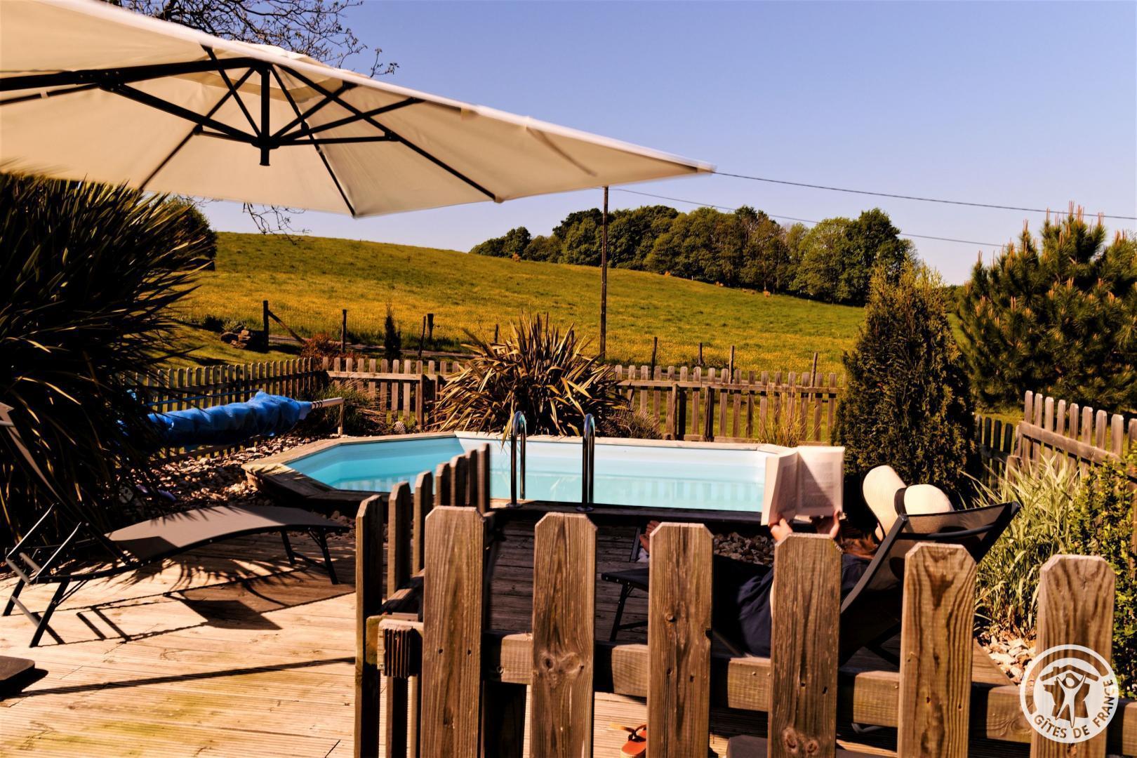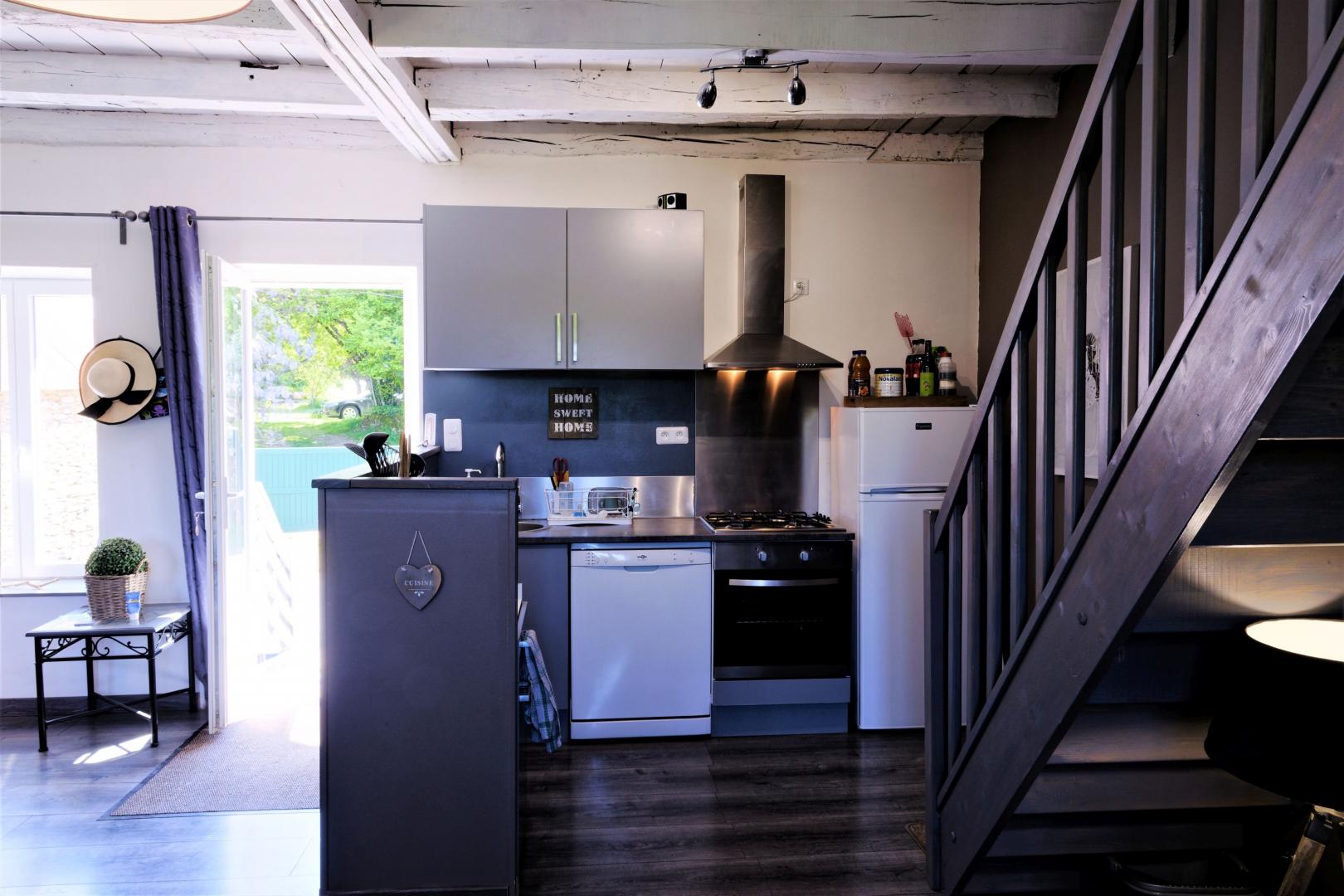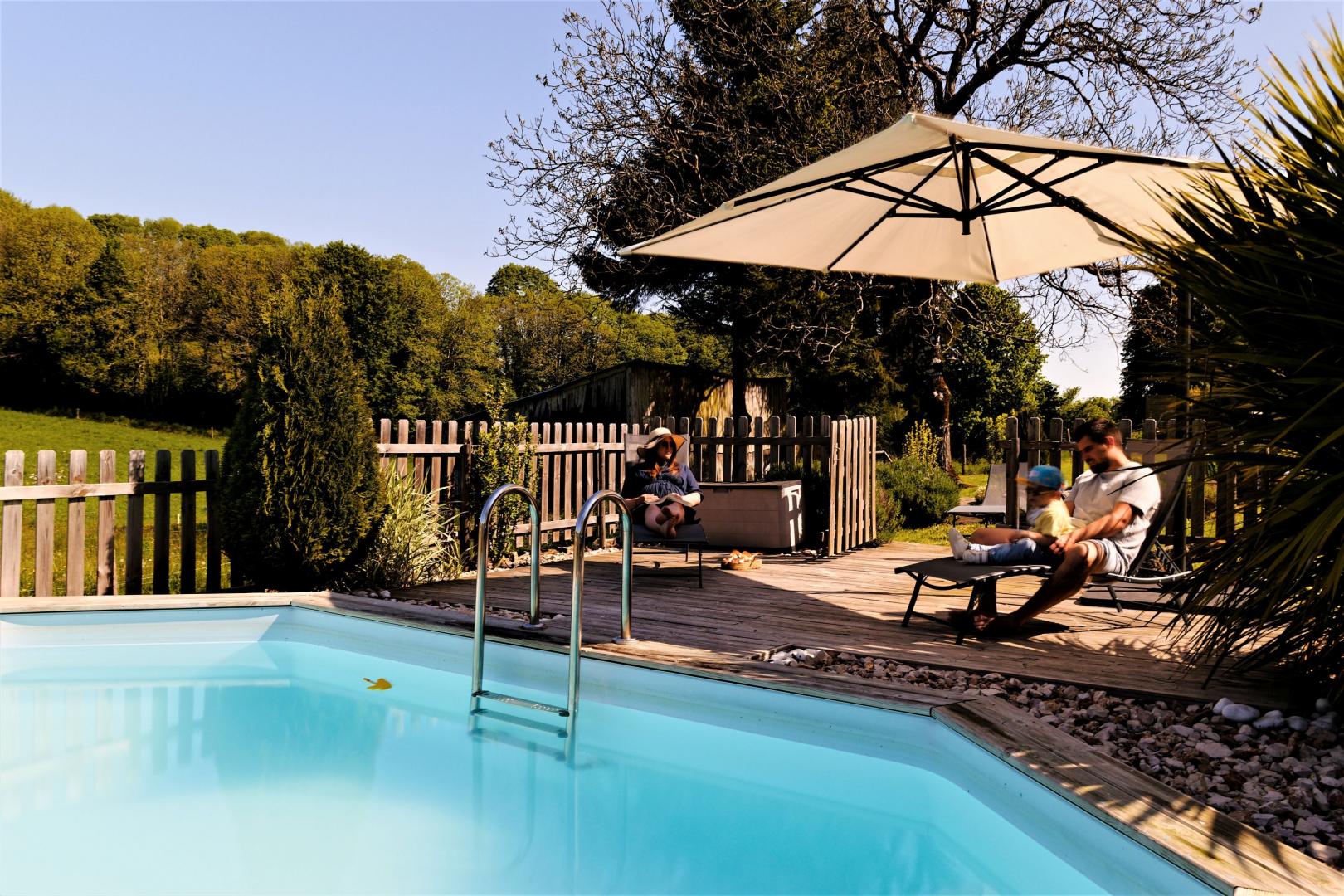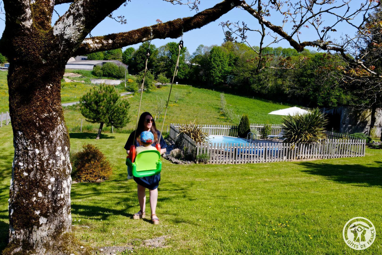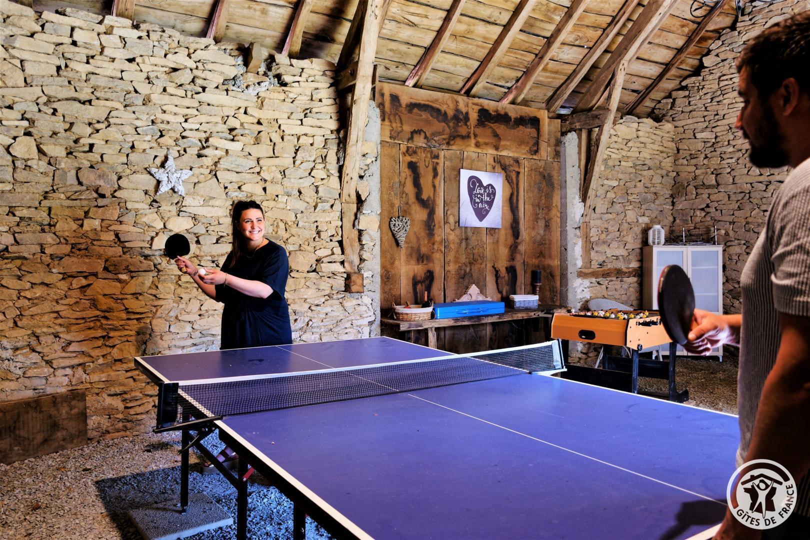 Living room with lounge area (sofa bed for 2 people) and kitchen area, 2 bedrooms upstairs (2 beds 140 X 190) with air conditioning, shower room. Come and relax in a charming house typical of Corrèze at Hameau des Noyers in Sainte Fortunade. This old restored farmhouse, combining old and contemporary, is located in the heart of the Corrèze countryside, a stone's throw from tourist sites. Able to accommodate 4 to 6 people, the cottage has private wooded grounds with an ornamental pond and a secure swimming pool (open from May to the end of September depending on the weather) with a wooden terrace. In the shade of the Walnut trees, let yourself be tempted by a game of pétanque with our bowling alley and a swing. In a dry stone barn, discover a 45 m² recreation room which offers a relaxation area with reading space, coloring for children, board games, music, various documentation on Corrèze, table football and ping-pong table and a pool table.