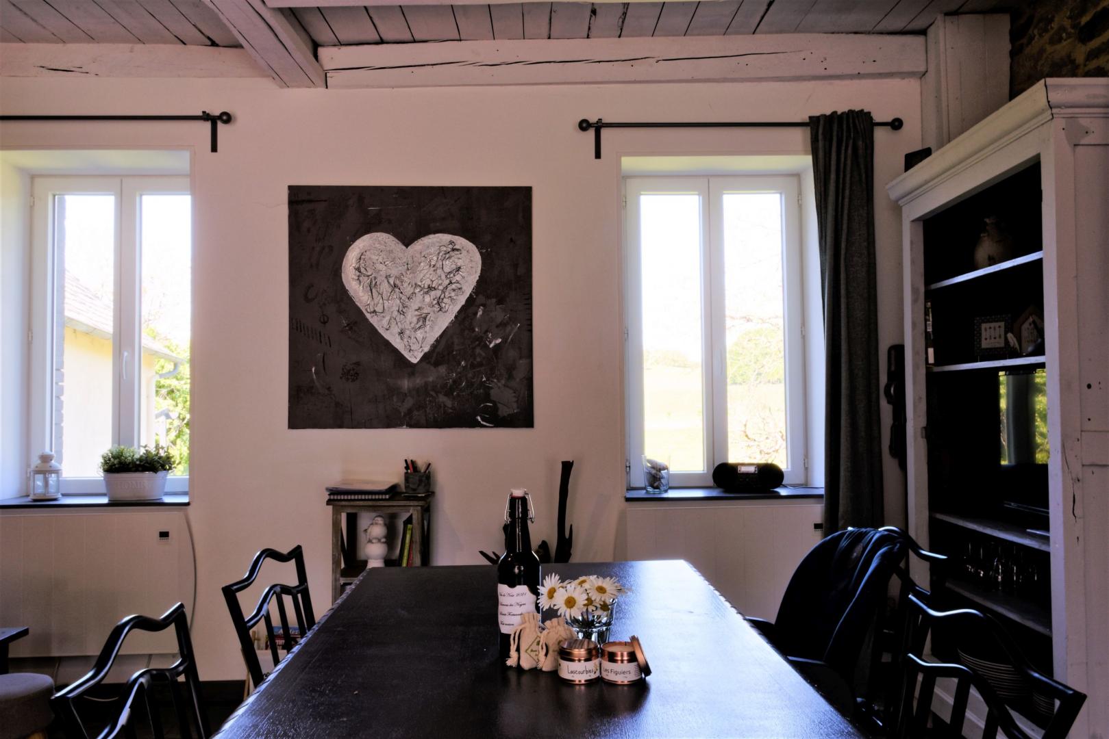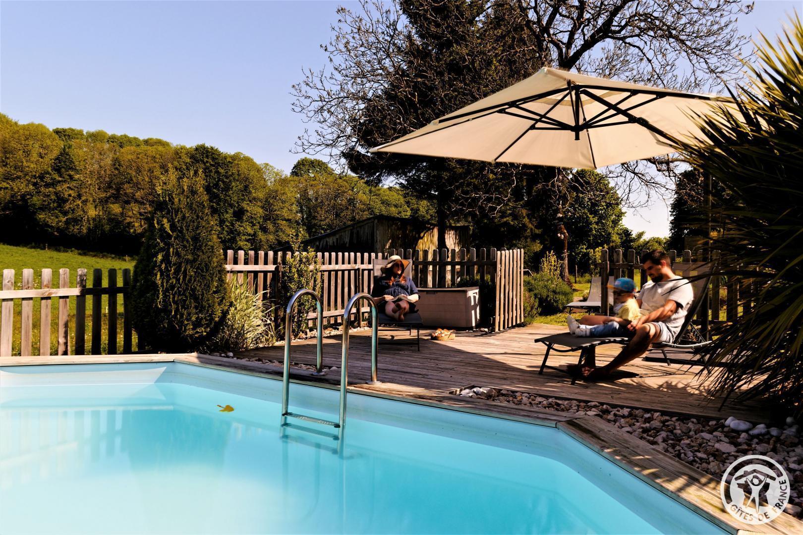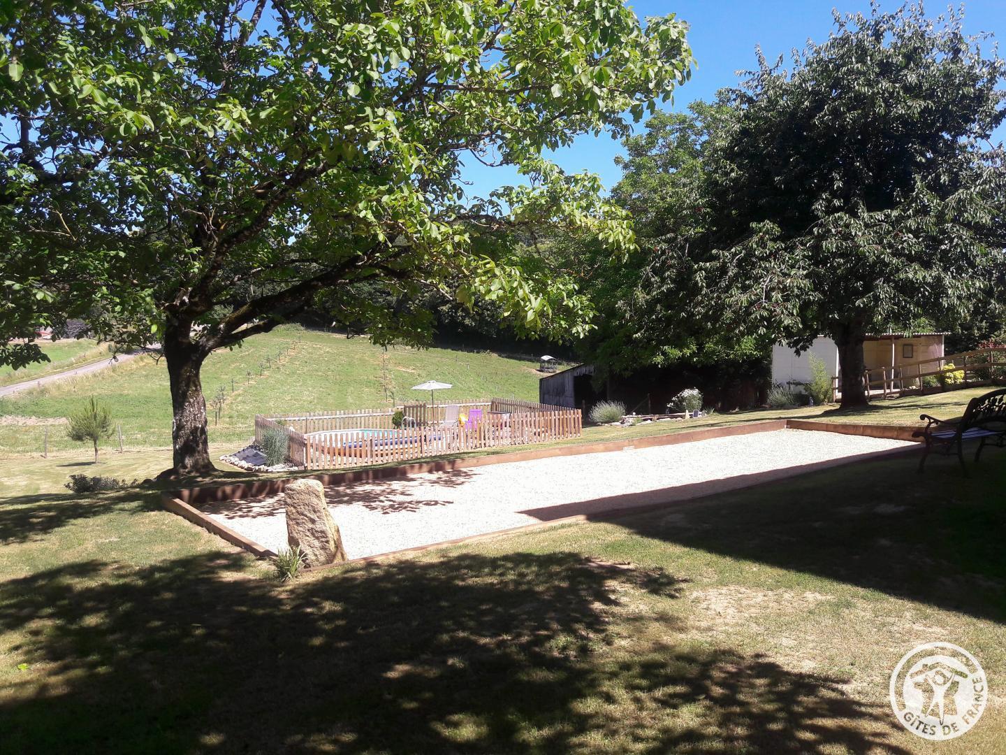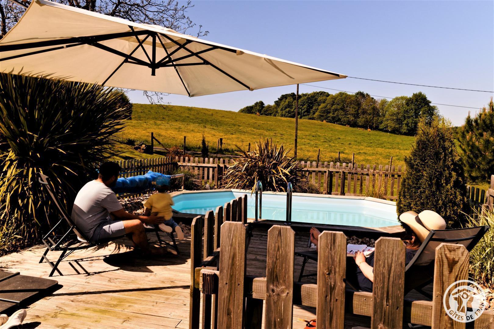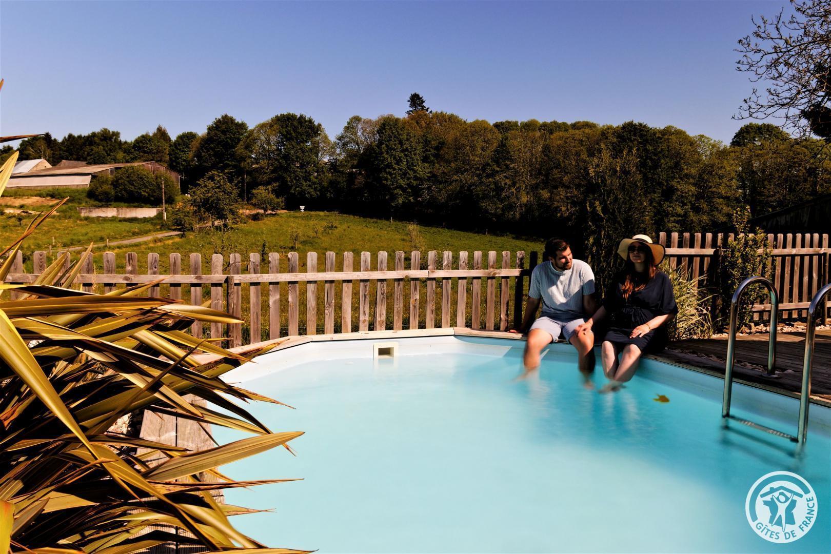 Living room with lounge area (sofa bed for 2 people) and kitchen area, 2 bedrooms upstairs (2 beds 140 X 190) with air conditioning, shower room. Come and relax in a charming house typical of Corrèze at Hameau des Noyers in Sainte Fortunade. This old restored farmhouse, combining old and contemporary, is located in the heart of the Corrèze countryside, a stone's throw from tourist sites. Able to accommodate 4 to 6 people, the cottage has private wooded grounds with an ornamental pond and a secure swimming pool (open from May to the end of September depending on the weather) with a wooden terrace. In the shade of the Walnut trees, let yourself be tempted by a game of pétanque with our bowling alley and a swing. In a dry stone barn, discover a 45 m² recreation room which offers a relaxation area with reading space, coloring for children, board games, music, various documentation on Corrèze, table football and ping-pong table and a pool table.