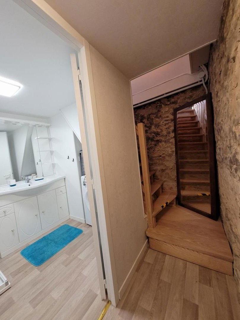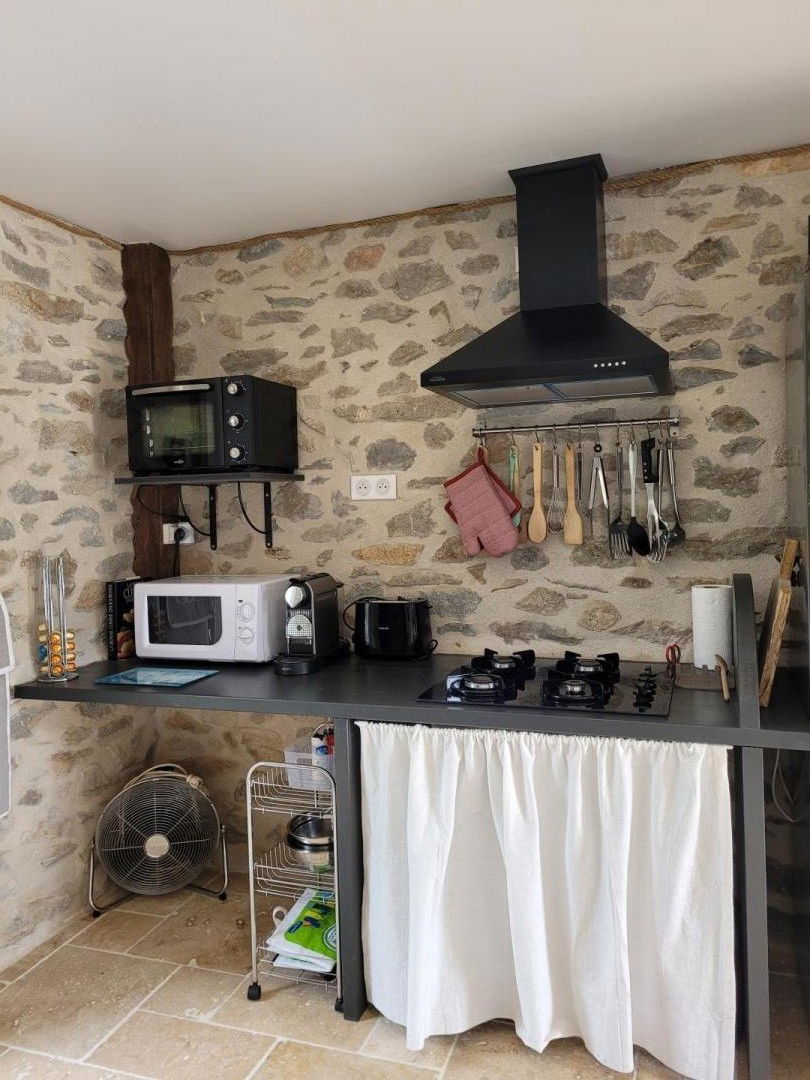 This old and charming 45m2 sheepfold, nicely renovated, is composed of: On the ground floor, an open living room/kitchen of 29m2 In this living room, there is a sofa bed that can accommodate an additional person.