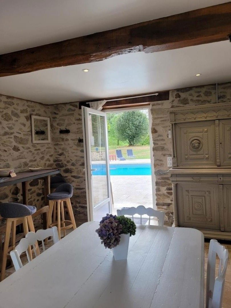 At the end of a small road leading to a hamlet of 3 houses, the cottage is located in a 2 hectare property whose main house, a little apart, is occupied year-round by the owner's parents. 9 km from Uzerche "the Pearl of Limousin", this old sheepfold transformed into an independent cottage, with its private swimming pool awaits you.