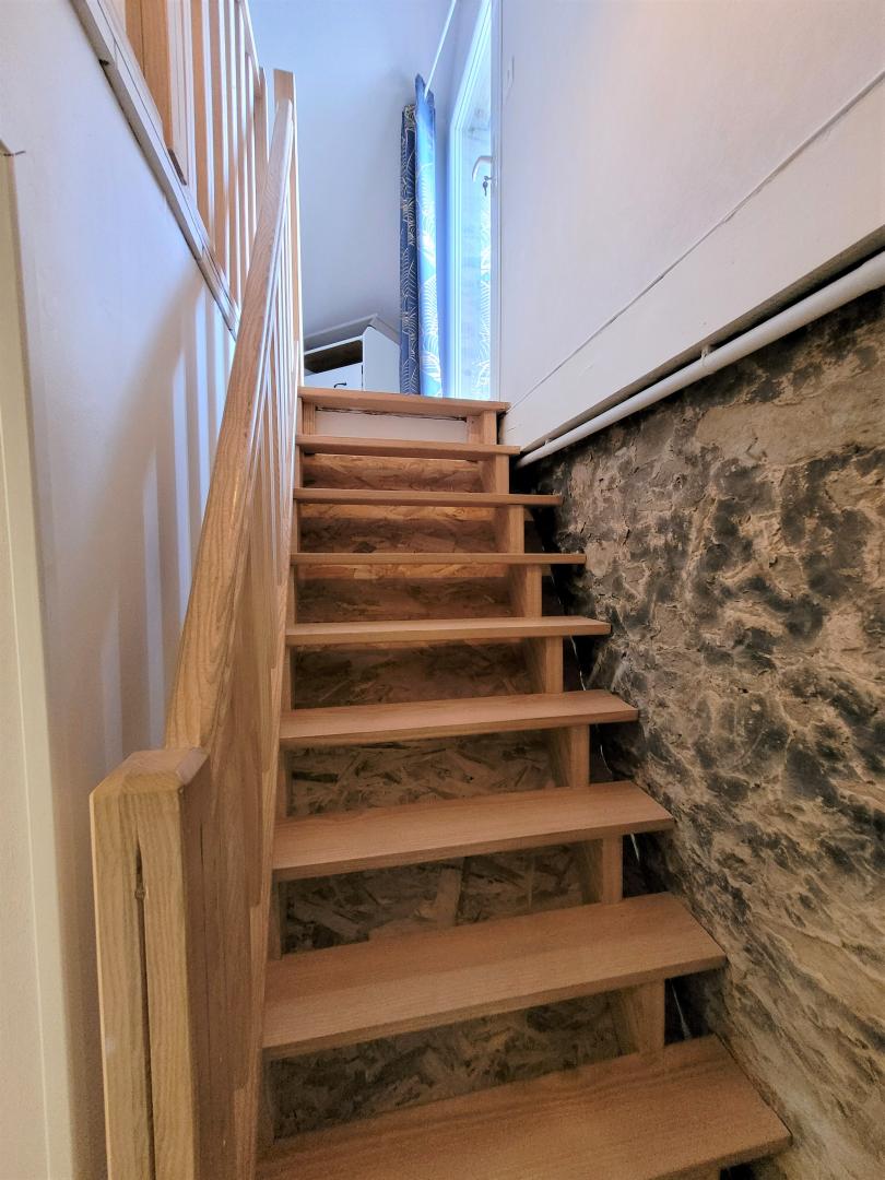 Upstairs you will find a comfortable bedroom under the eaves with a 160x200 bed. Slightly steep staircase".