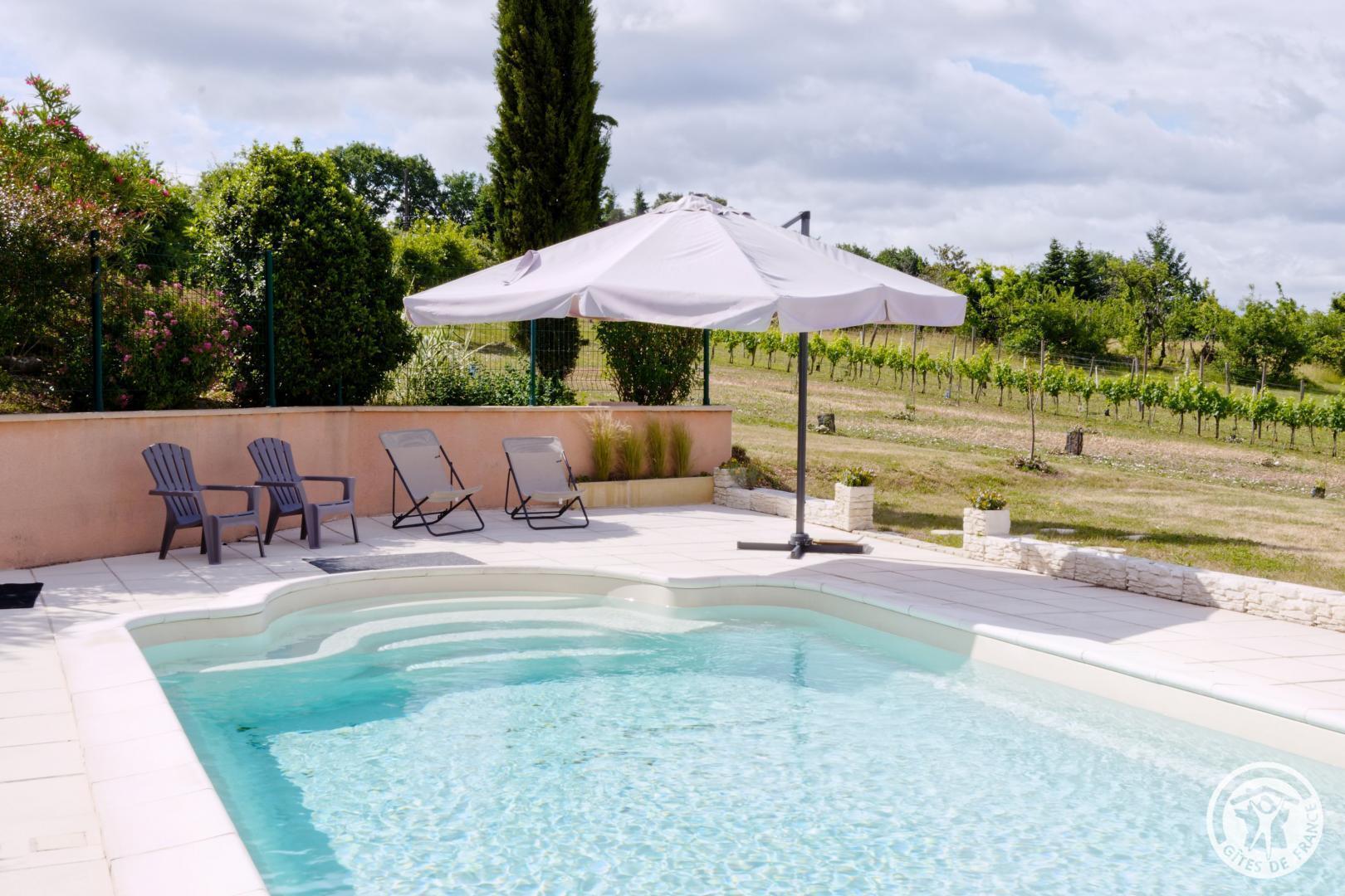 Gîte for 3 people with a living room with lounge and kitchen area of 30 m², possibility of accommodating 1 additional bed if necessary. Terrace of 20 m2, shaded in the afternoon. The house benefits from a vast plot of 1500 m² with games for children: slide, swings, sand ... and of course SWIMMING POOL at will. (9x4.2x1.5) from June to September. Swimming pool secured by alarm, shared with the owners. Gîte with reversible air conditioning. On the hillsides of Saint Julien Maumont, surrounded by truffle trees in production, Francine and Jean Claude welcome you to the countryside, in their domain "la vigne du causse", to experience a stay in the pure Corrézienne tradition. Their cottage will seduce you with its tranquility, personalized decoration, air conditioning and swimming pool available. They will listen to you so that your stay is as pleasant as possible. Ideal for relaxing, this privileged location is located near 3 of the most beautiful villages in France: Collonges la rouge, Turenne, Curemonte and less than 30 km from Brive la Gaillarde, Rocamadour, and the Padirac chasm. From this cottage, you will have a panoramic view of the nearby Martel causse where you will discover pleasant trails: on foot, by bike, by motorbike, or on horseback. .. Other visits: Sarlat la caneda, Martel, Carennac, Beaulieu sur dordogne, Loubressac, Autoire, Argentat, les Caves of Lascaux, Lacave, Lafage...