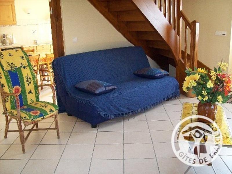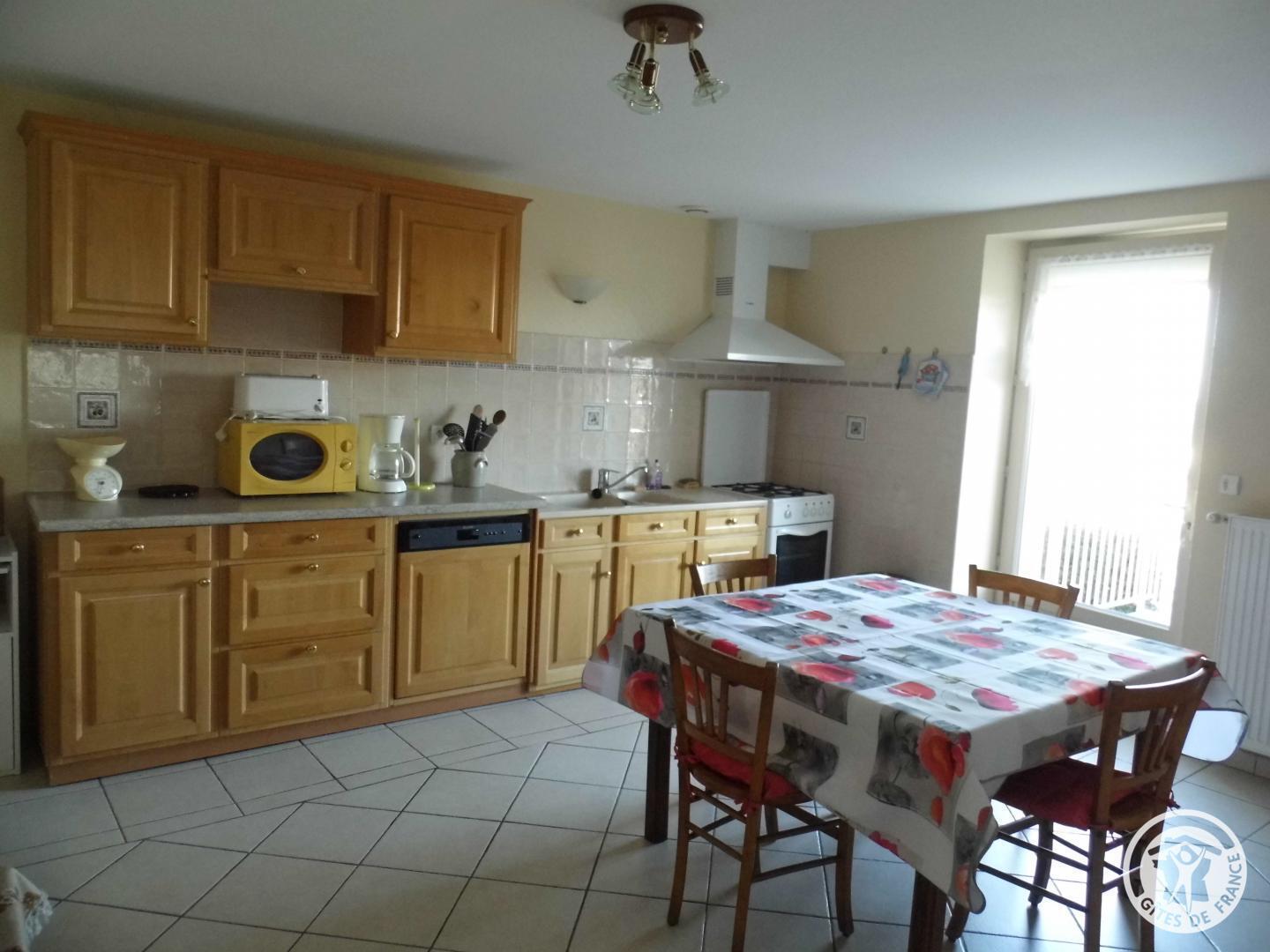 Semi-detached renovated house, not overlooked, quiet, very nice view of the village and its surroundings. Upstairs: 3 bedrooms (3 double beds), a bathroom (shower) and 1 separate toilet. Ground floor: kitchen, microwave, fridge-freezer, living room, 1 separate toilet in the laundry room. Gas central heating, unfenced land of 500 m².