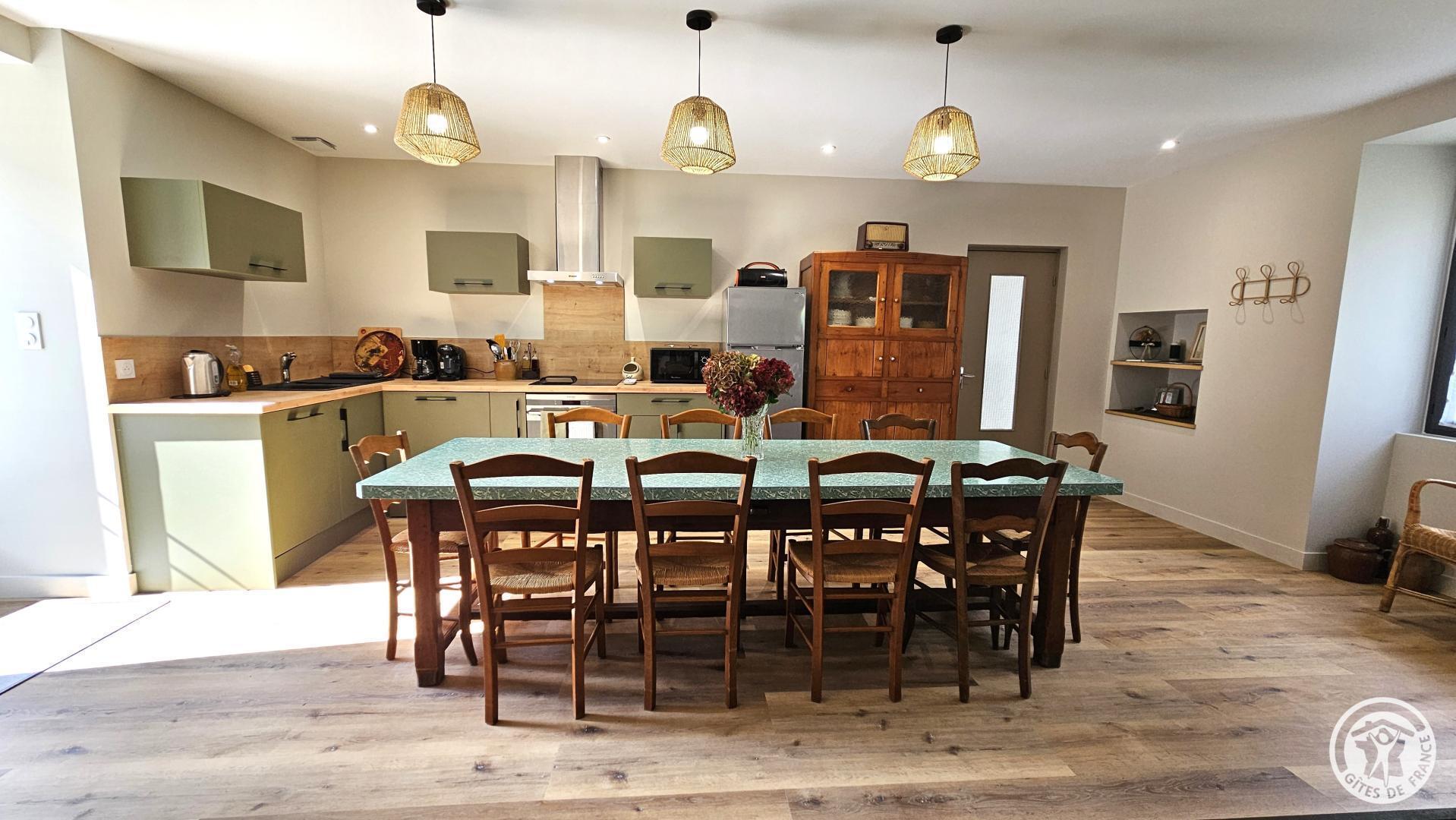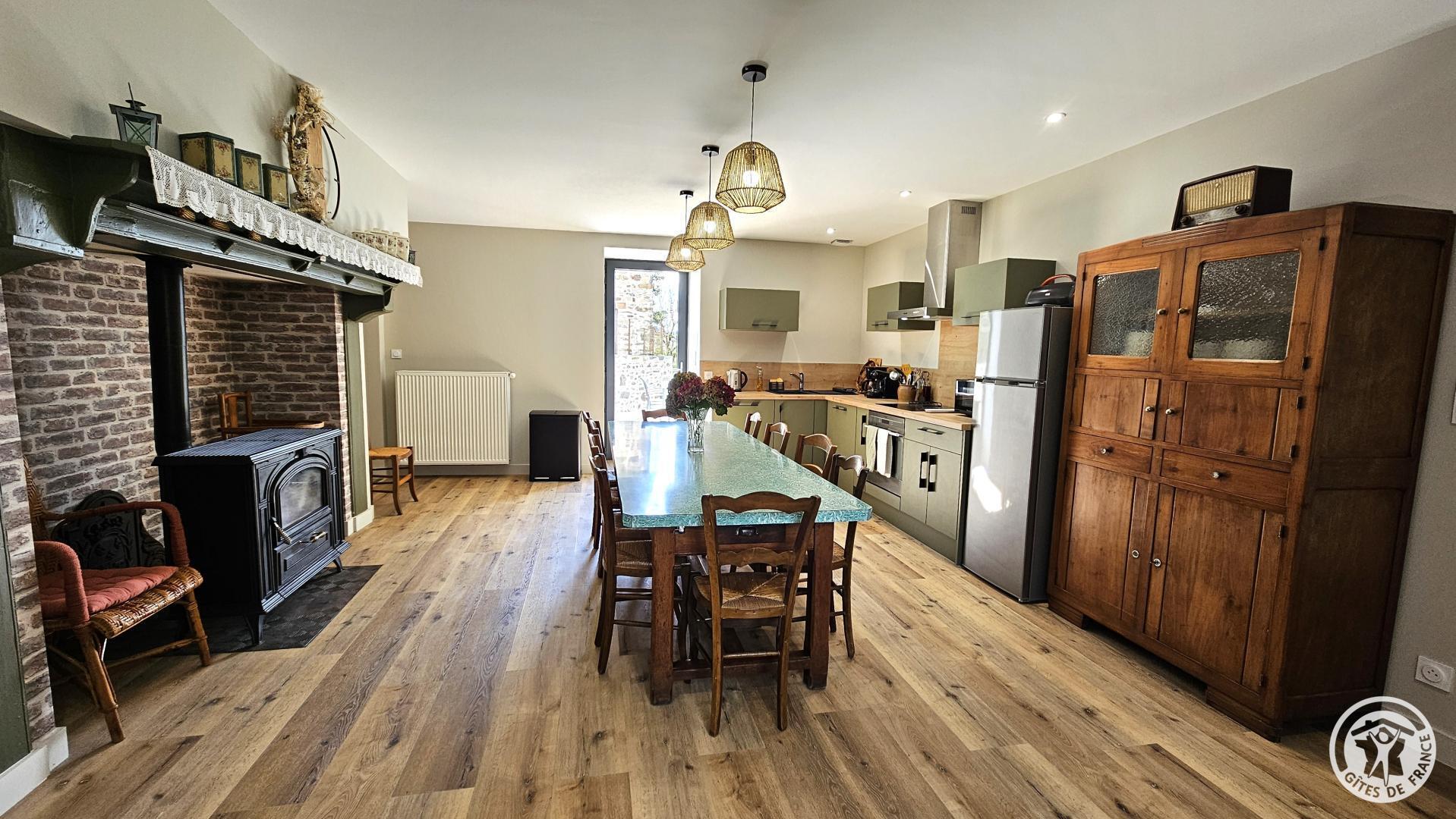 This cottage is located equidistant between Limoges and Brive, easily accessible via the A20 motorway. At the entrance, a cozy corner is fitted out with a bench. On the ground floor: a fully equipped kitchen/living room, adjoining a warm living room with sofas, a coffee table and a large flat-screen TV. The kitchen opens onto a large terrace, decorated with a garden table and chairs. The sleeping area includes a bathroom with a walk-in shower, equipped with a wall seat, as well as a shared toilet that completes this functional space. Three bedrooms are also present: the has a 160 cm bed, the second has a 140 cm bed, and the third has two 90 cm beds. Upstairs, two other bedrooms are available: one has a 160 cm bed and a 90 cm bed, while the other also has two 90 cm beds. A bathroom, equipped with a shower and a toilet, is also available. Nestled in a farmhouse comprising a barn, a pigsty and a shed, this independent house has been completely renovated with great taste. It is located in a small, peaceful hamlet. You will appreciate its beautiful terrace, which opens onto an enclosed garden, perfect for relaxing and enjoying the good life. In addition, a neighboring second home adds to the appeal of this friendly place. And if you feel like it, you will have the opportunity to explore the farm with a guide, who will allow you to observe the cows, pigs, sheep, as well as the farmyard animals such as hens, guinea fowl, turkeys and rabbits. You can also take a leisurely stroll on the trails or in the forest in search of mushrooms and other treasures of nature.