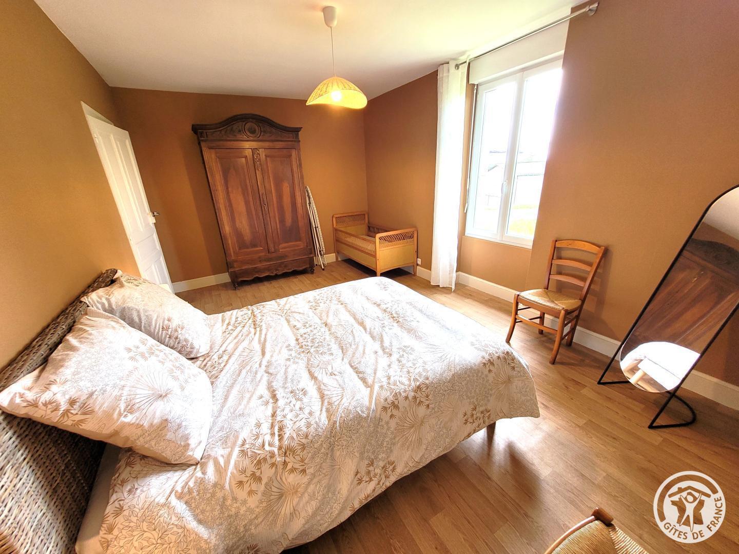 A bedroom with a 140x190 double bed and a baby bed.