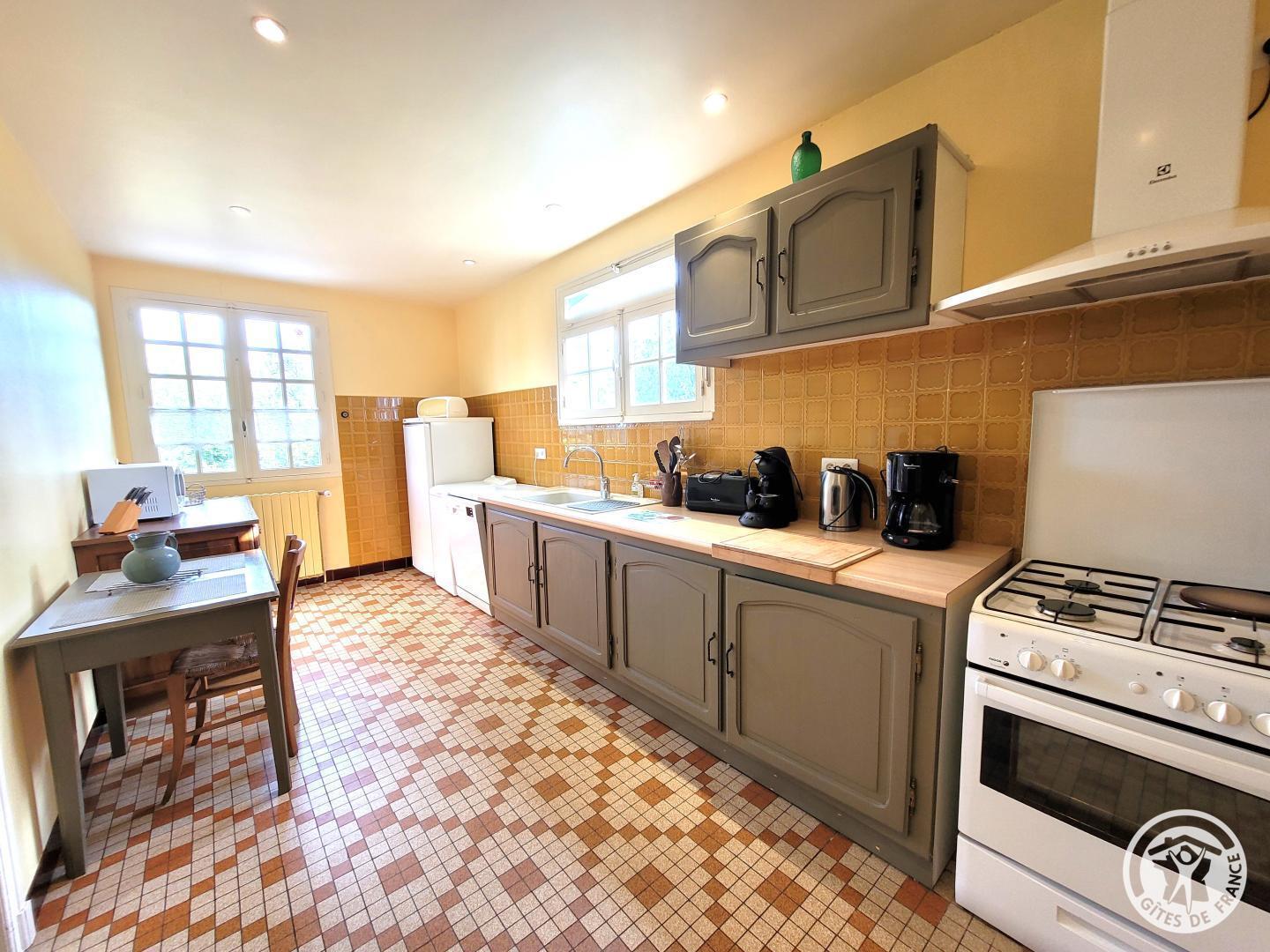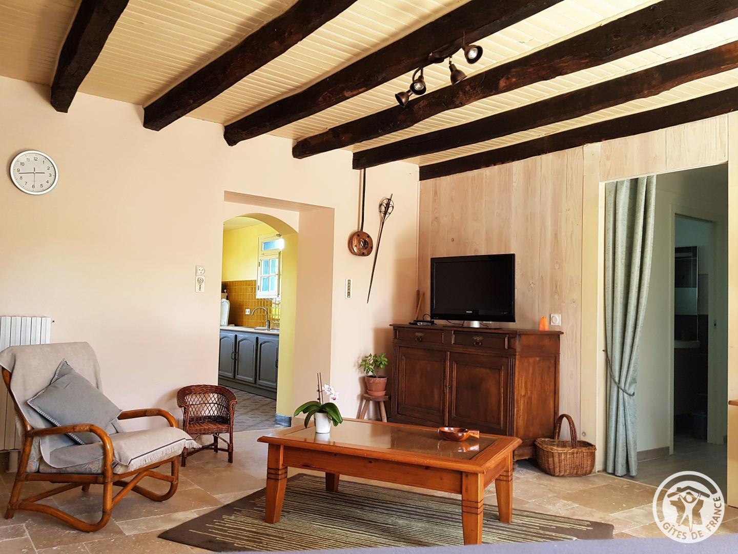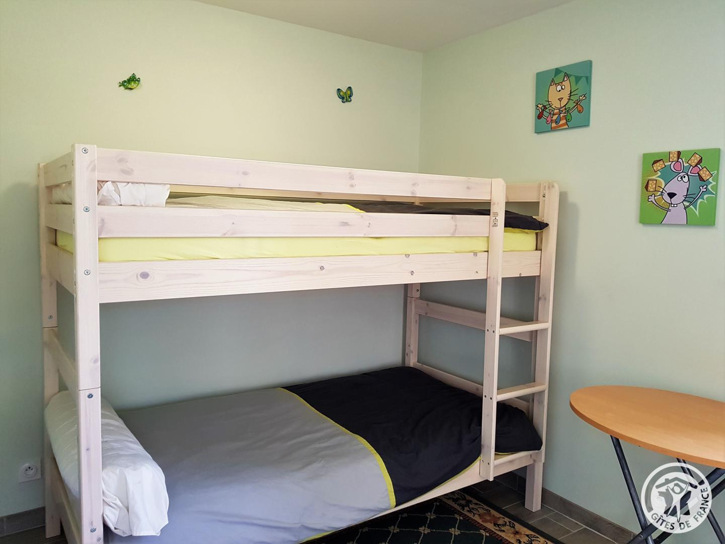 On the ground floor: A comfortable living room, a living room opening onto the terrace and a fully equipped kitchen, a shower room, a separate toilet and a bedroom with a 140cm bed and 1 bunk bed of two 90cm. Upstairs, a second bedroom with a 140cm bed and a separate toilet. A room is available for storing bicycles or other equipment.