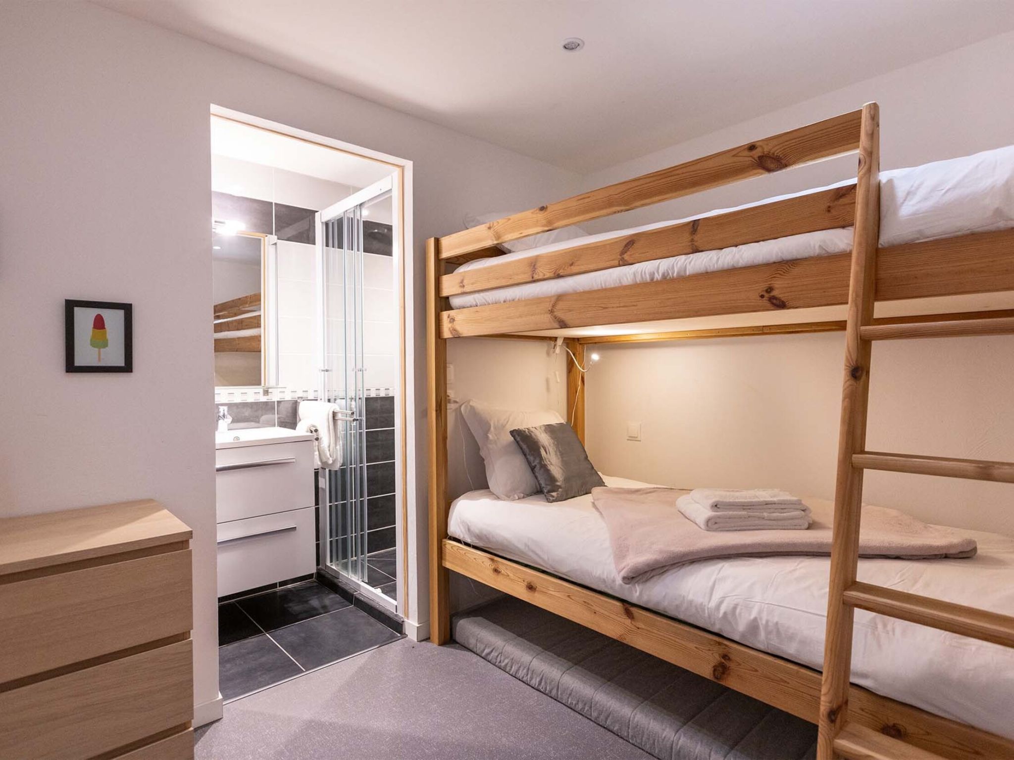 "Ponturin", 5-room chalet 111 m2. Spacious, comfortable furnishings: large living/dining room 31 m2 with TV (flat screen). Exit to the balcony. 1 room with 1 french bed (1 x 160 cm, length 200 cm), shower/WC. Kitchen (oven, dishwasher, toaster, microwave, freezer, electric coffee machine, Capsules for coffee machine (Nespresso)). Upper floor: 2 rooms, each room with 1 french bed (1 x 160 cm, length 200 cm), shower/WC. 1 room with 1 x 2 bunk beds (2 x 90 cm, length 200 cm), shower/WC. Large balcony. View of the mountains. Facilities: washing machine, dryer, iron, hair dryer. Internet (WiFi, free). Parking.