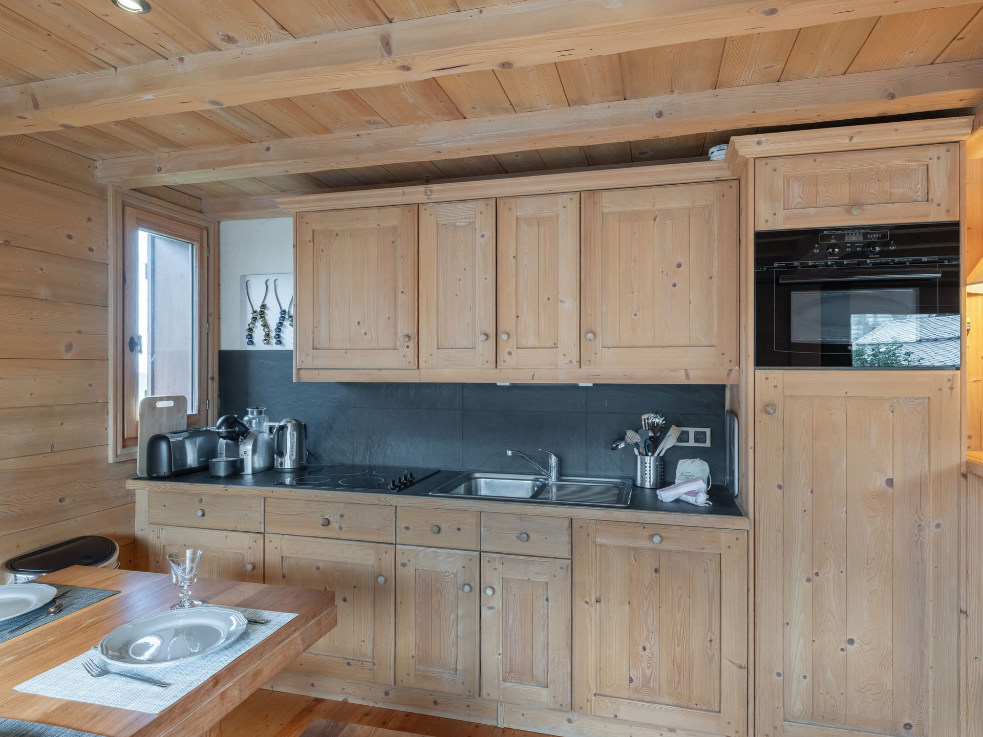 - Fiited open kitchen: fridge, combi oven, dishwasher, ceramic hob, kettle, toaster, coffee machine and Nespresso