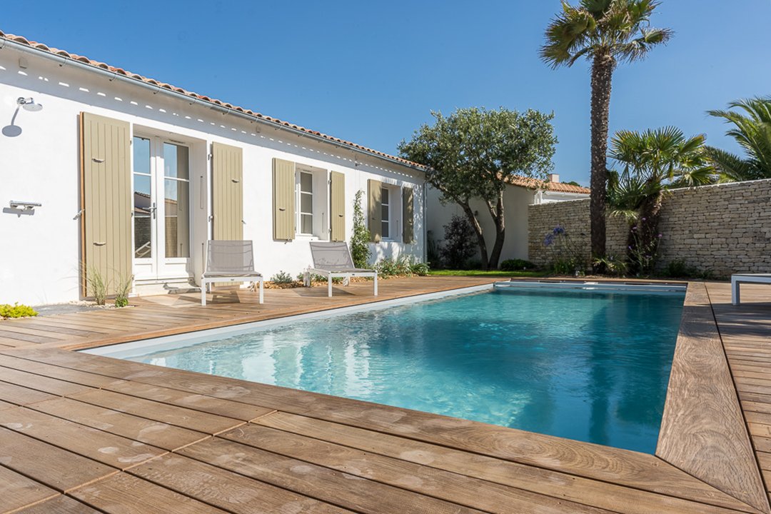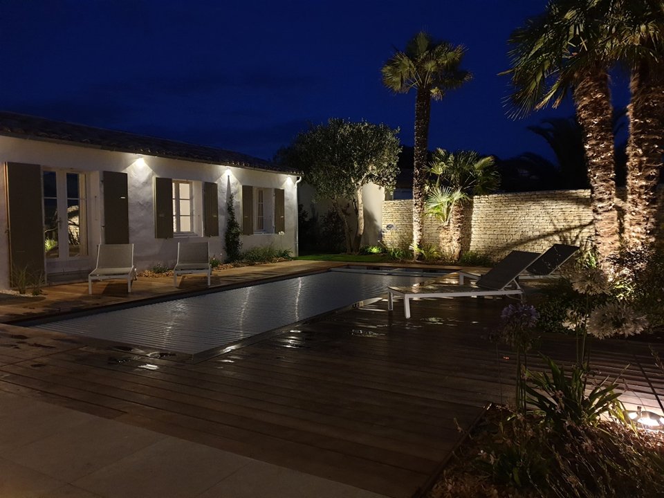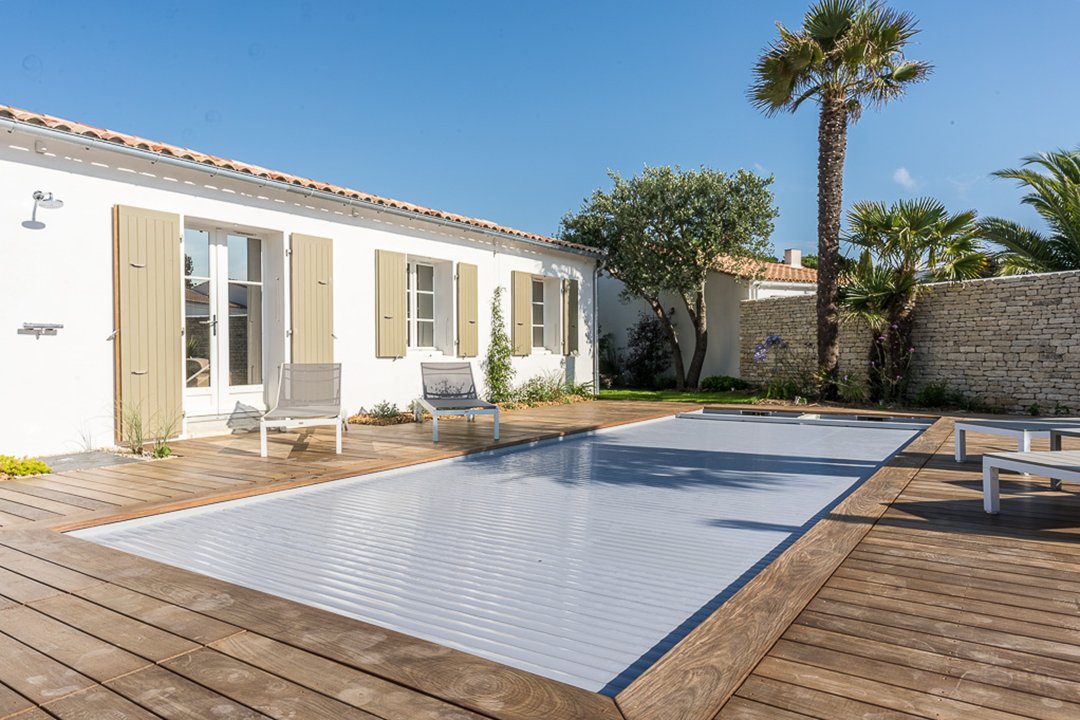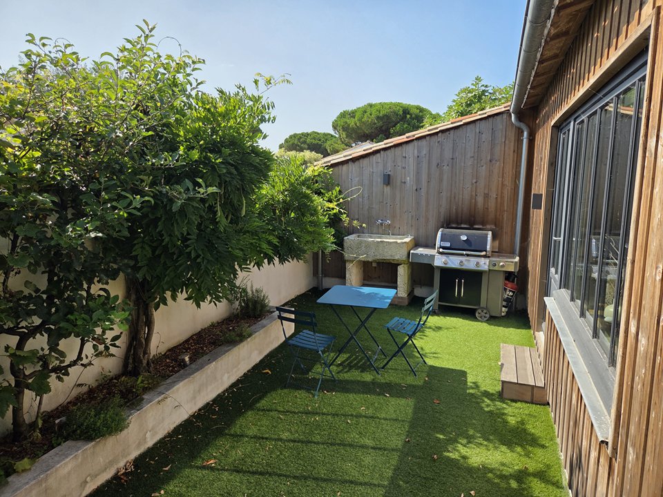 The outside, oriented south, has a wooded garden and a terrace with table and chairs for 6 people, surrounding the 8 x 4 swimming pool, secured by an electric cover.