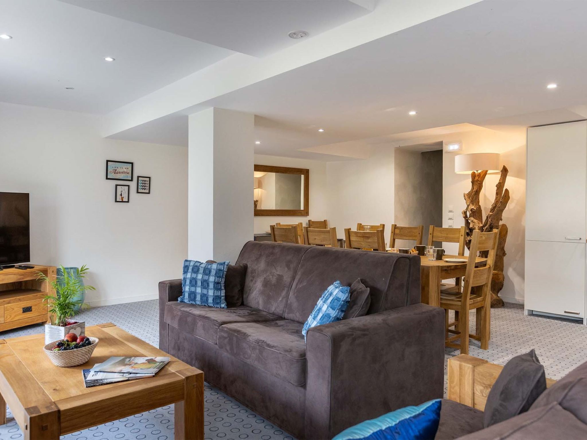 "Montchavin", 4-room apartment 130 m2 on 2 levels. Spacious, comfortable furnishings: large living/dining room 58 m2 with 1 double sofabed and TV (flat screen). Exit to the terrace. Kitchen (oven, dishwasher, toaster, microwave, freezer, electric coffee machine, Capsules for coffee machine (Nespresso)). Upper floor: 2 rooms, each room with 1 french bed (1 x 160 cm, length 200 cm), shower/WC. 1 room with 2 x 2 bunk beds (4 x 90 cm, length 200 cm), shower/WC. Terrace. View of the mountains. Facilities: washing machine, dryer, iron, hair dryer. Internet (WiFi, free). Parking.