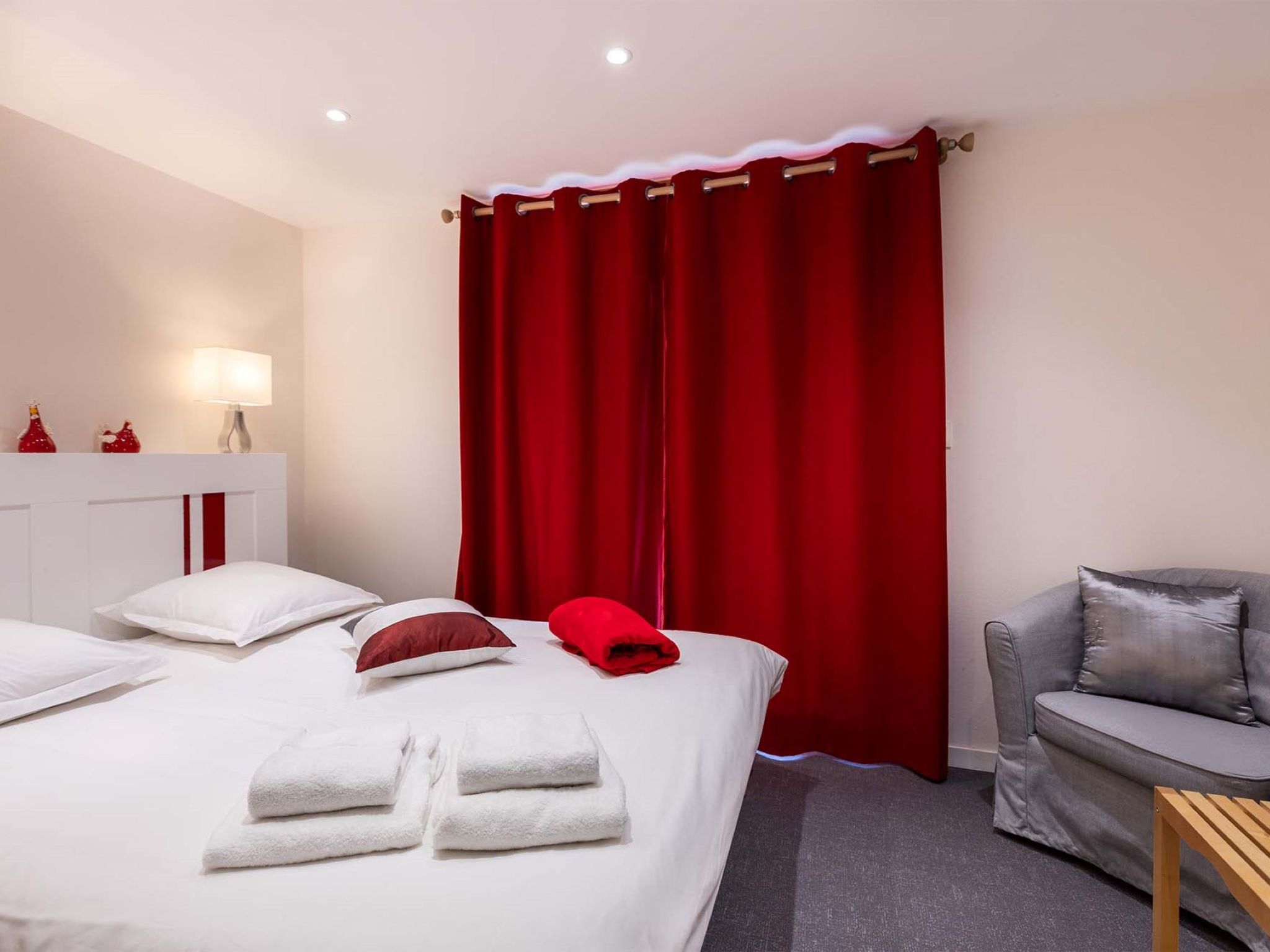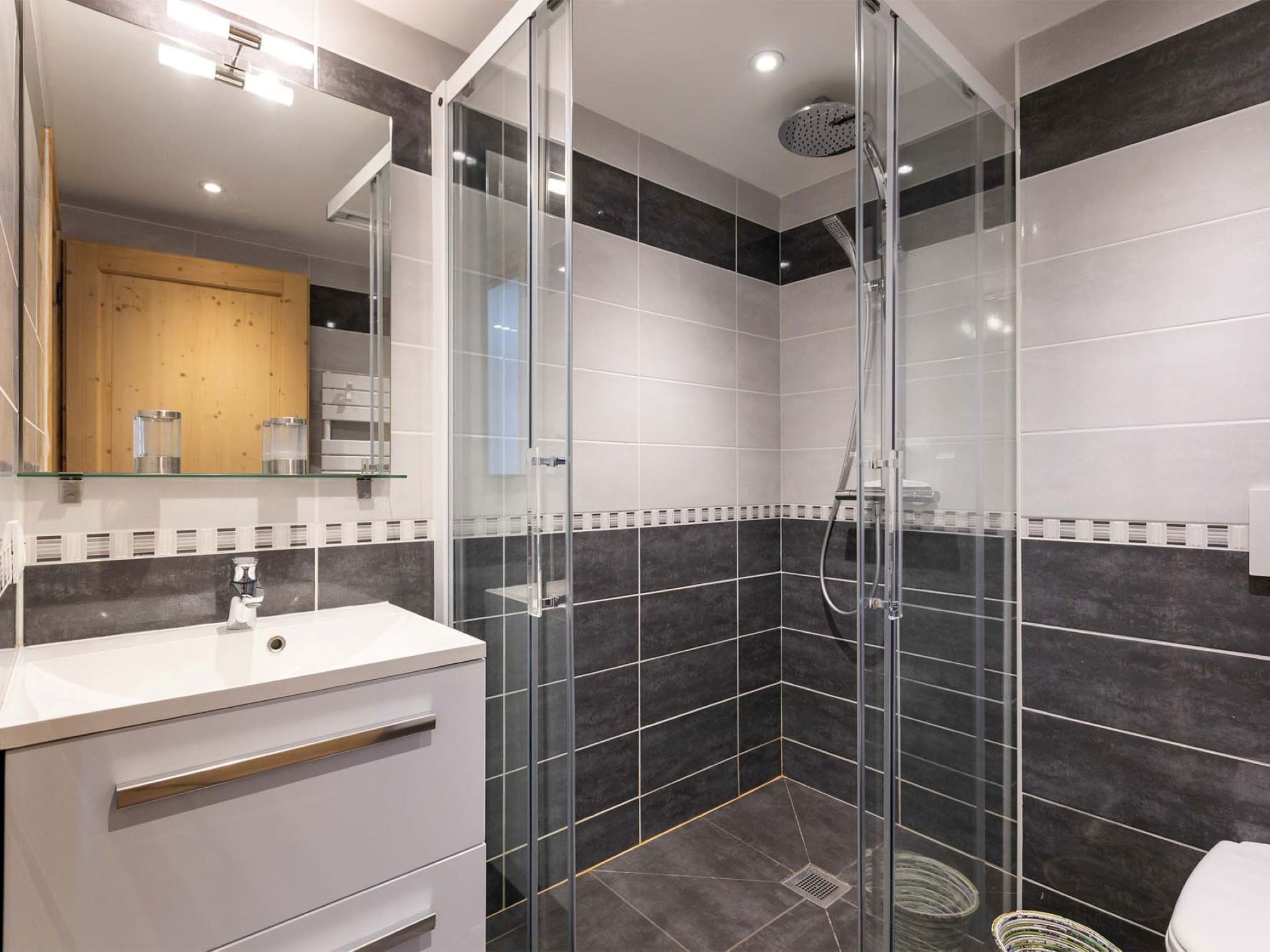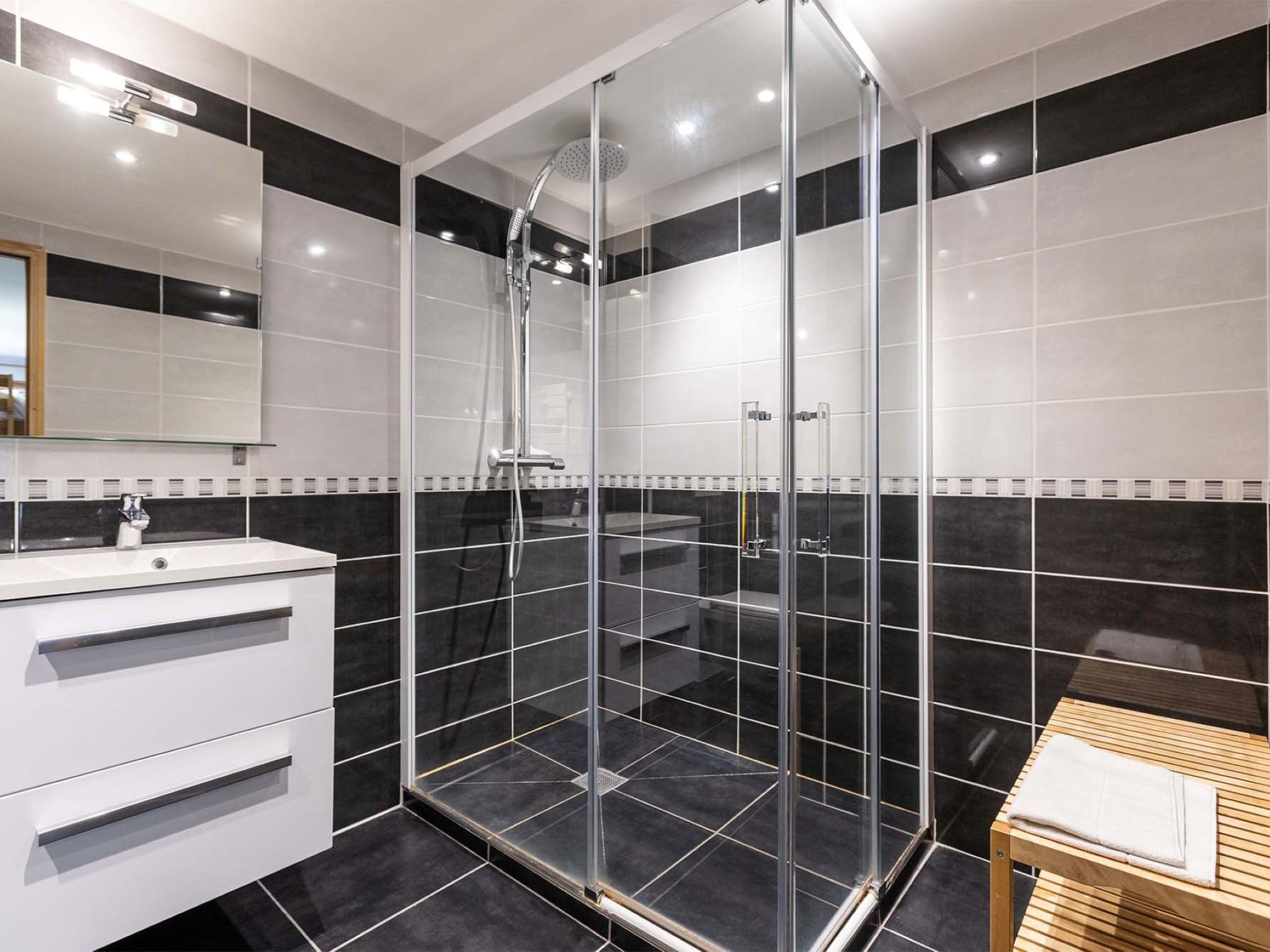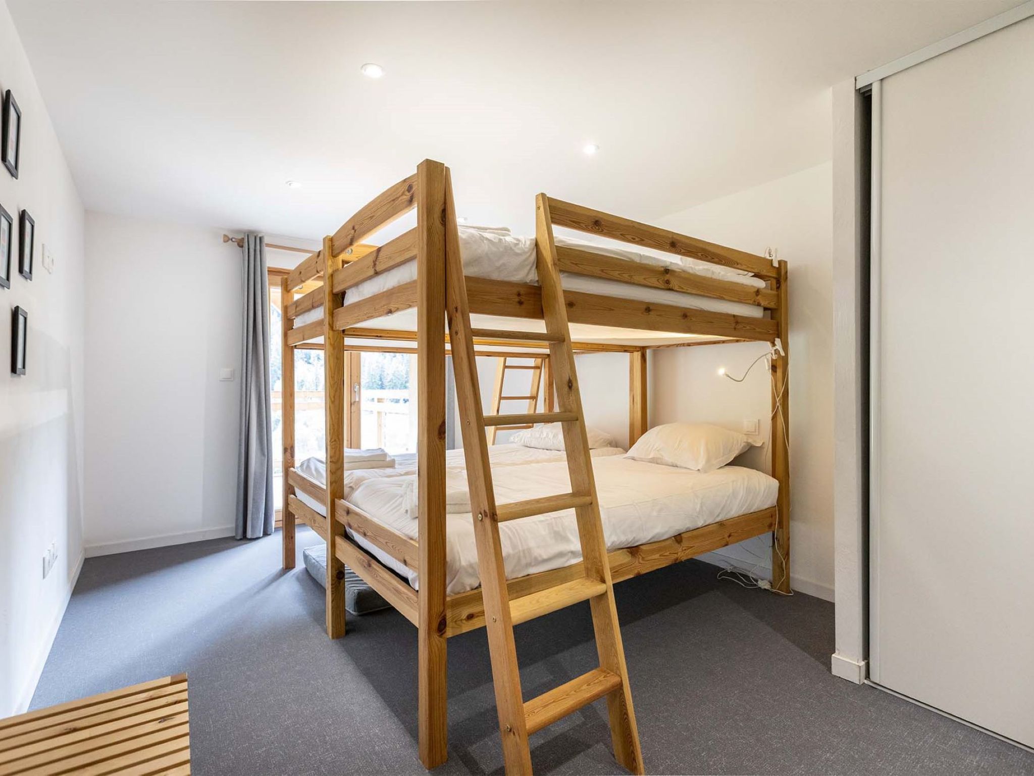 "Nancroix", 5-room apartment 120 m2 on 2 levels. Spacious, comfortable furnishings: large living/dining room 43 m2 with 1 double sofabed and TV (flat screen). Exit to the terrace. Open gallery with sloping ceilings with 1 double sofabed. 1 room with 1 french bed (1 x 160 cm, length 200 cm), shower/WC. Kitchen (oven, dishwasher, toaster, microwave, freezer, electric coffee machine, Capsules for coffee machine (Nespresso)). Upper floor: 2 rooms, each room with 1 french bed (1 x 160 cm, length 200 cm), shower/WC. 1 room with 2 x 2 bunk beds (4 x 90 cm, length 200 cm), shower/WC. 2 terraces. View of the mountains. Facilities: washing machine, dryer, iron, hair dryer. Internet (WiFi, free). Parking.