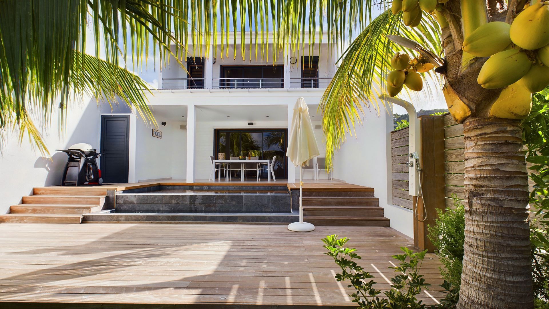The villa in Saint Barthélemy has 3 bedrooms and capacity for 6 people.