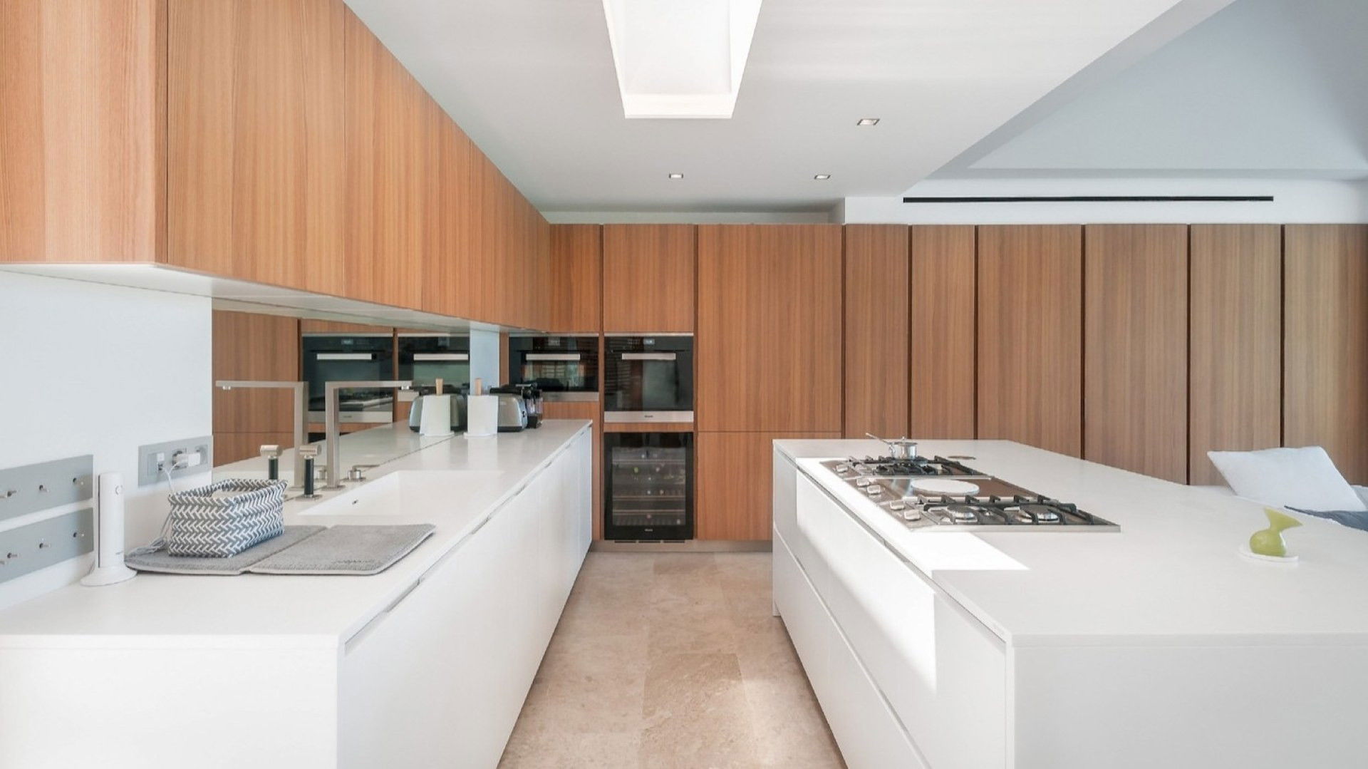 The open plan kitchen, is equipped with refrigerator, microwave, oven, freezer, dishwasher, dishes/cutlery, kitchen utensils, coffee machine, toaster, kettle and juicer.