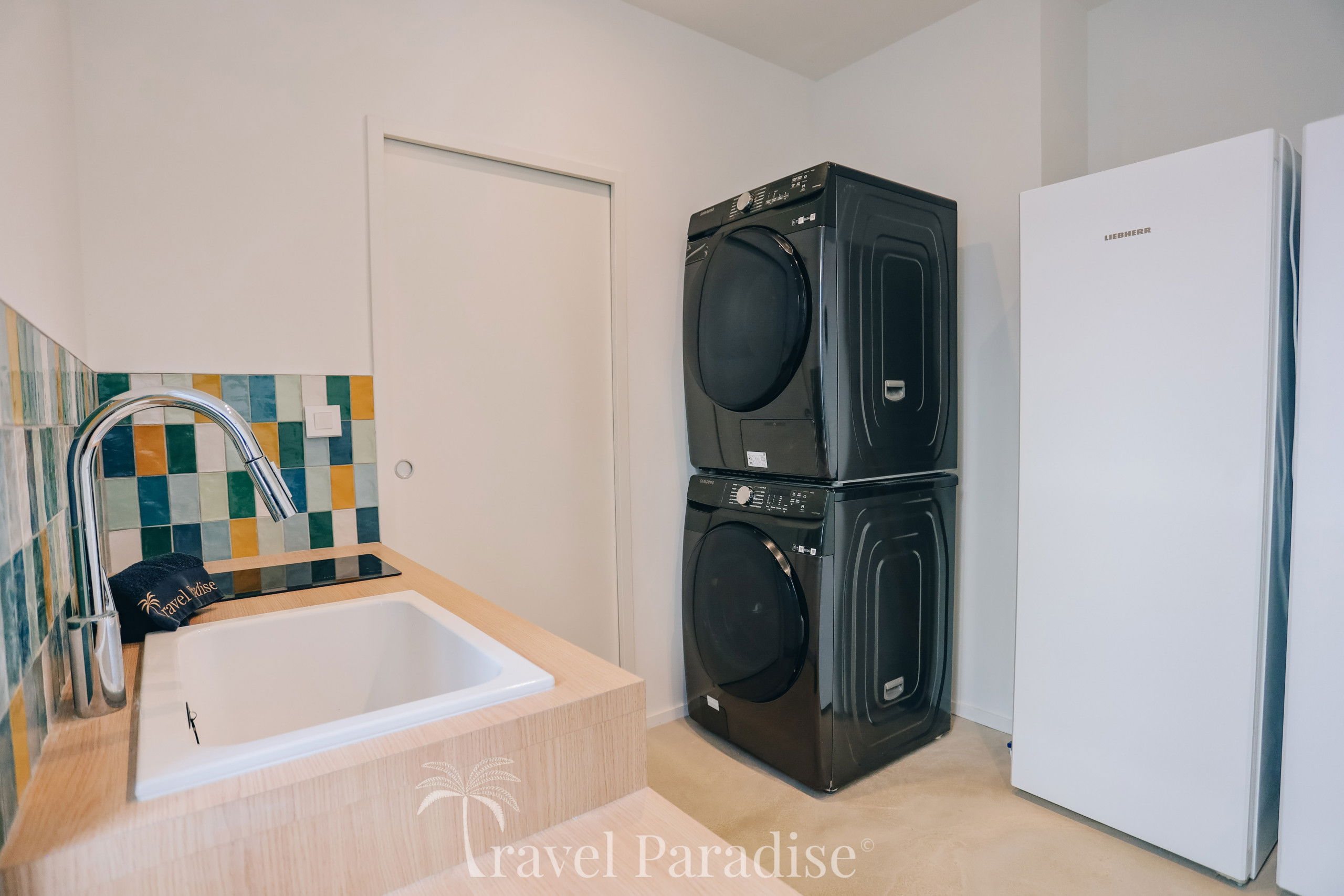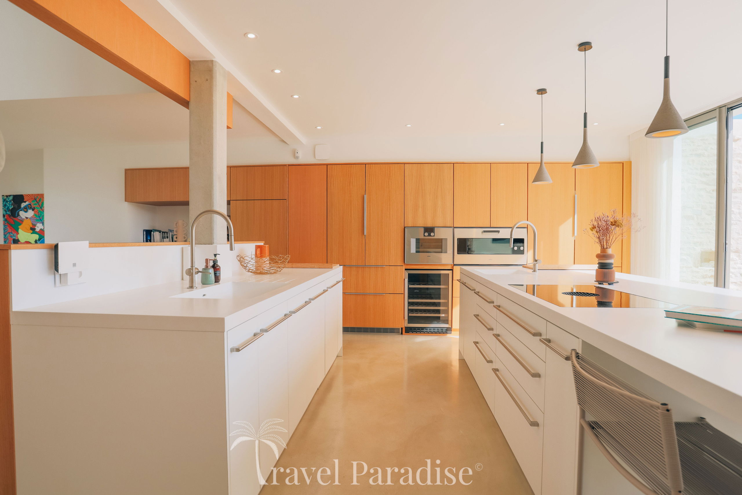 With its 7 spacious bedrooms, Villa Saint-Exupéry can comfortably accommodate up to 12 people, ideal for vacations with family and friends alike. The interior decor combines artistic touches and modernity to create a warm, refined atmosphere. You'll find a spacious living room, a large convivial dining room, and a fully-equipped open-plan kitchen to satisfy all your culinary desires.