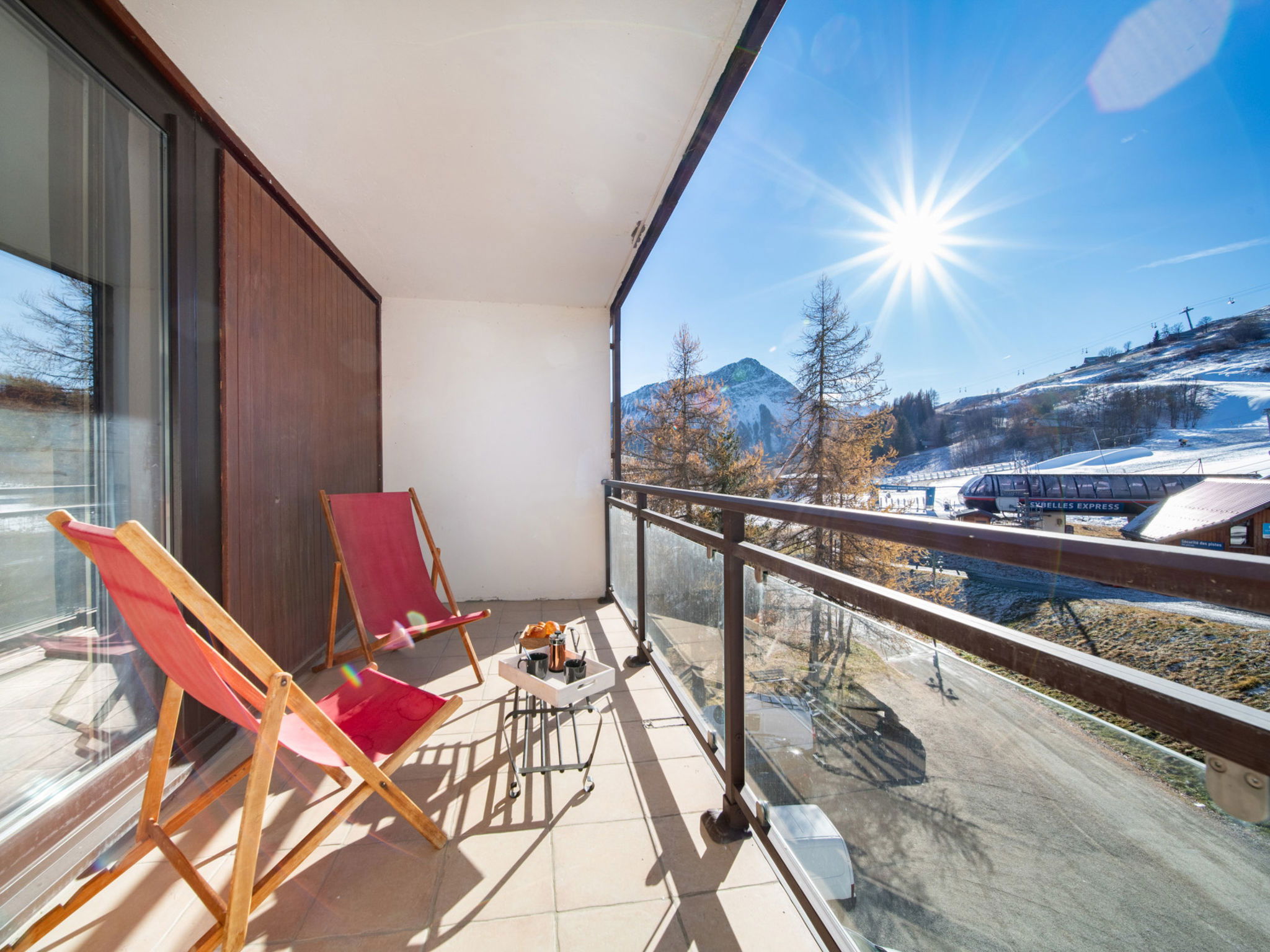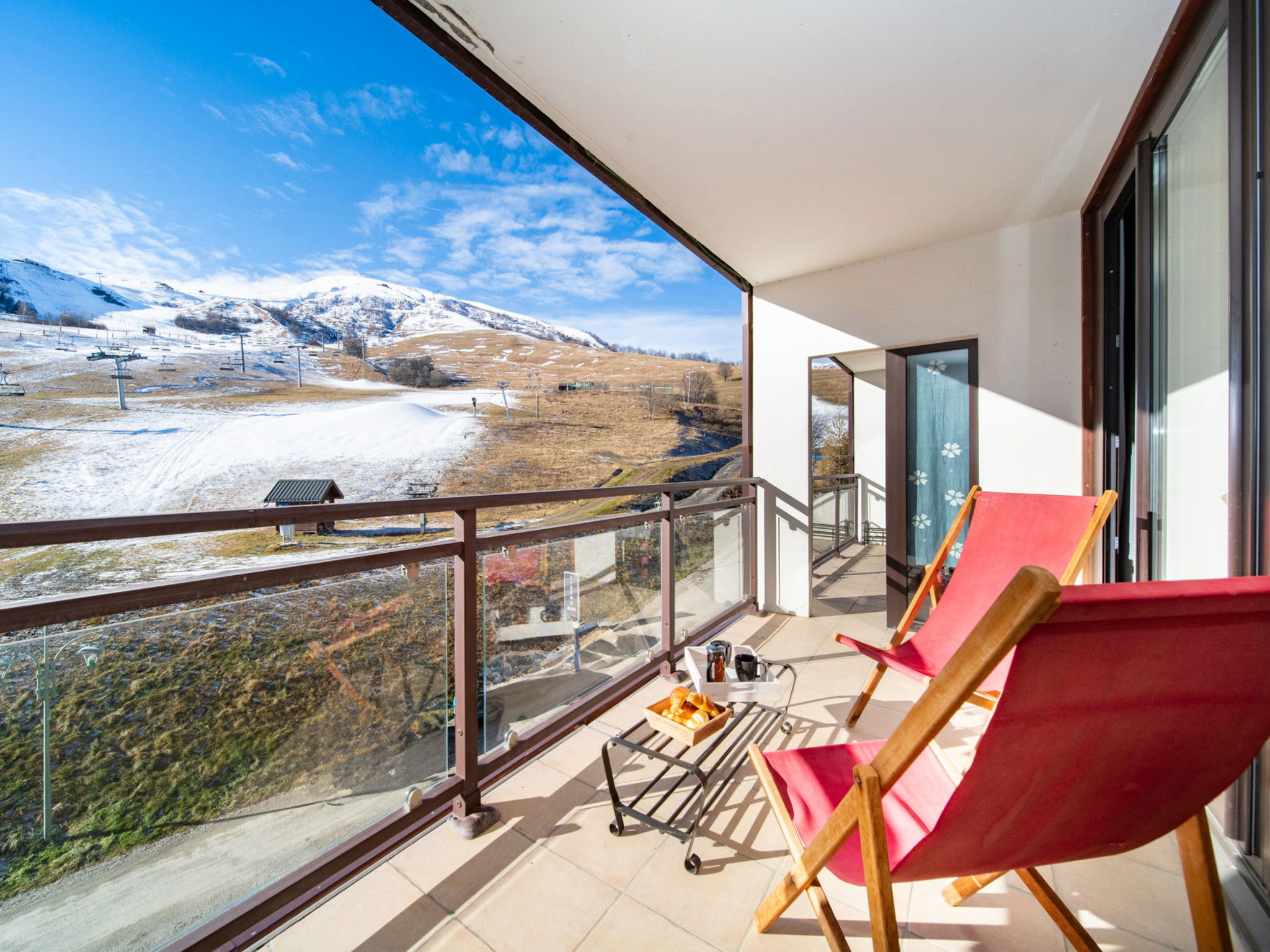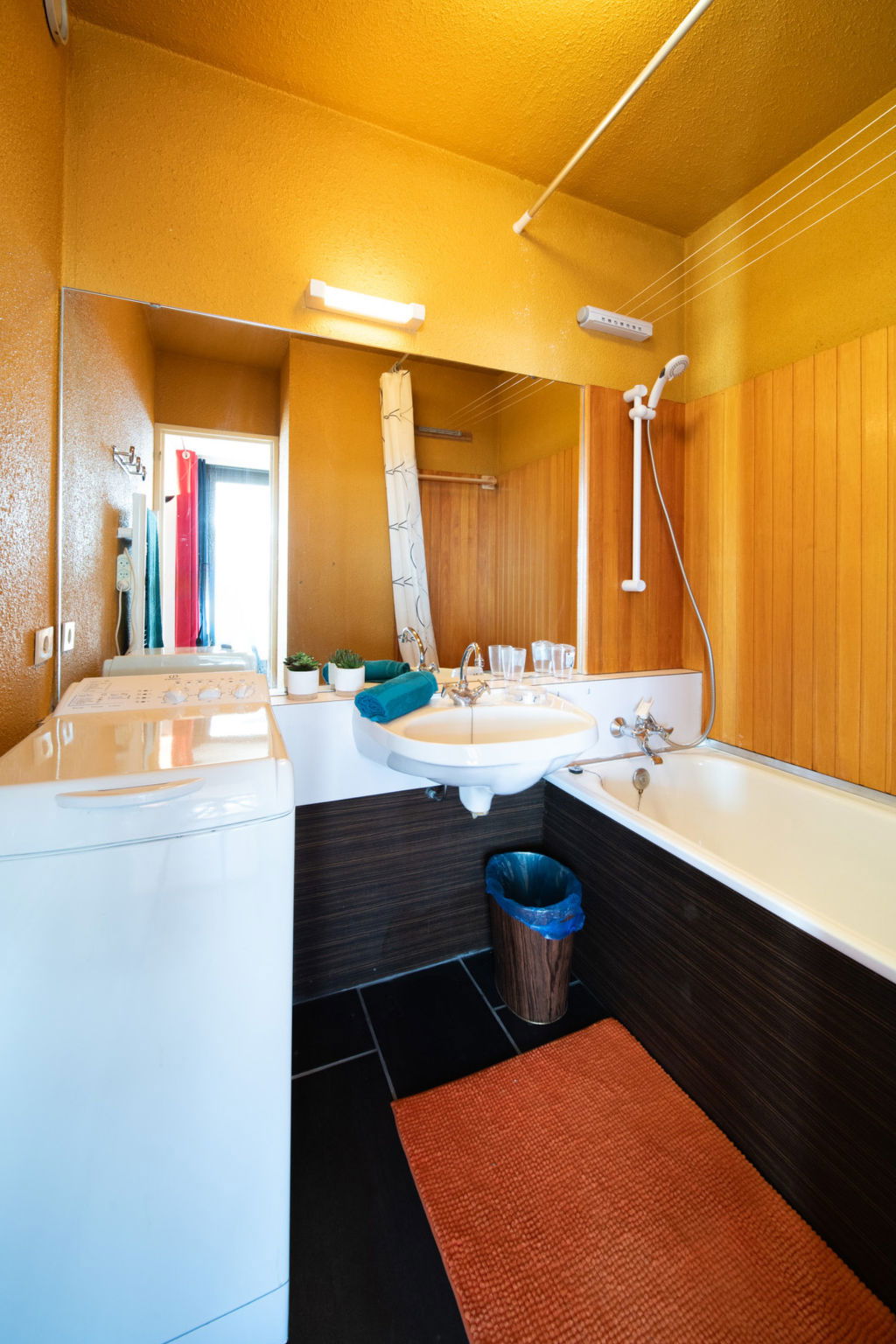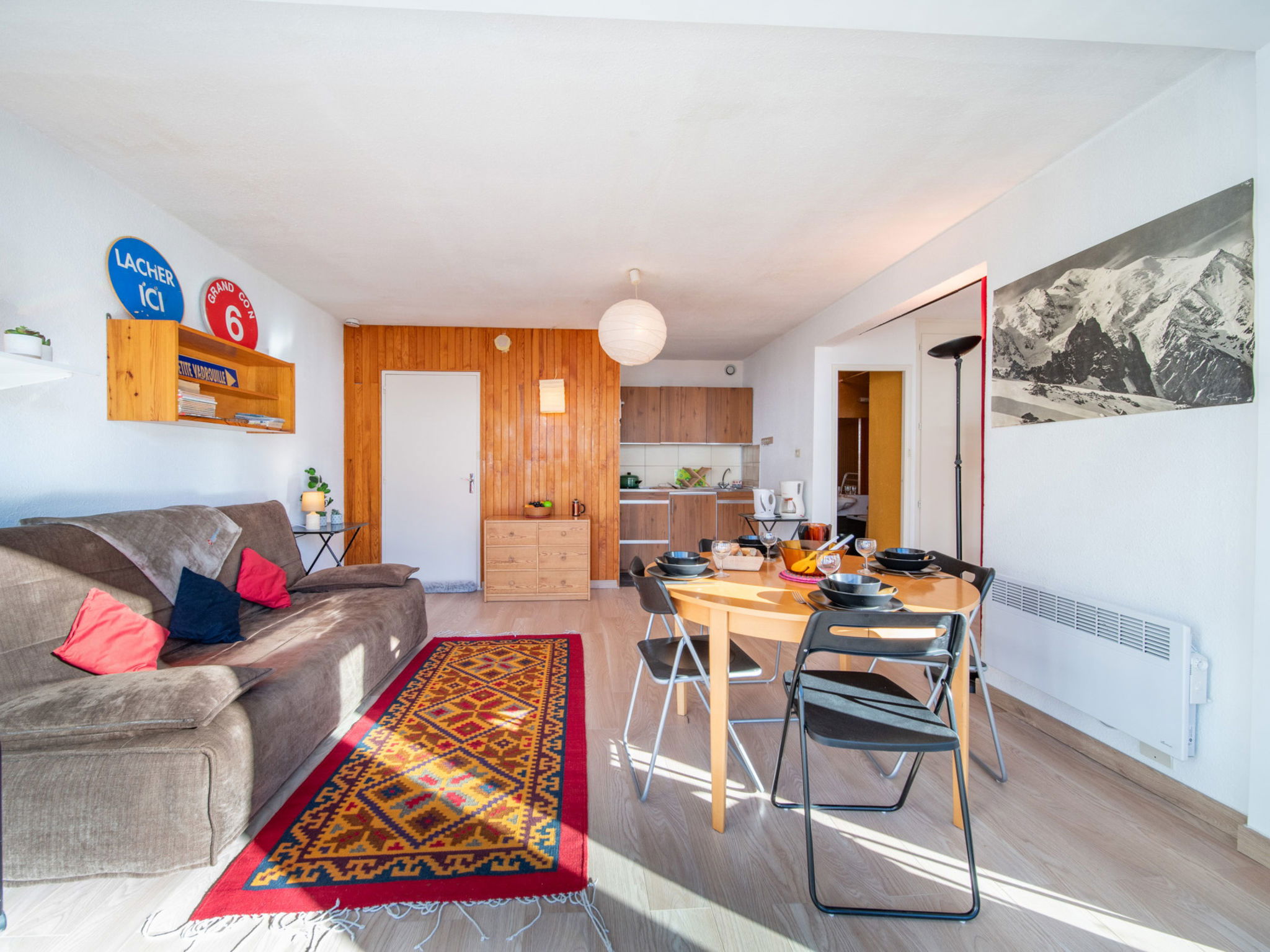 1-room studio 34 m2 on 3rd floor. Simple furnishings: living/sleeping room with 1 double sofabed (140 cm, length 190 cm), TV (flat screen). Exit to the balcony. Alcove with curtain with 1 x 2 bunk beds (90 cm, length 190 cm). Kitchenette (oven, 2 ceramic glass hob hotplates, toaster, kettle, microwave, electric coffee machine). Bathroom. Electric heating. Parquet floors. Large balcony 10 m2, south facing position. Beautiful view of the ski run. Facilities: washing machine. Internet (WiFi, extra). Please note: non-smokers only. Smoke alarm. Instead of an enclosed bedroom, some sleeping areas are located in an open-plan area (gallery, alcove, etc.). Offer by a private individual according to Art. 155, IV of CGI.
