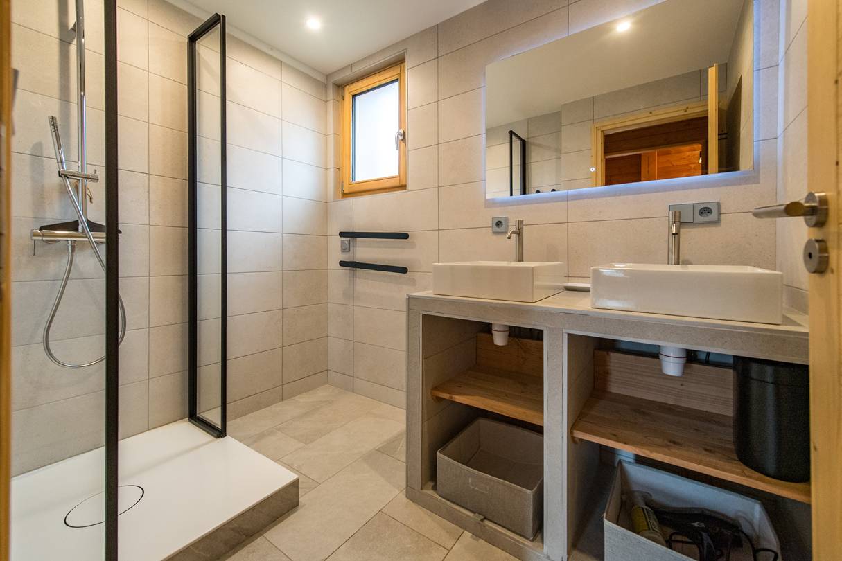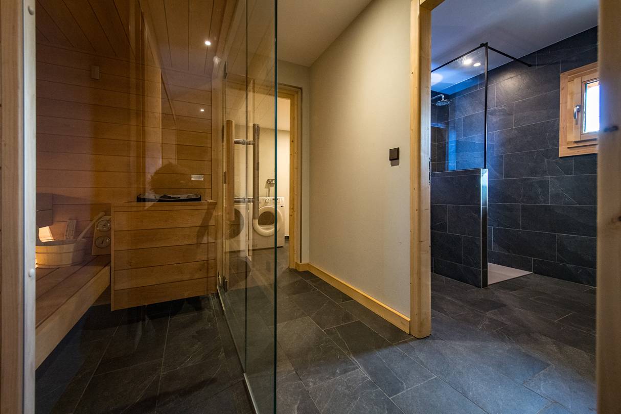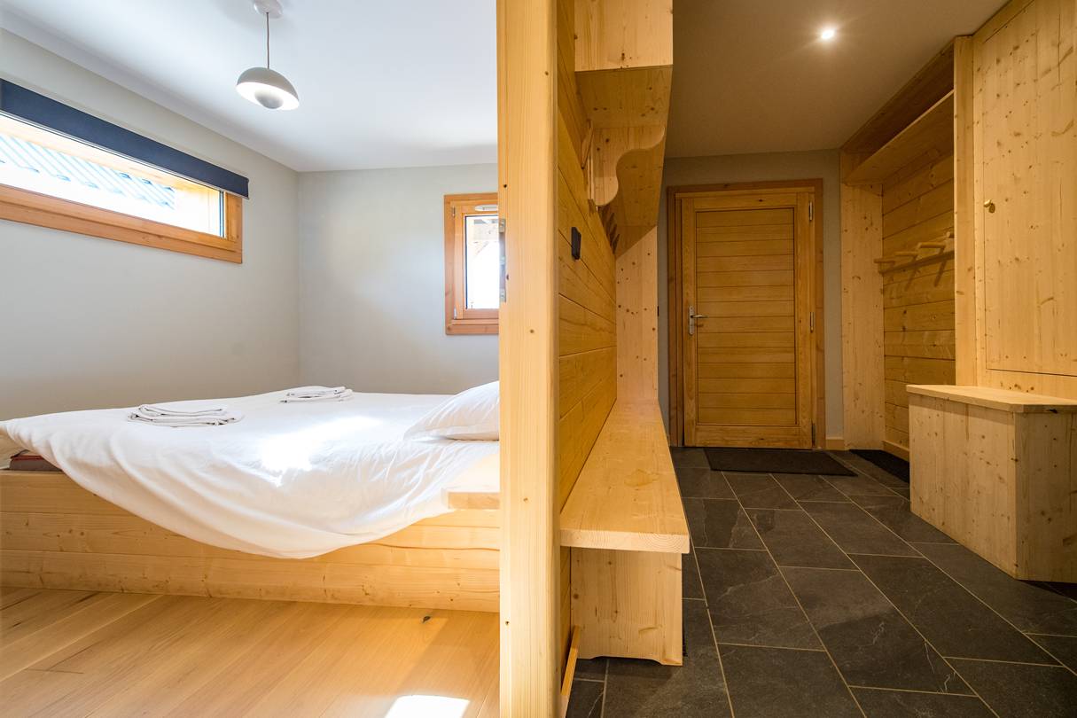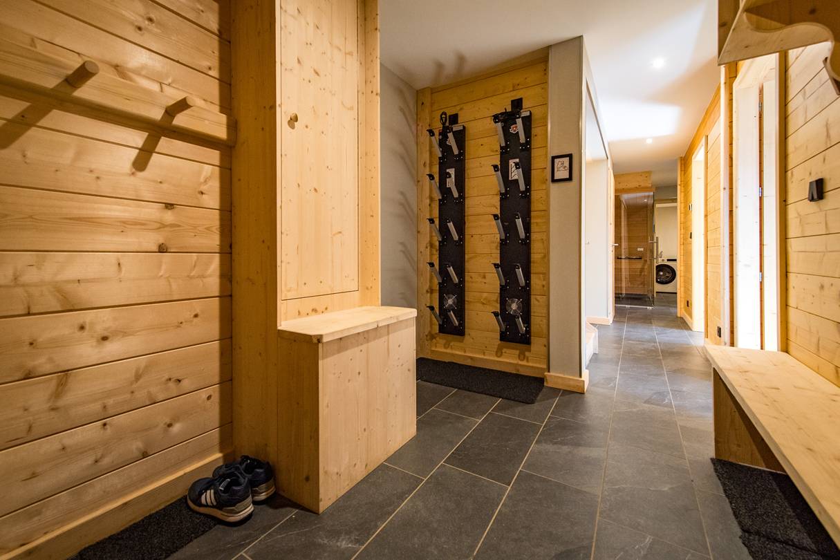 The entrance to the chalet is via the garden level where an outside cupboard allows you to store your skis safely. The entrance is equipped with wardrobes and shoe dryers (12 pairs).