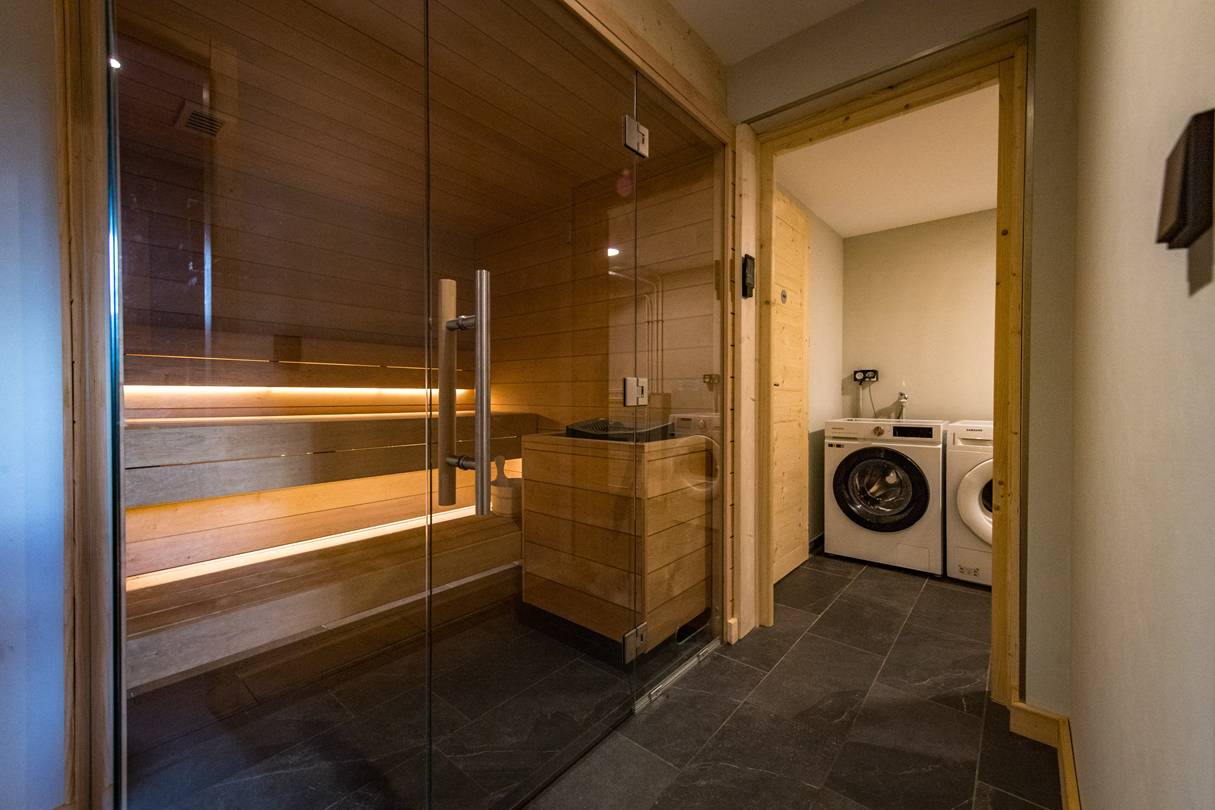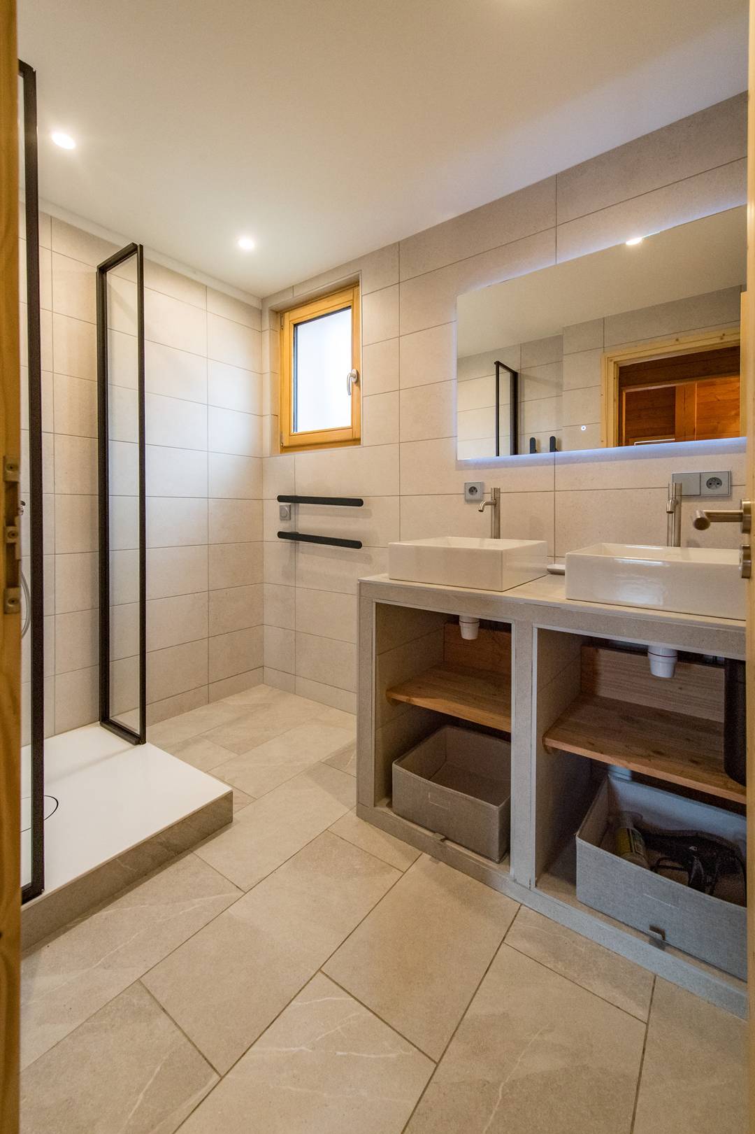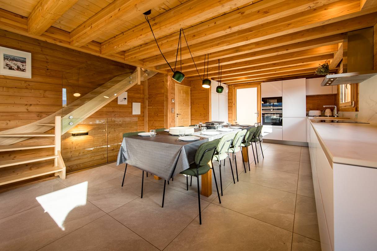 The entrance to the chalet is via the garden level where an outside cupboard allows you to store your skis safely. The entrance is equipped with wardrobes and shoe dryers (12 pairs).